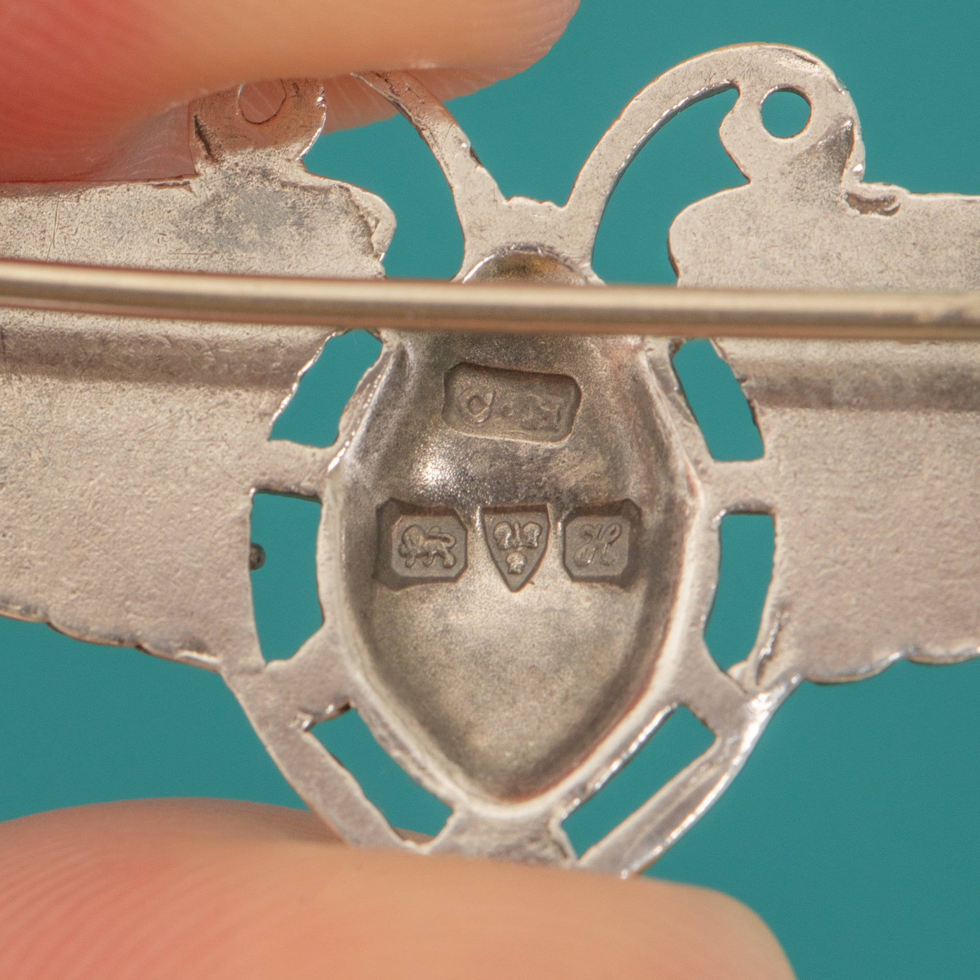 Art Nouveau Sterling Silver Enamel Scarab Brooch, CHARLES HORNER