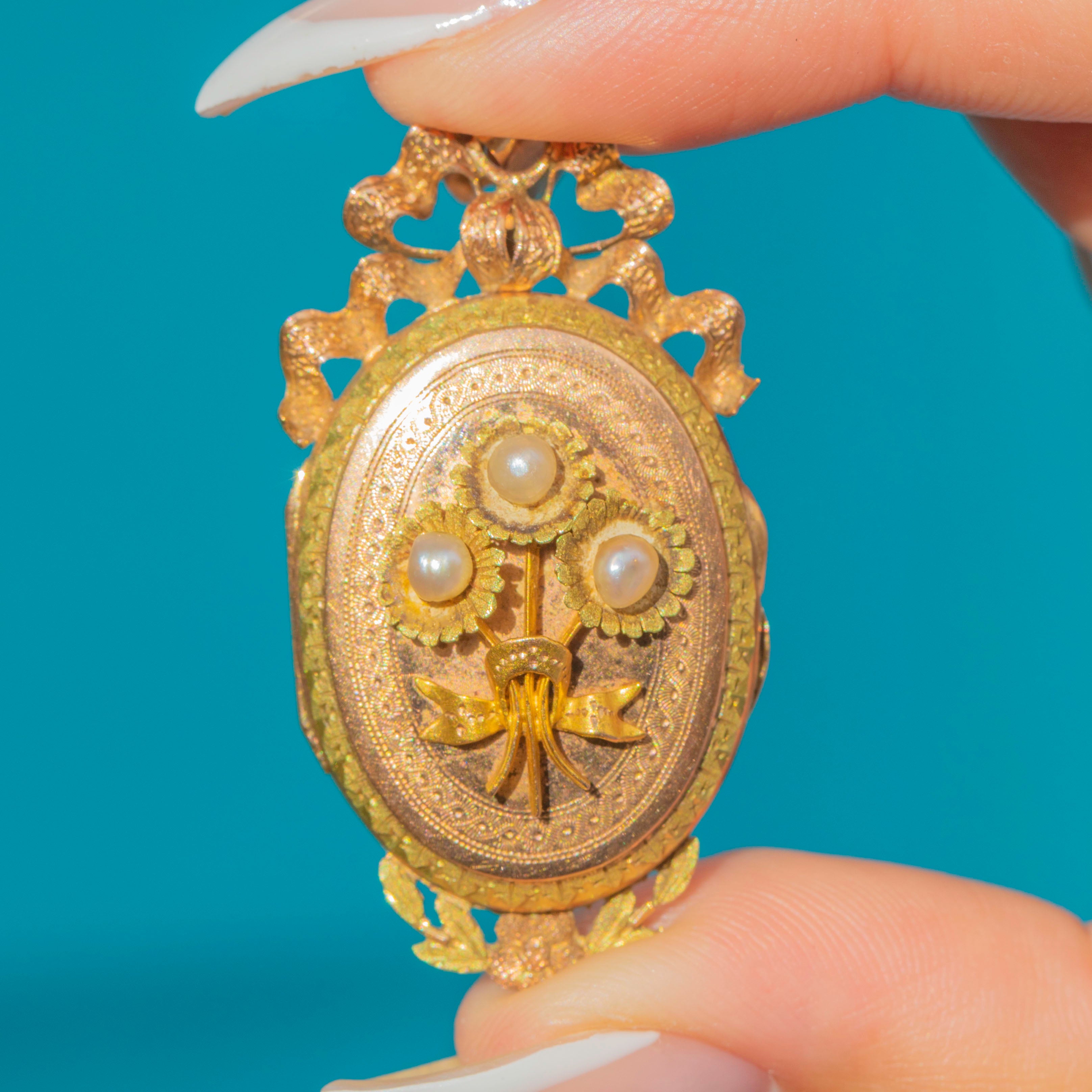 Belle Époque French 18ct Gold Pearl Locket Pendant, c.1900