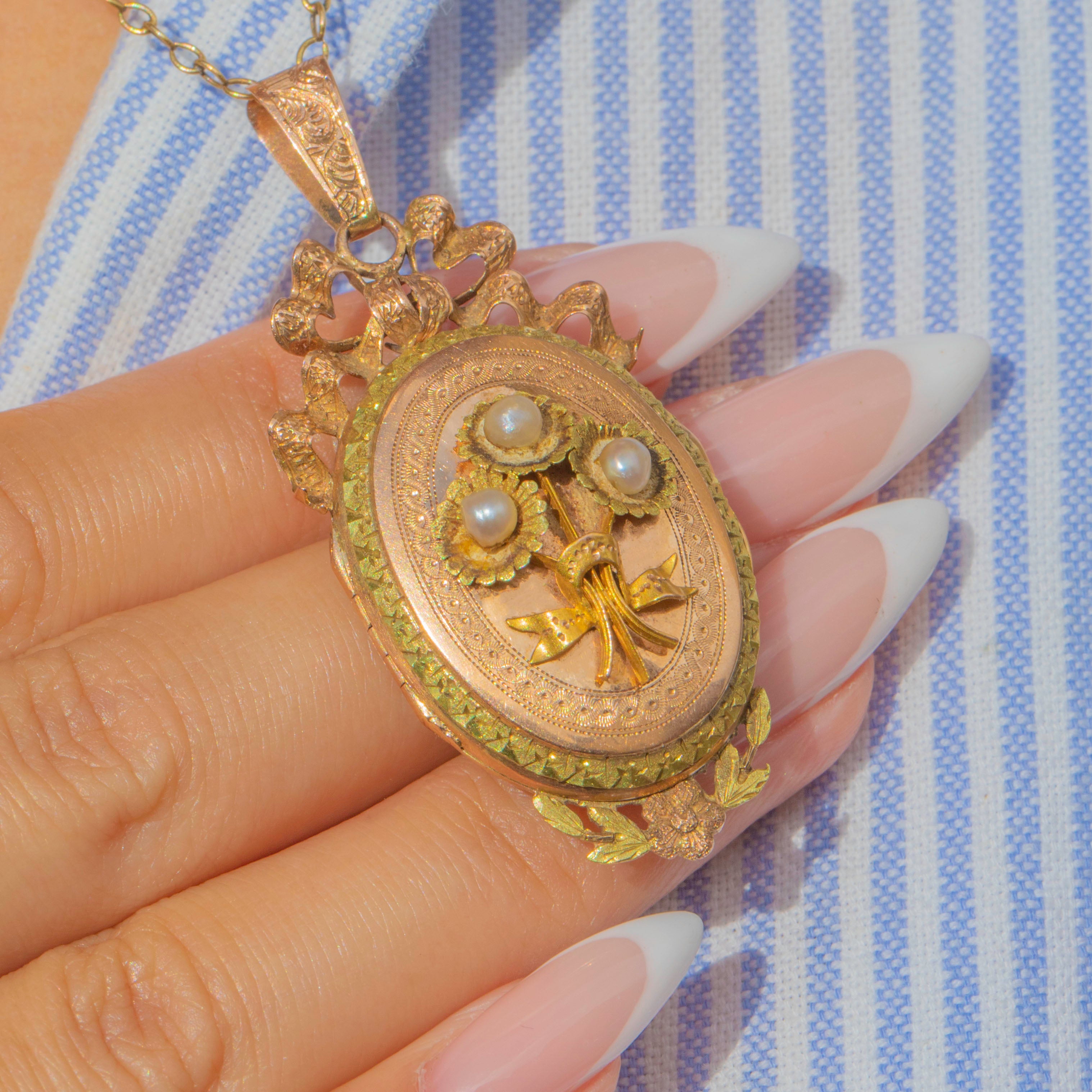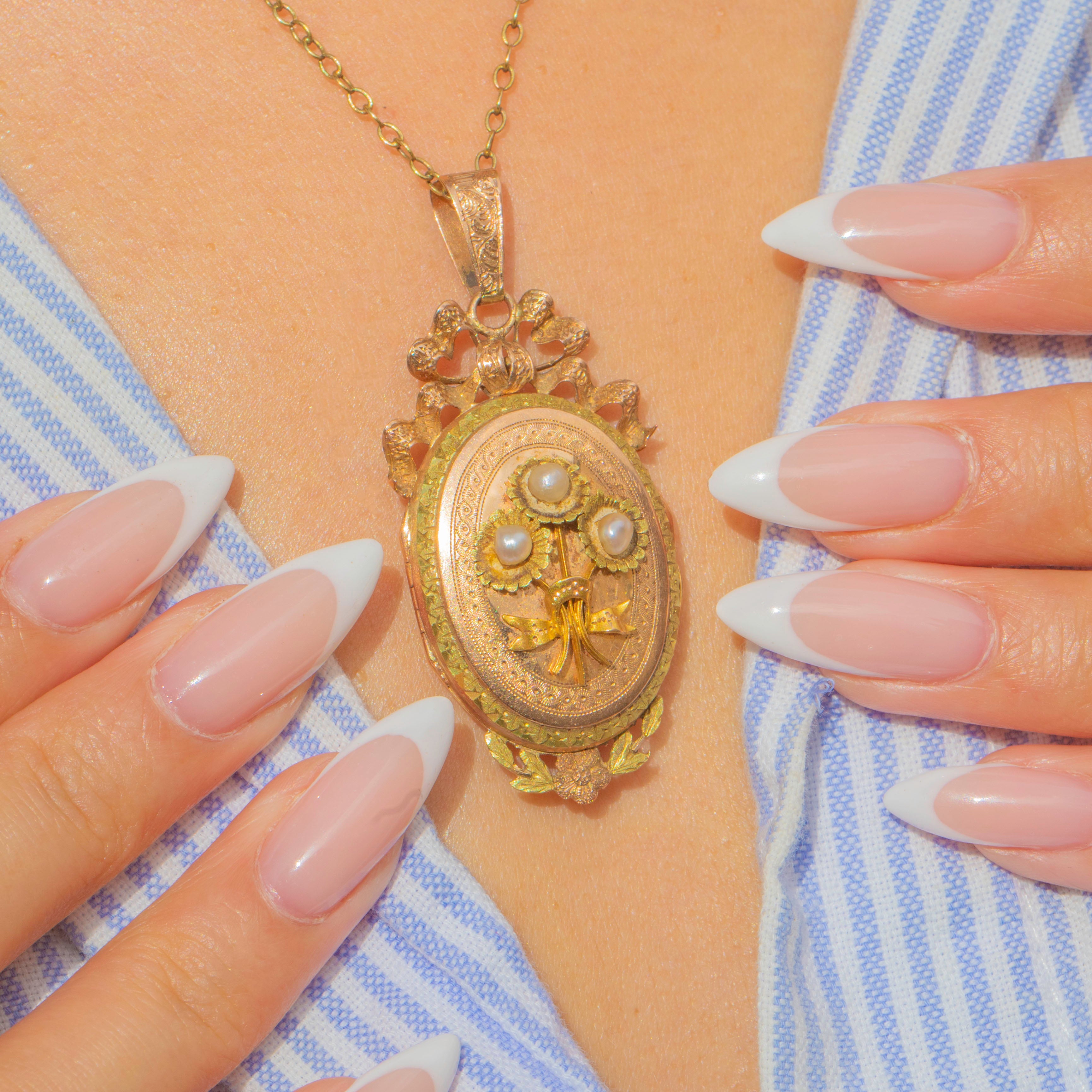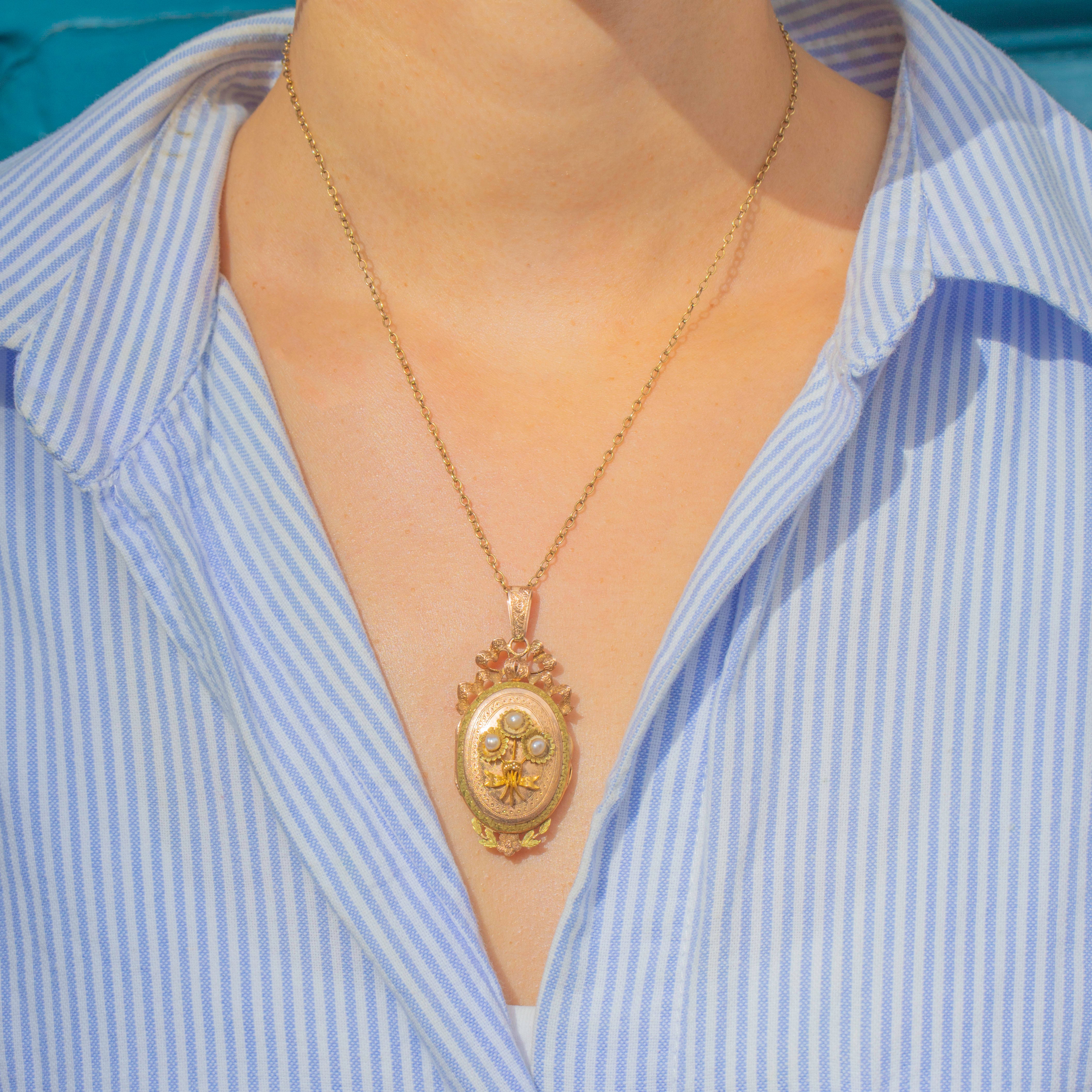 Belle Époque French 18ct Gold Pearl Locket Pendant, c.1900 Item added