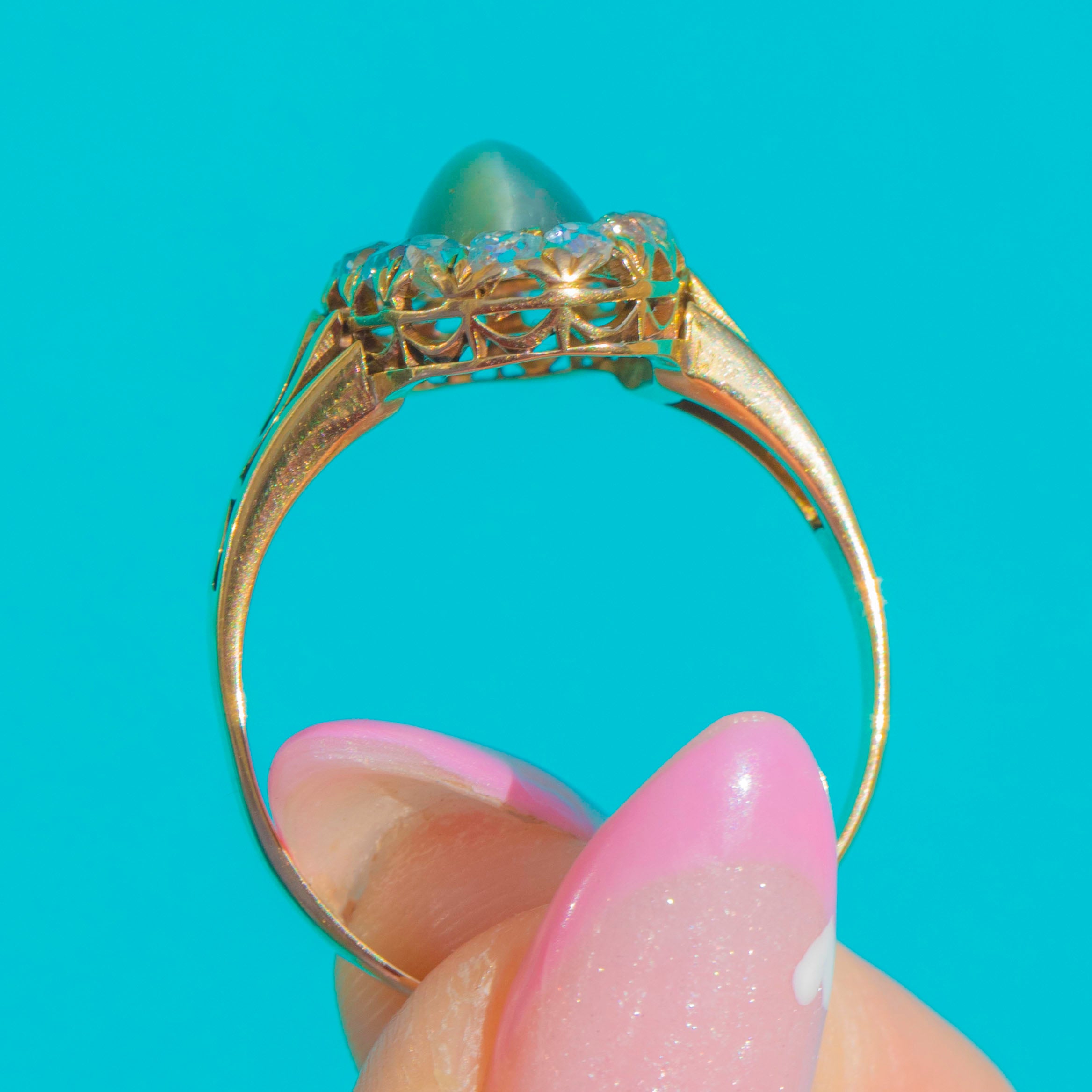 Victorian Cat's Eye Chrysoberyl Diamond Halo Ring in 18ct Gold