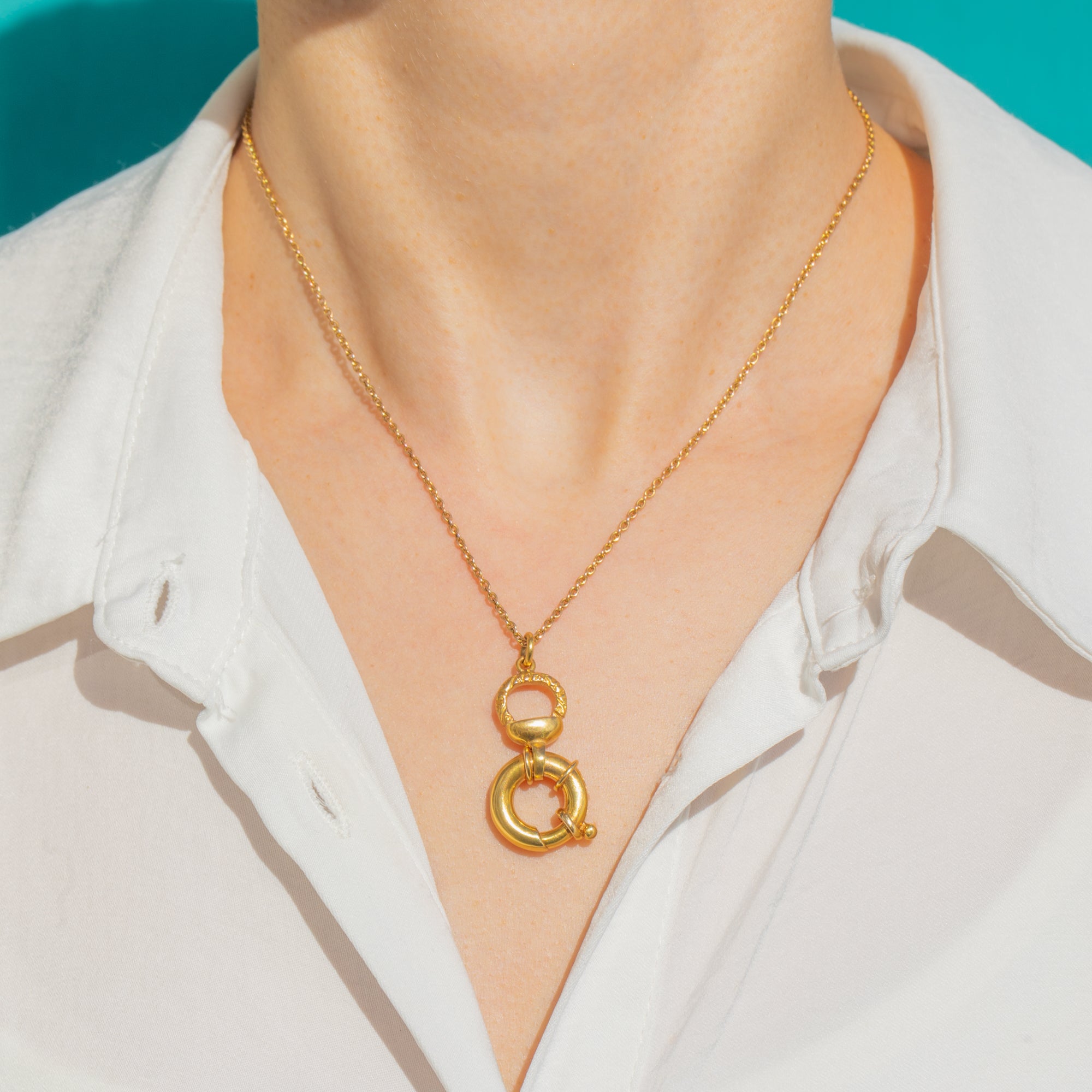 As practical as it is stylish, the bolt ring opens to welcome your favourite charms, pendants or lockets, then clicks closed for a secure finish. A timeless utility jewel with a luxe edge—made to personalise and wear every day.