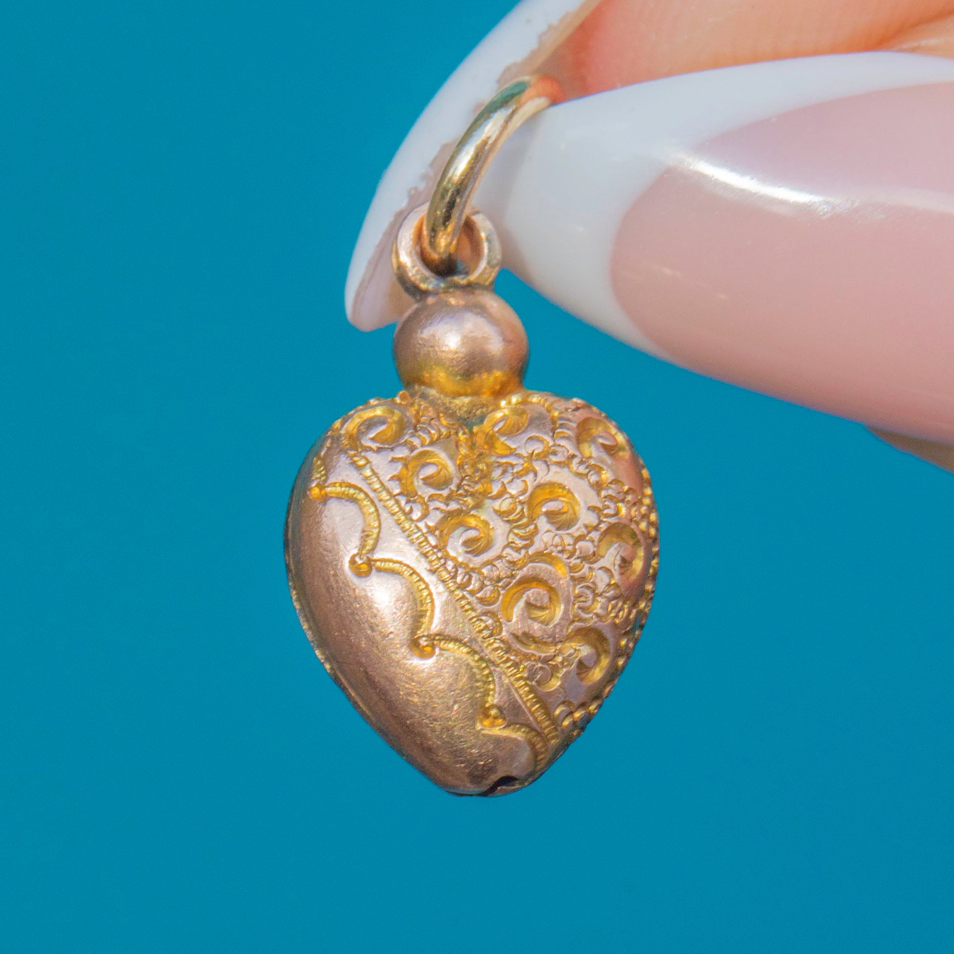 Dainty Victorian 9ct Gold Repousse Heart Pendant