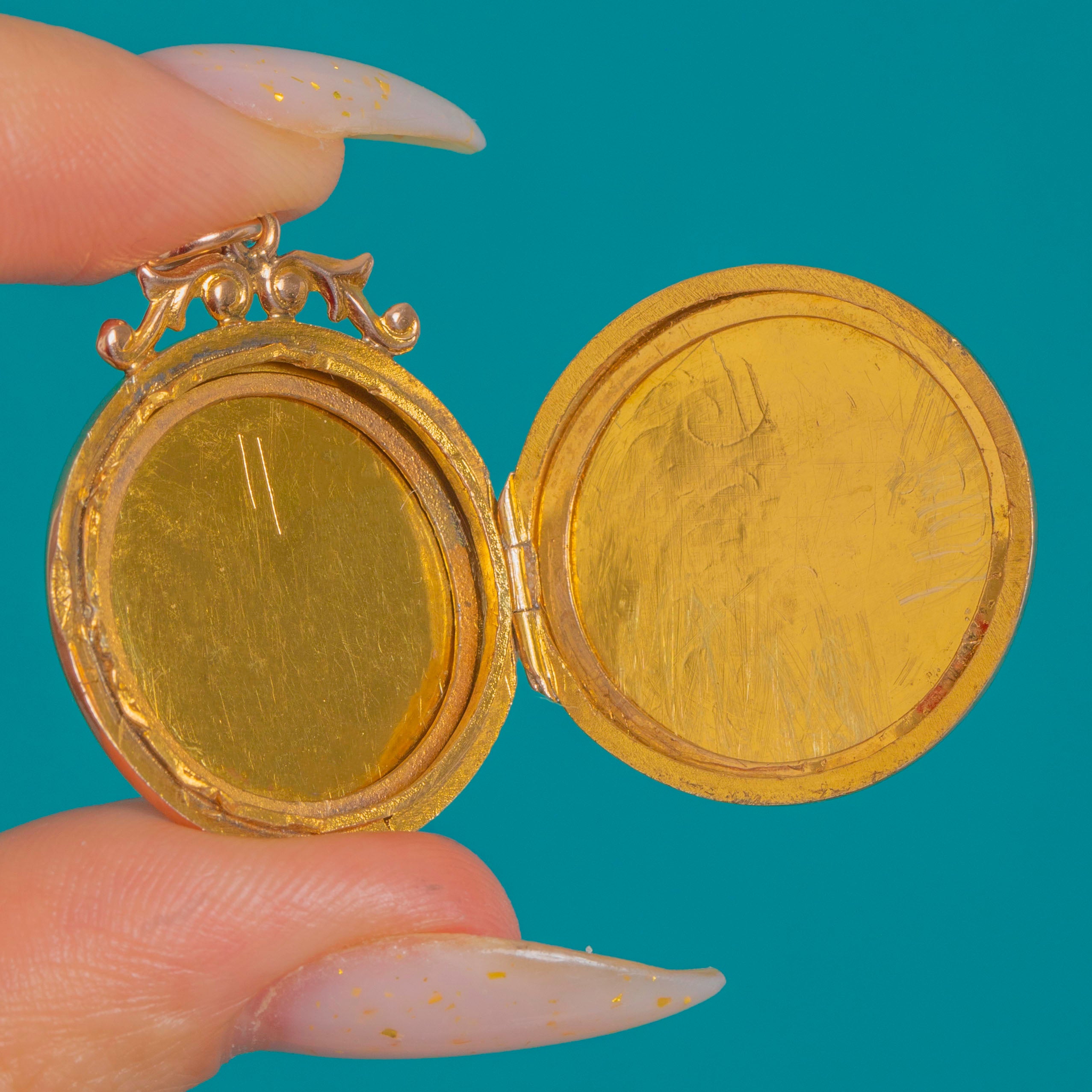 MATERIALS: Tests as 9ct Gold Back & Front locket, metal frames and hinge.