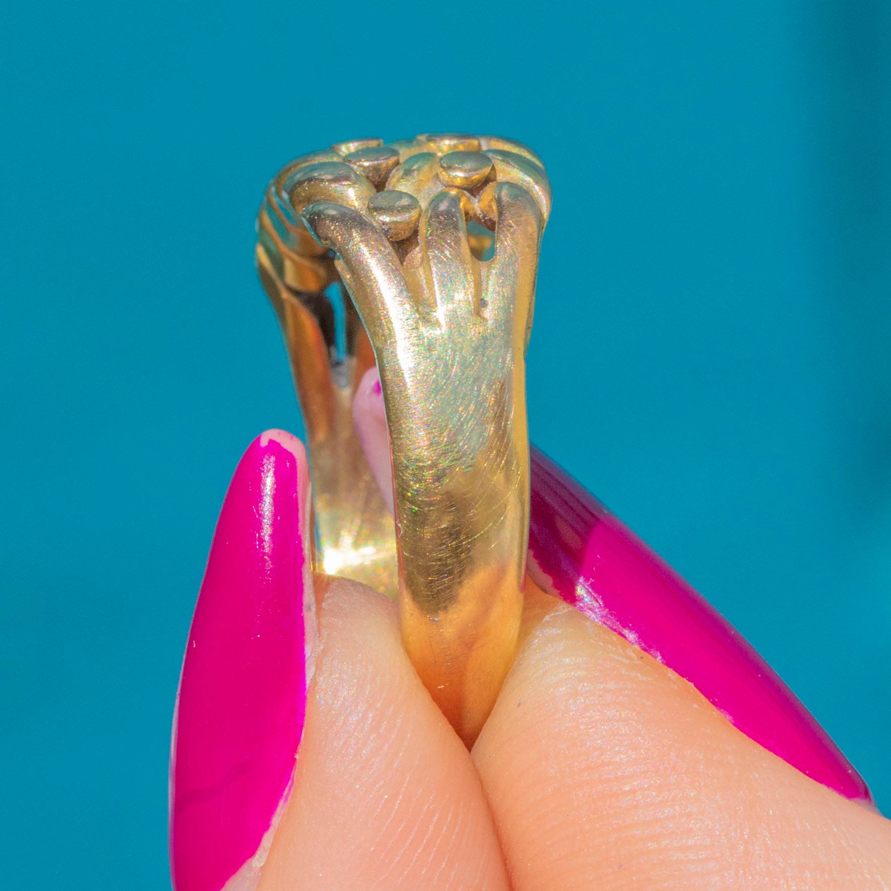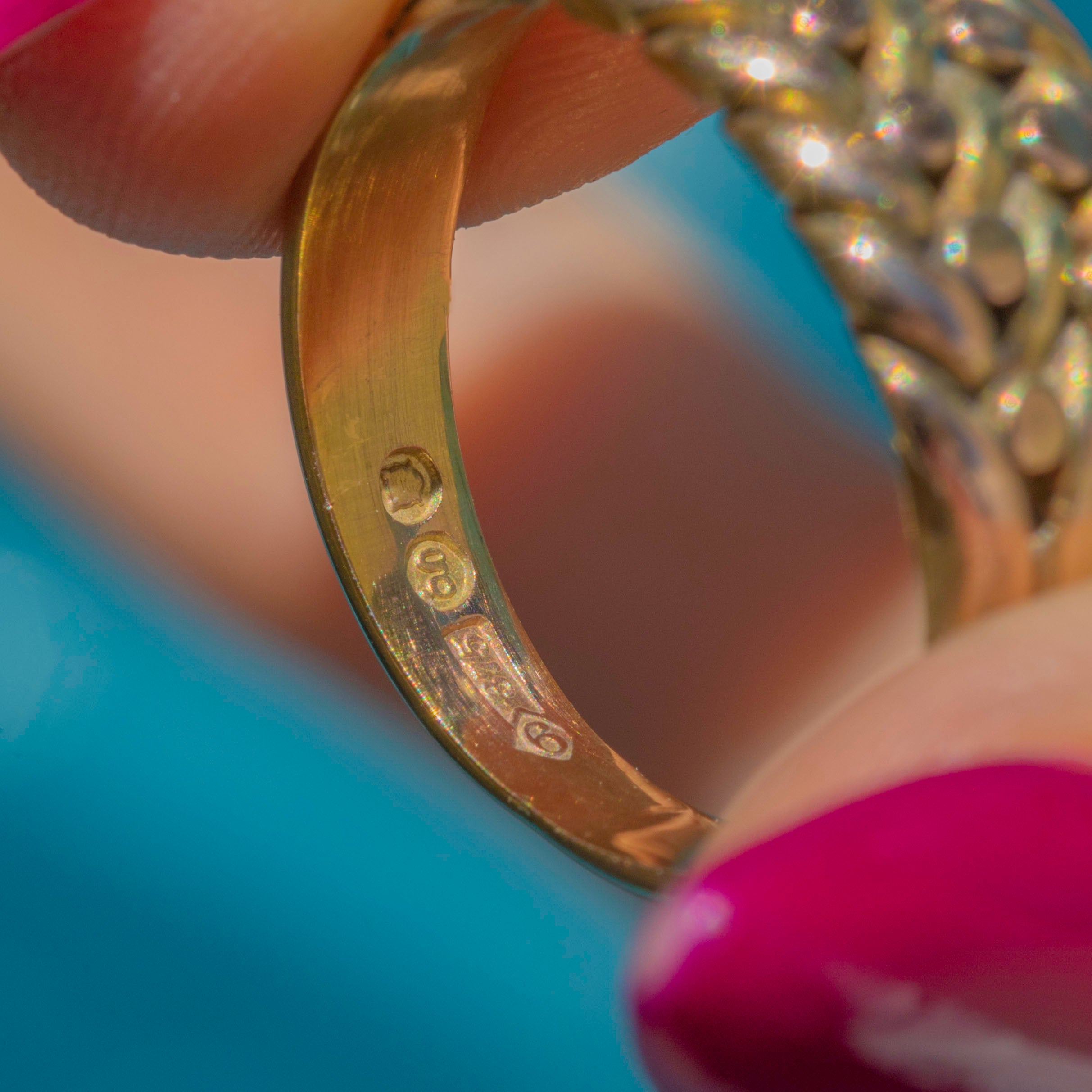 VERY GOOD-EXCELLENT: This ring has stood the test of time & has been well looked after. The Gold has a wonderful lustre and rich buttery hue. There is a visible resize mark on the band, but this is only noticeable under close inspection, and the hallmarks are present and fully legible, allowing us to accurately date this piece to 1902.