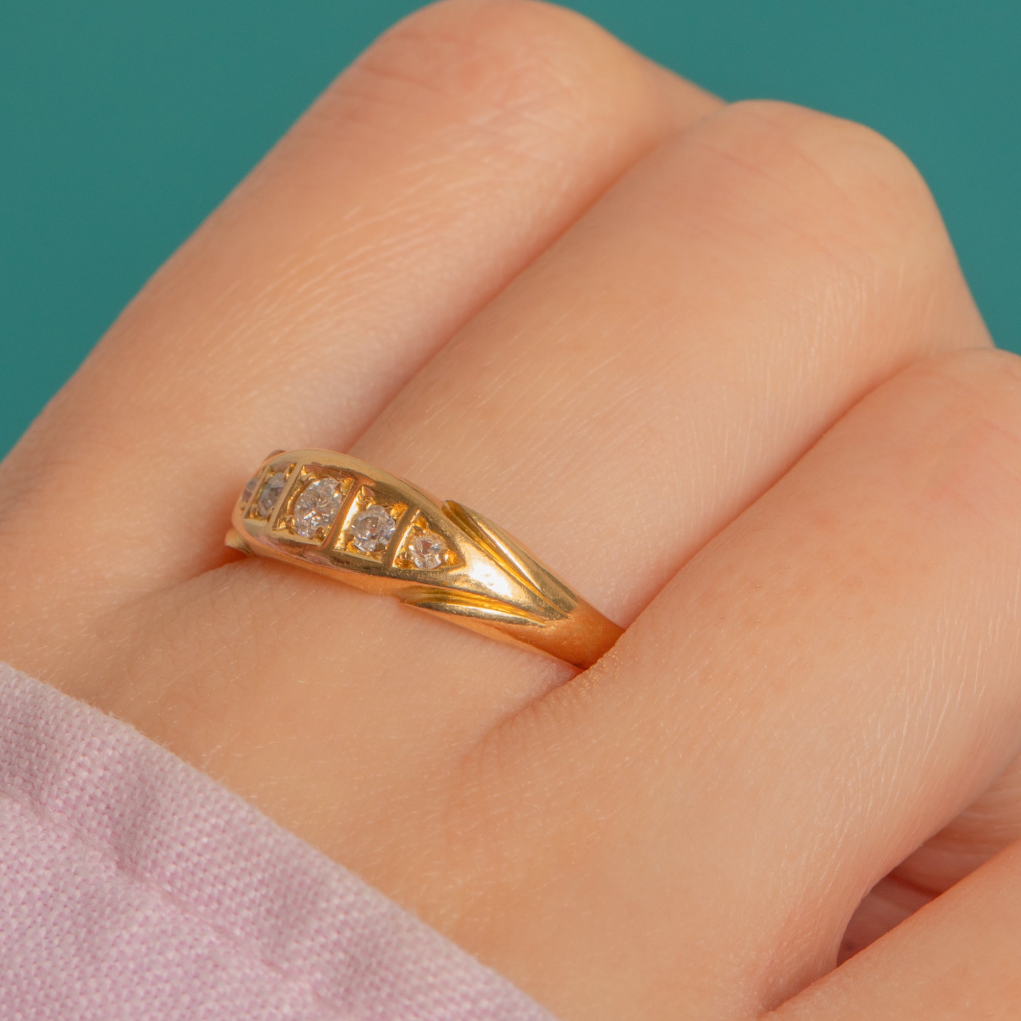 English Antique 18ct Gold Diamond Five-Stone Stacking Ring