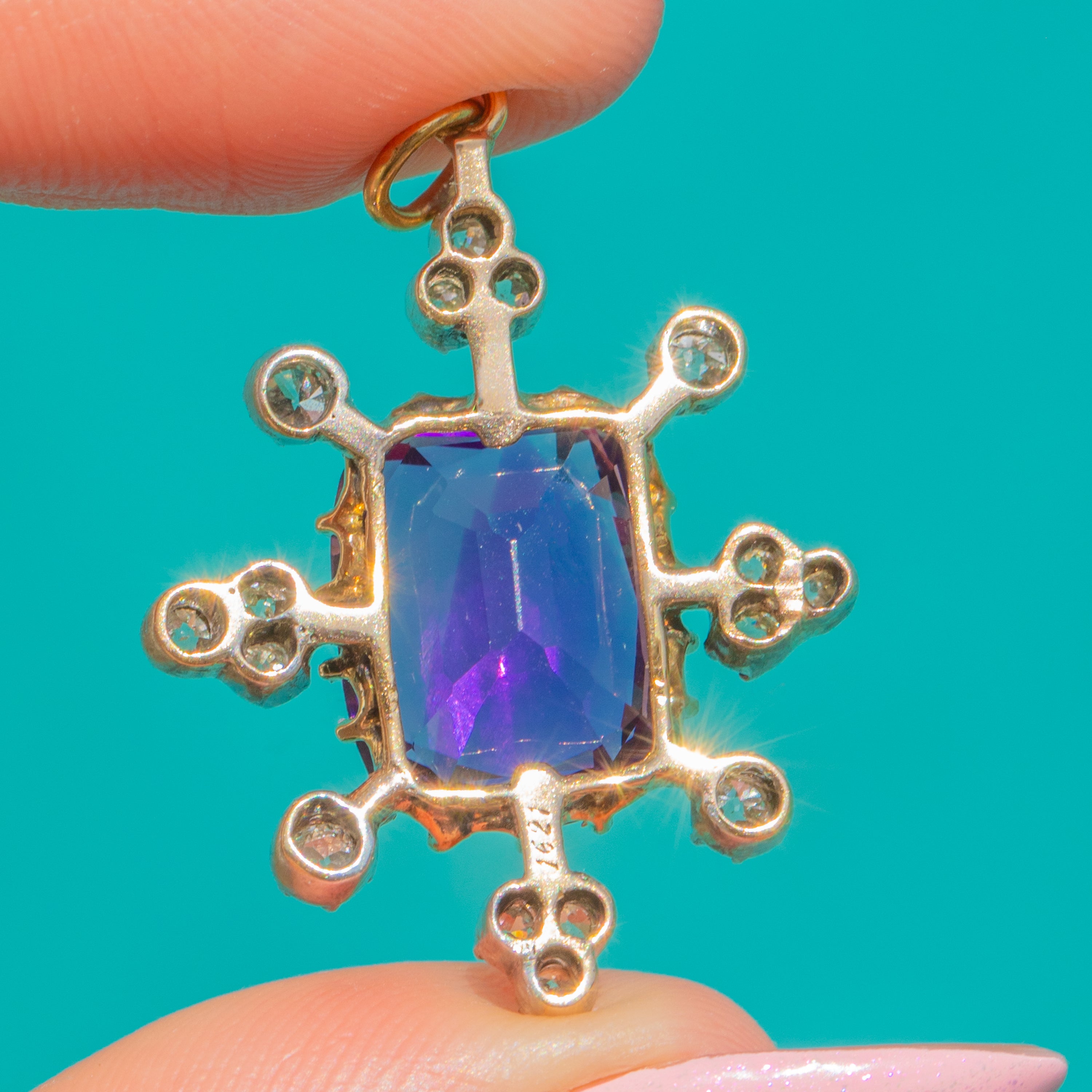 Fine Late Victorian 15ct Gold Amethyst Diamond "Star" Pendant