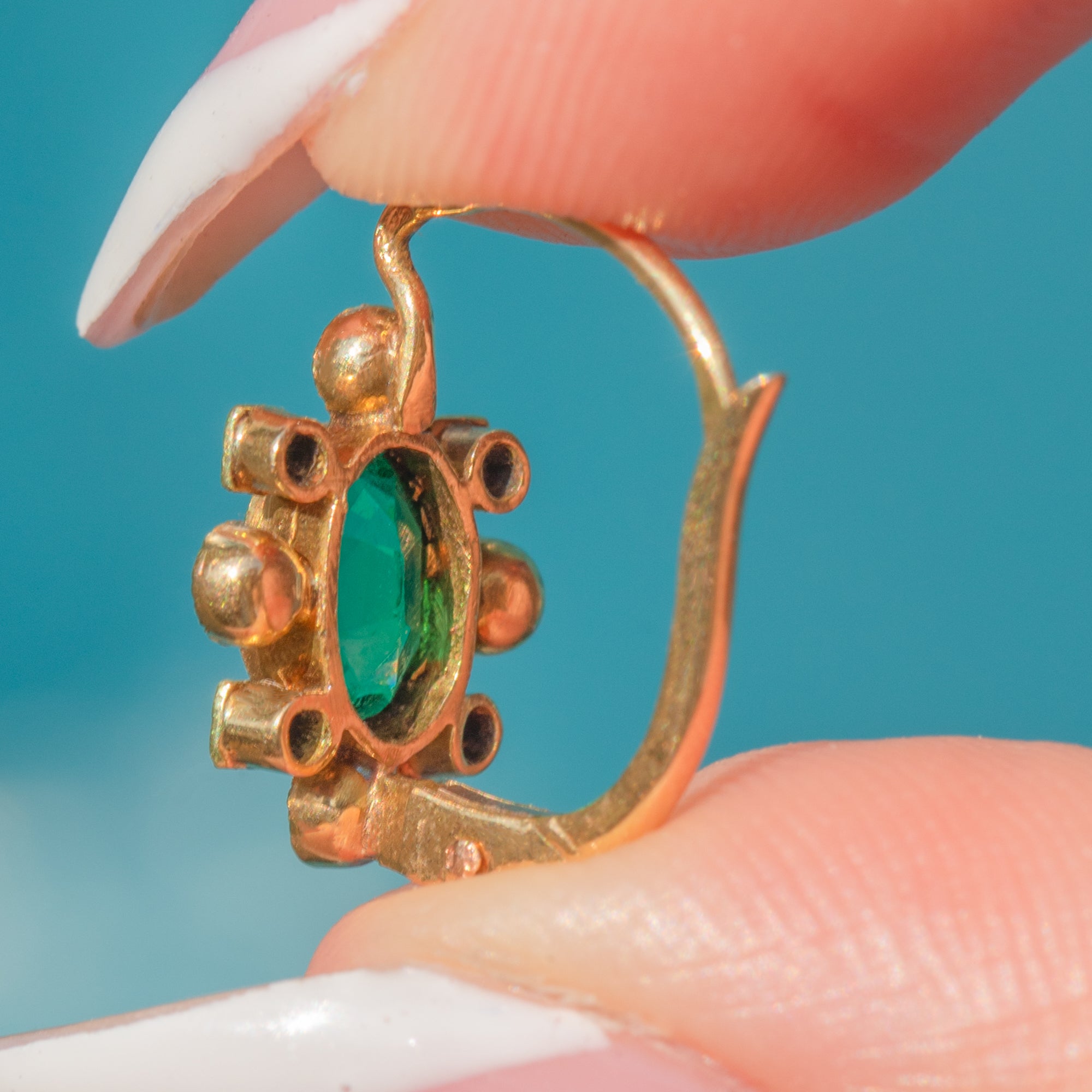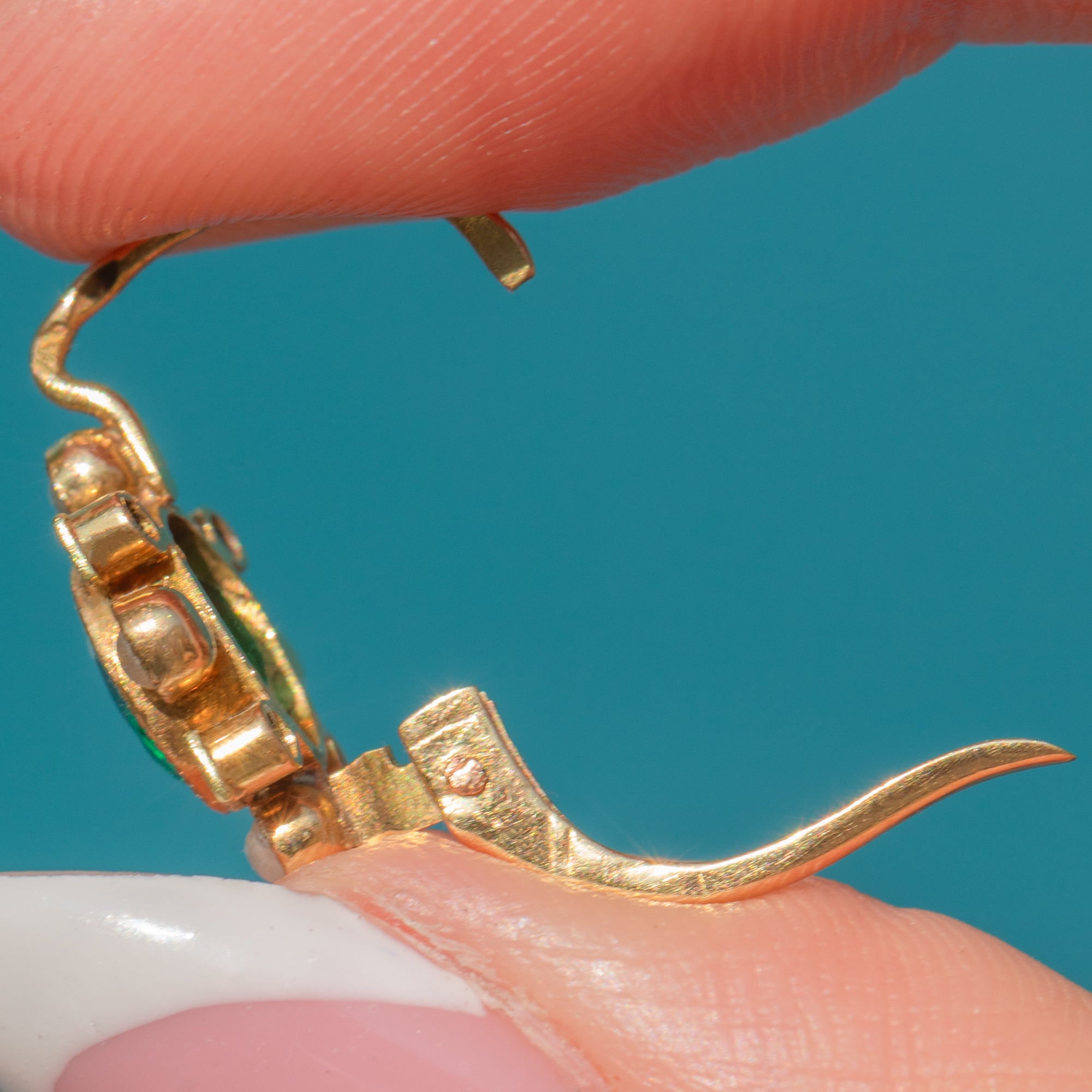 French 18ct Gold Green Paste Pearl Lever-Back Earrings
