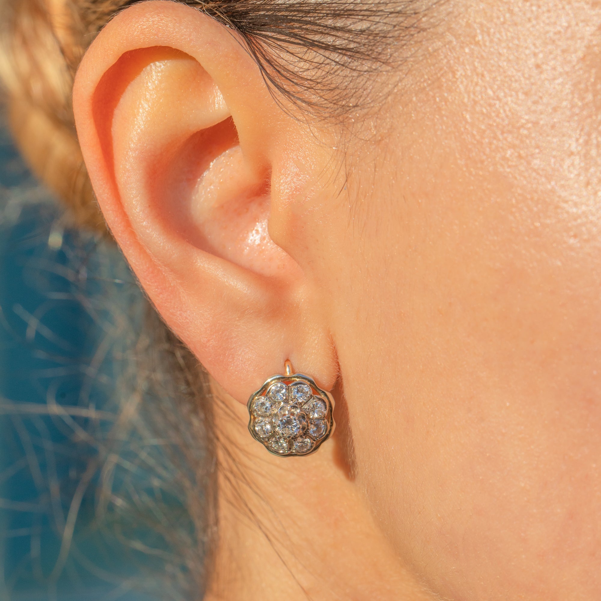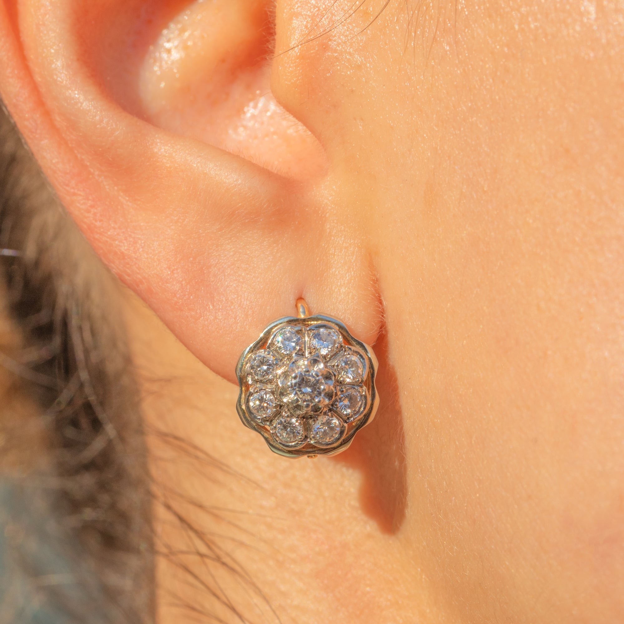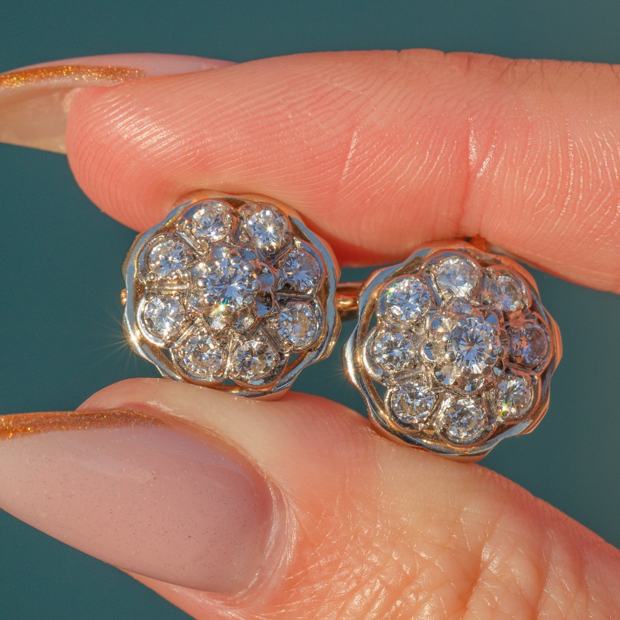 These chic French Art Deco earrings are crafted in 18ct Gold with elegant Platinum settings, each holding sparkling antique-cut Diamonds, adding up to 1.15ct in total. Their classic circular design and original lever-back fittings give them that unmistakable 1920’s glamour — refined, wearable and effortlessly sophisticated.