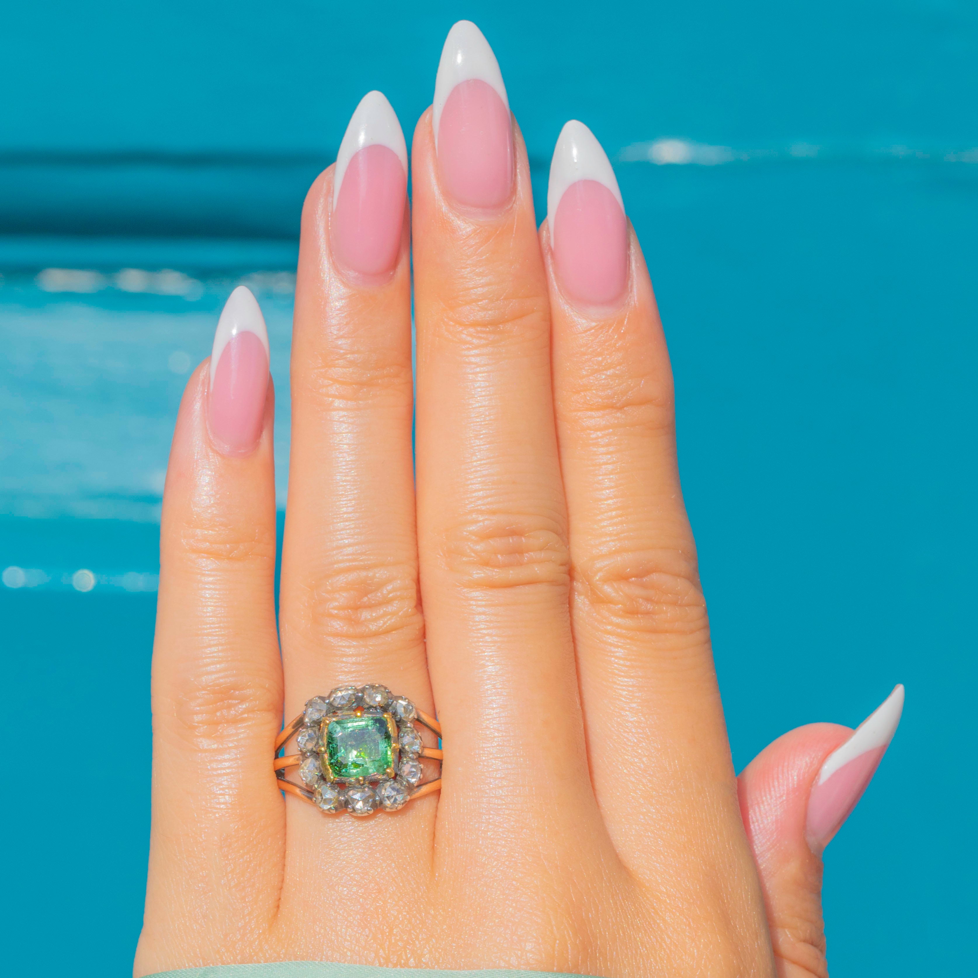 Rare Georgian 15ct Gold Emerald Rose-Cut Diamond Cluster Ring