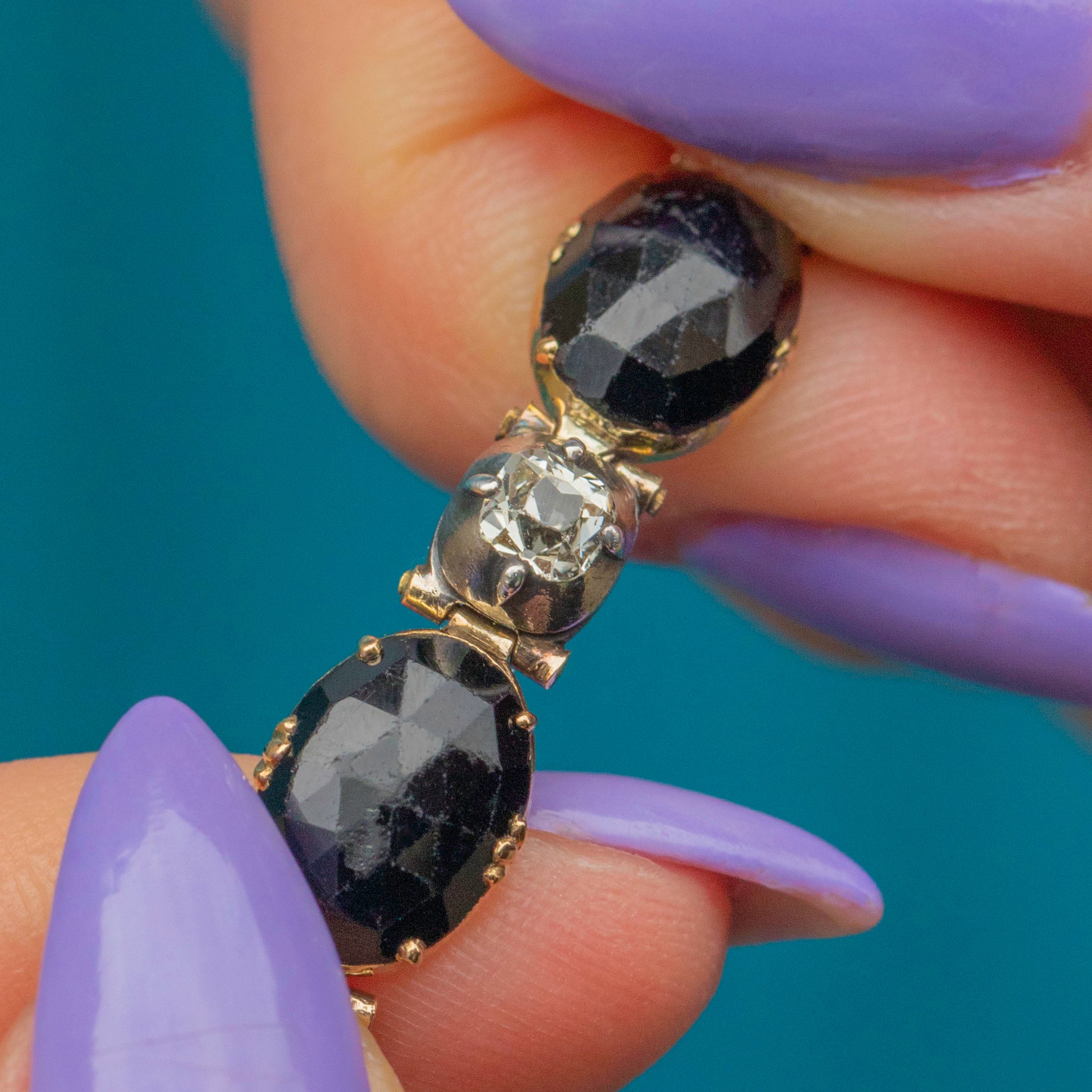 We are obsessed with this Georgian 18ct Gold French Jet bracelet!