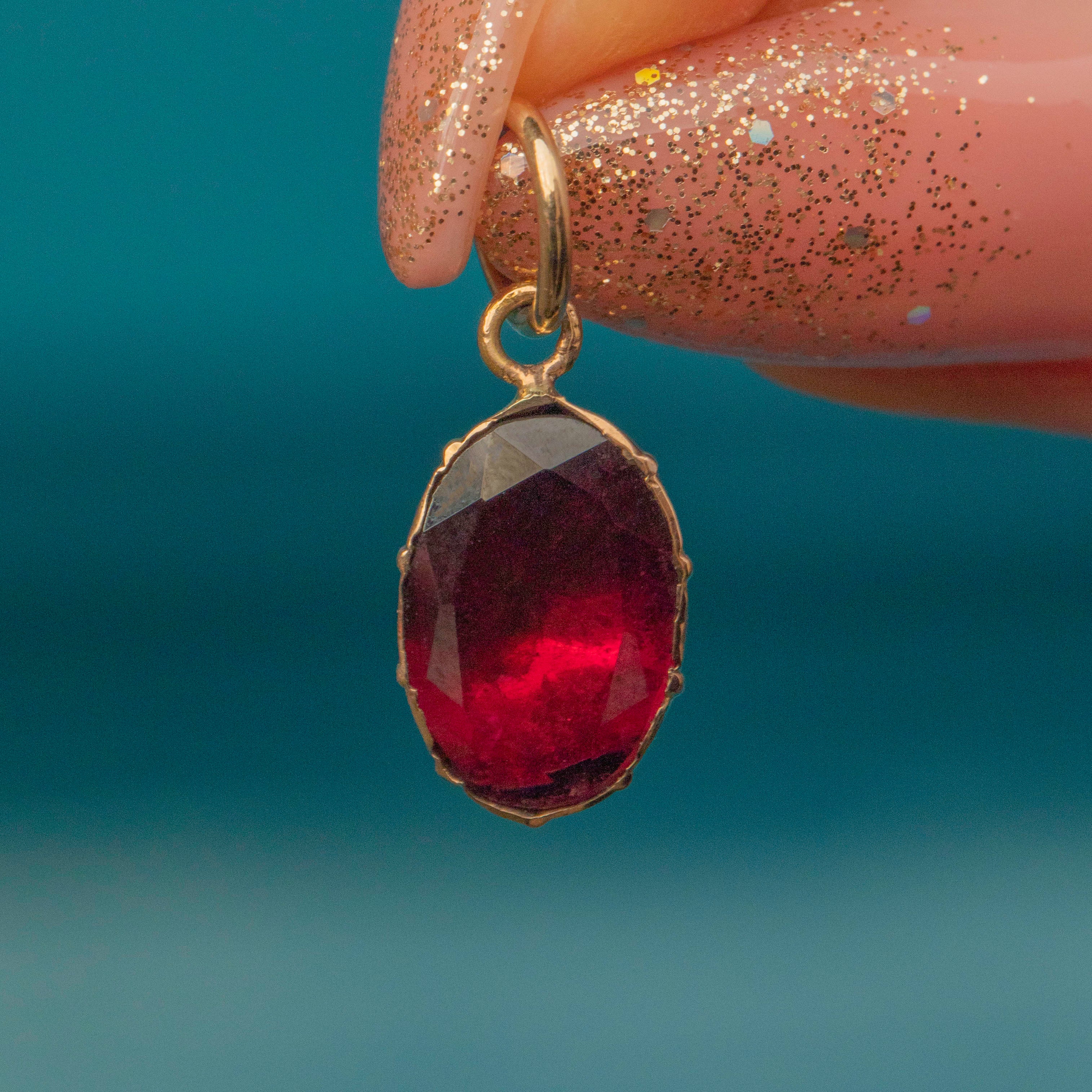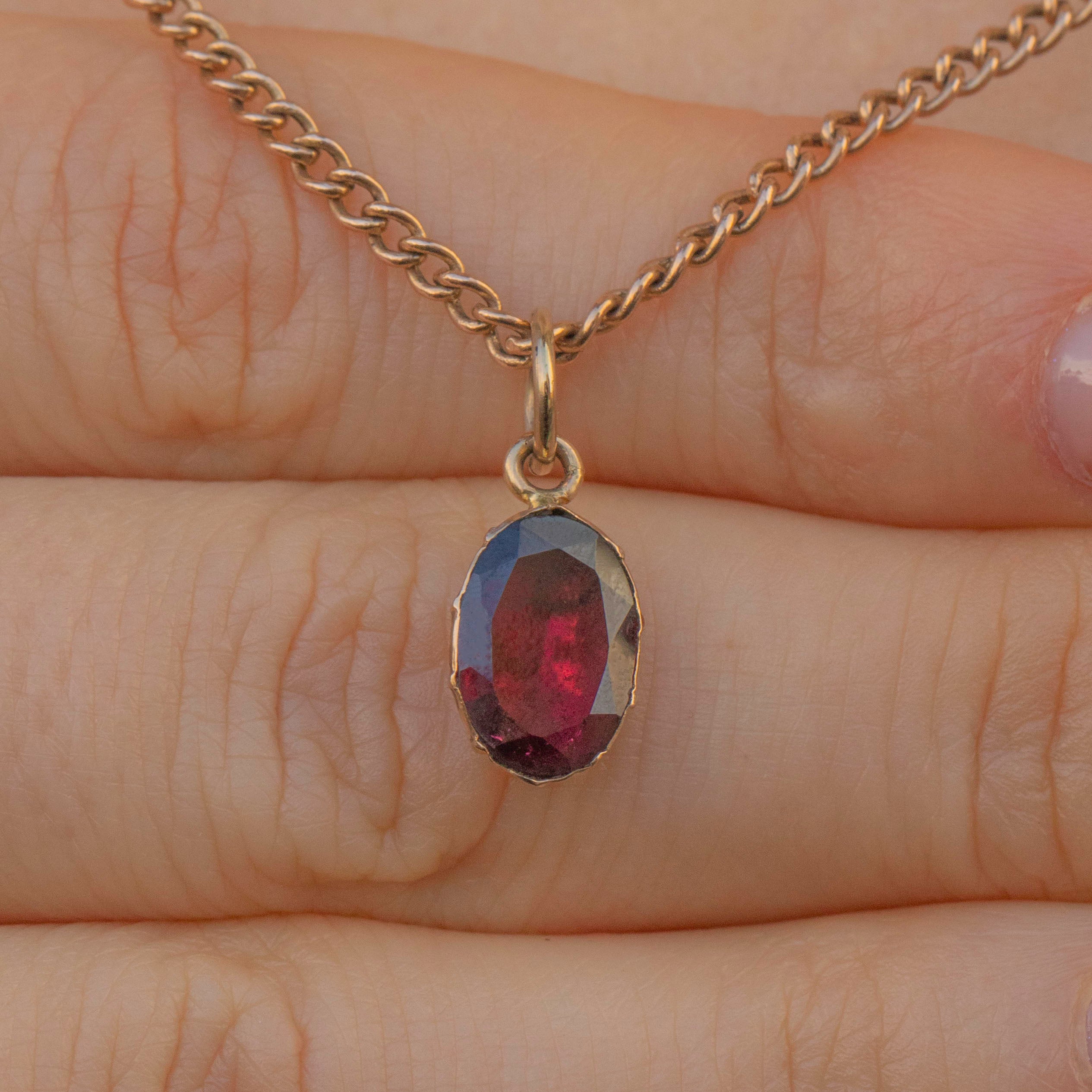 This 9ct Gold Georgian flat-cut Garnet charm is such a lovely piece. Boasting a deep berry red hue, this 1.32ct flat-cut Garnet is simply beautiful.
