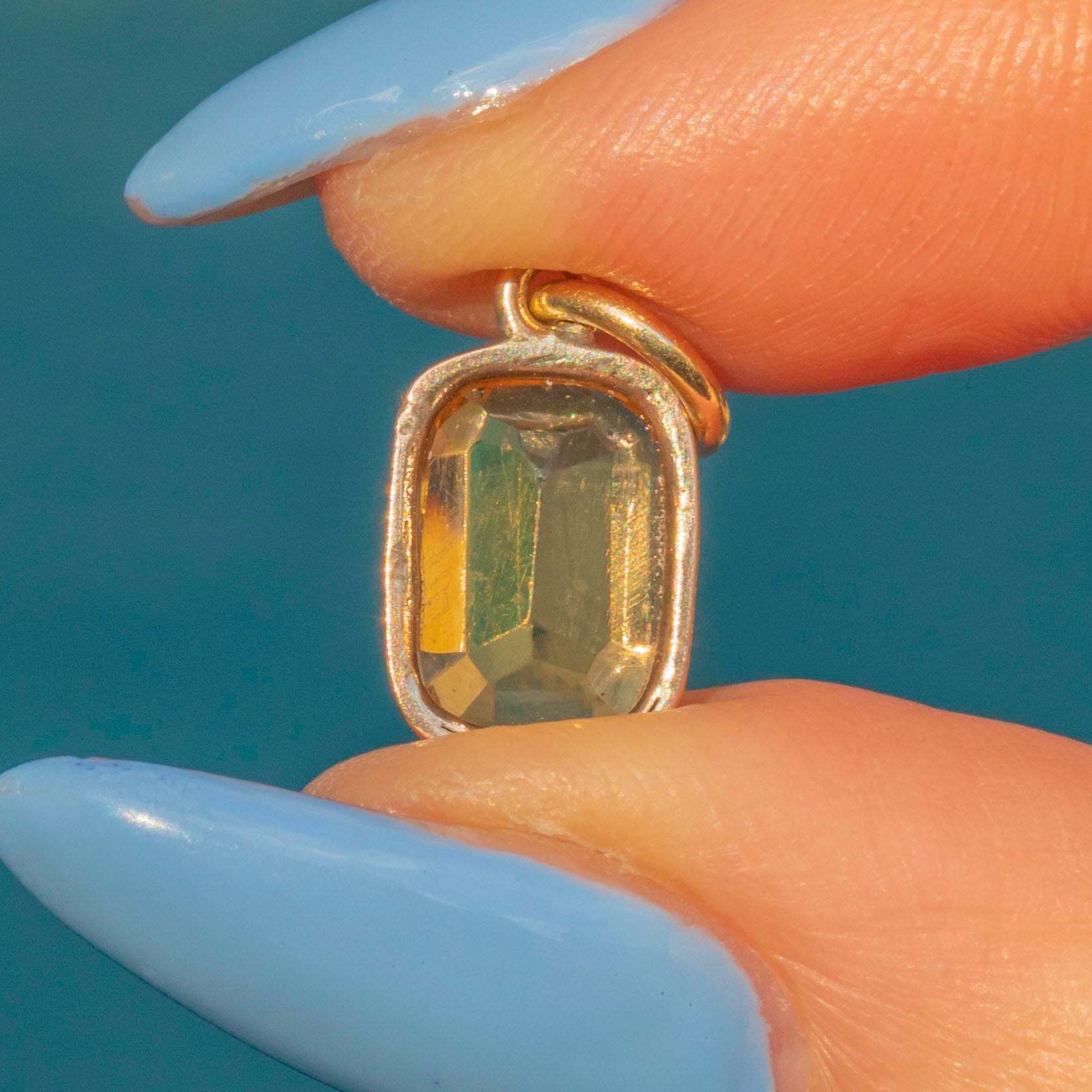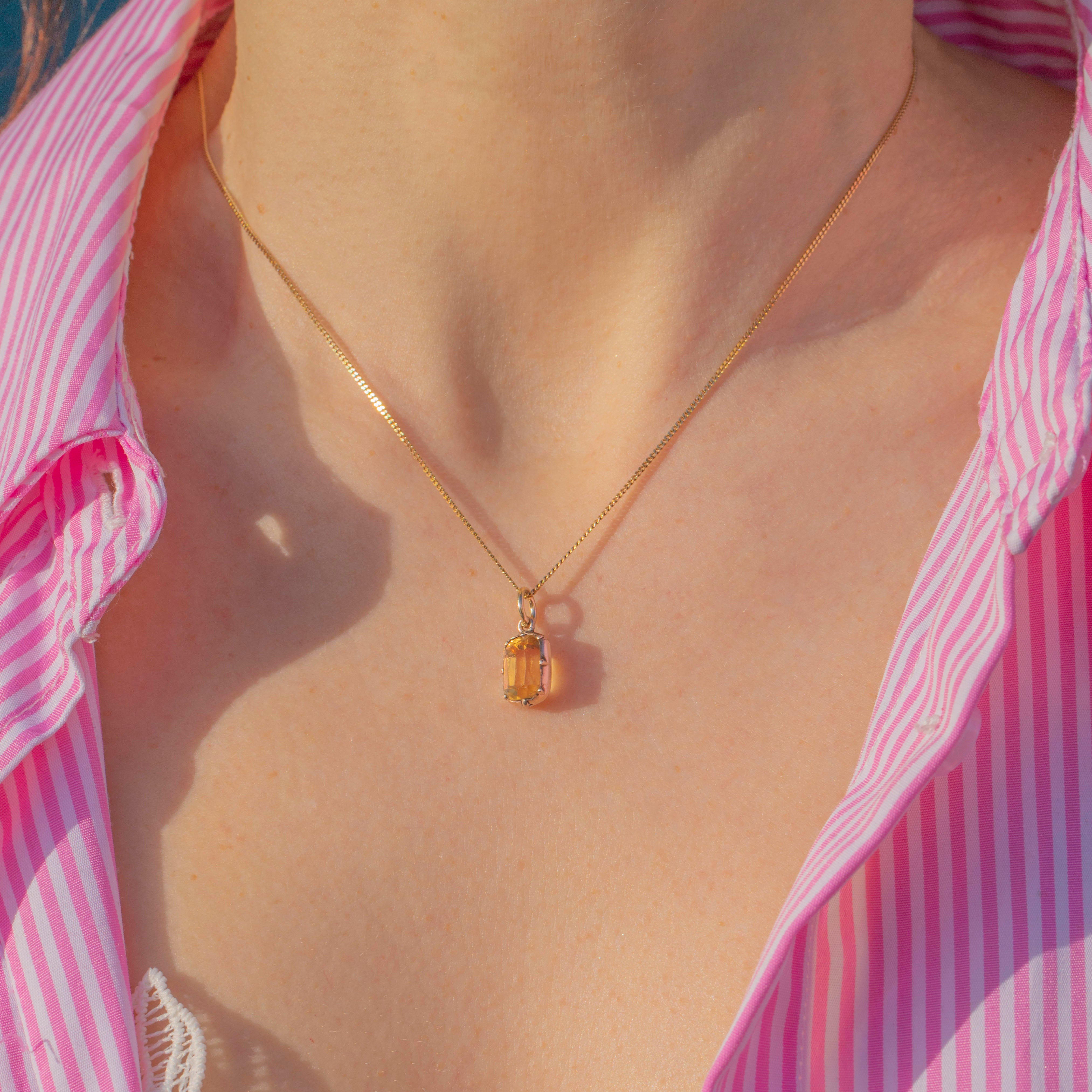 This Georgian 9ct Gold golden Topaz charm certainly is a sweet beauty to behold! Her delicate hue glistens beautifully with a touch of warmth. Enveloped in a rich, warm 9ct Gold which adds to her allure, this Topaz charm will make a fine accompaniment to a fine Gold chain. Wear her alone, or styled with other charms, her elegant beauty is suited to solitude or sharing!