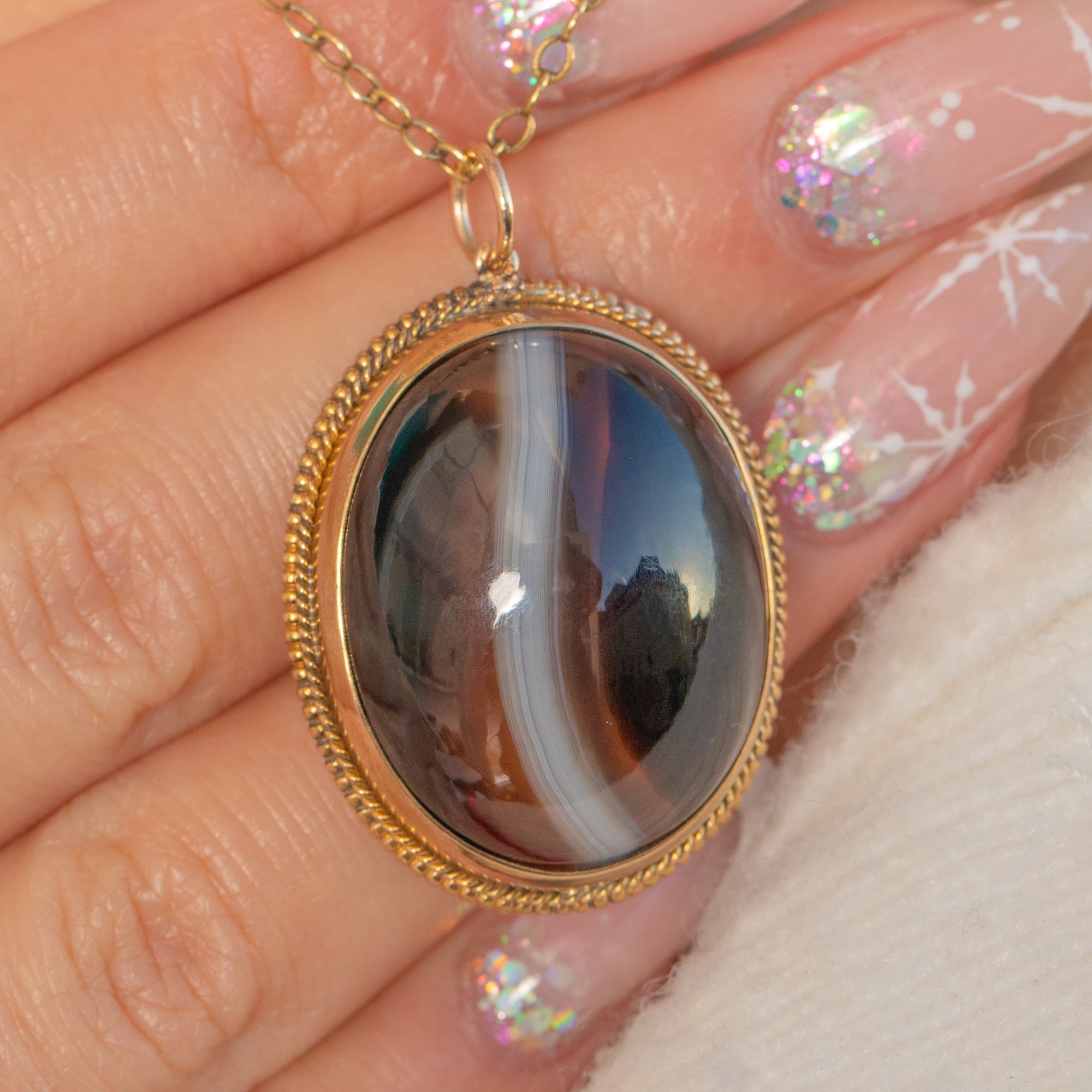 Glowy Victorian Banded Agate Charm Pendant Item added