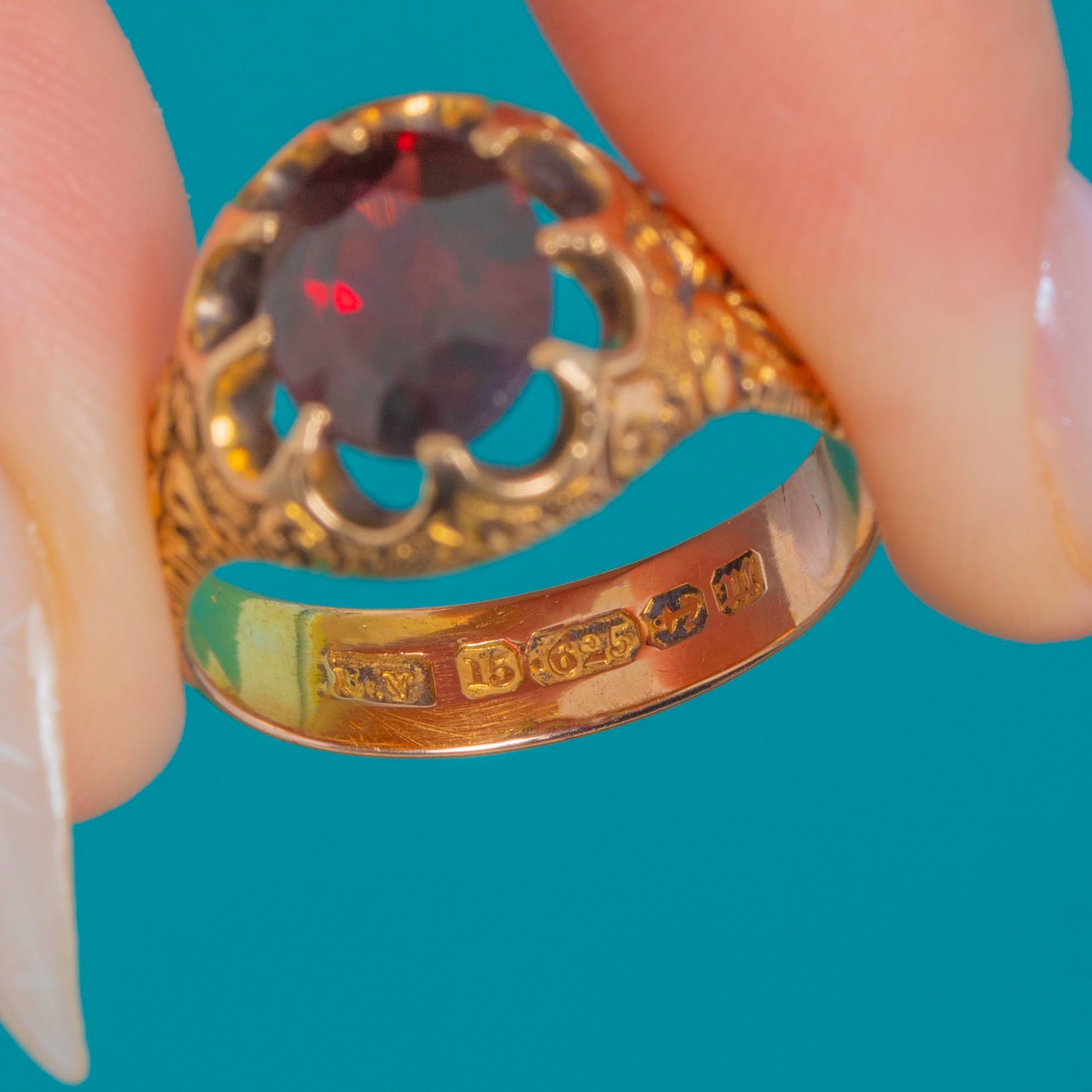 Victorian 15ct Gold Garnet Buttercup Engraved Ring