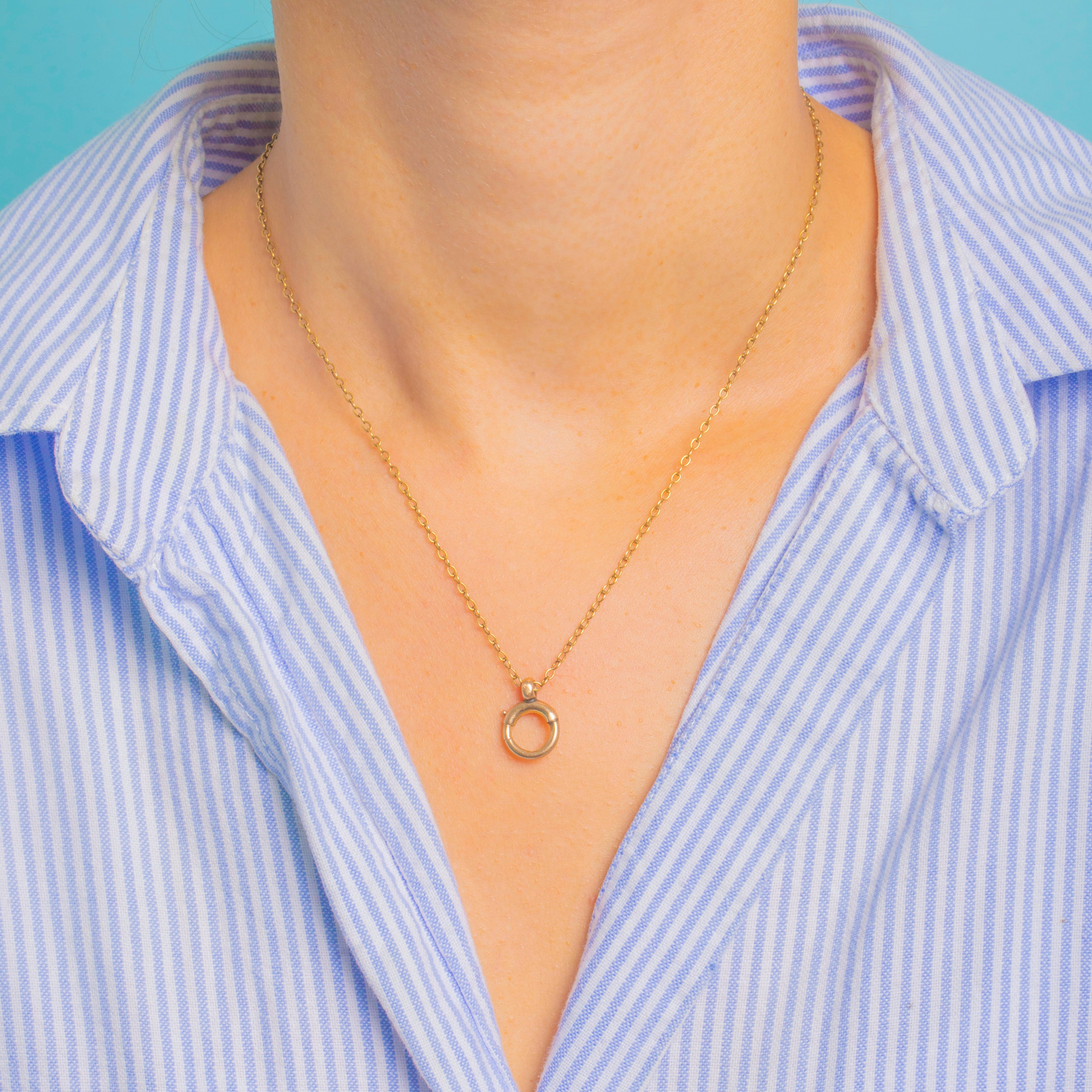 This large Victorian bolt-ring clasp is crafted in solid 9ct Gold, a genuine antique finding that combines beauty and practicality. Measuring 12mm in diameter, it’s ideal for attaching pendants or charms, or for upgrading an antique chain with an authentic period clasp.