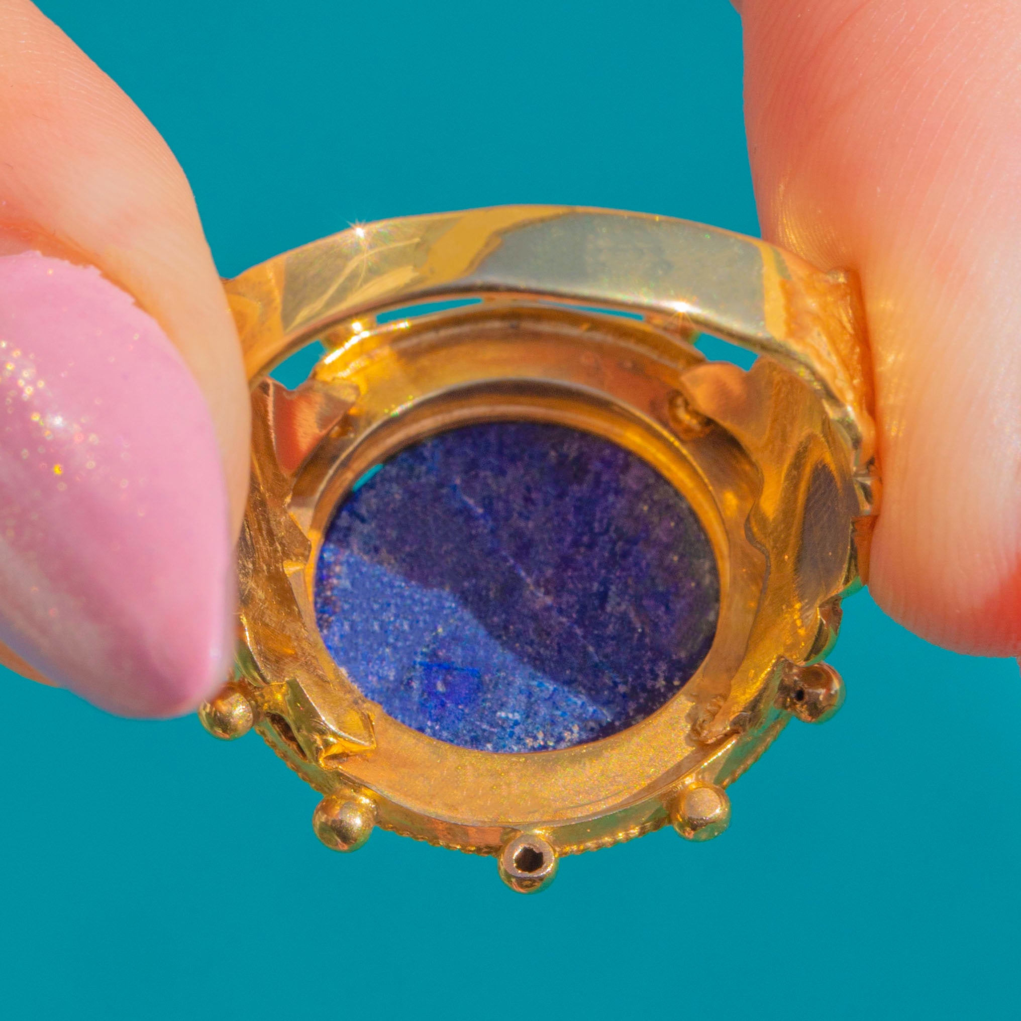 A striking Victorian jewel with a regal feel, this antique Lapis Lazuli ring is a captivating choice for lovers of statement Gold jewellery.