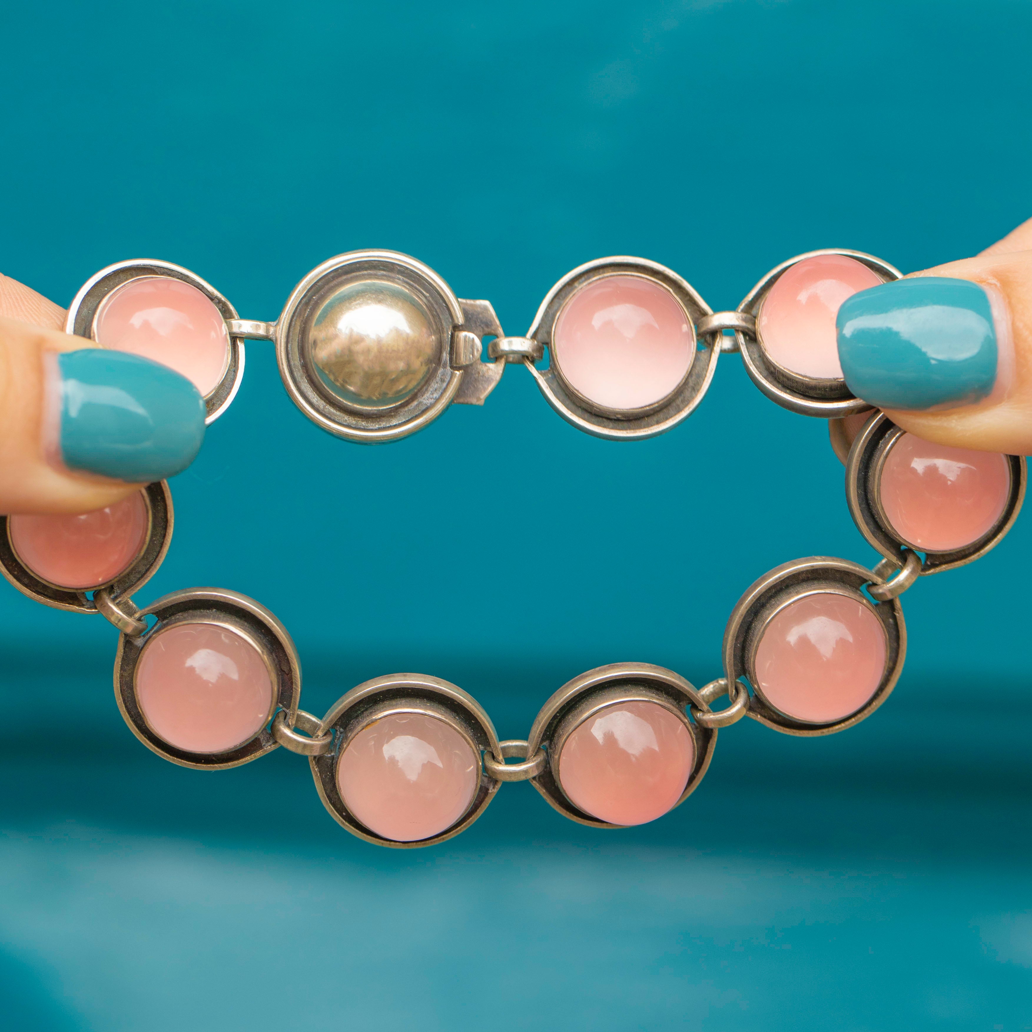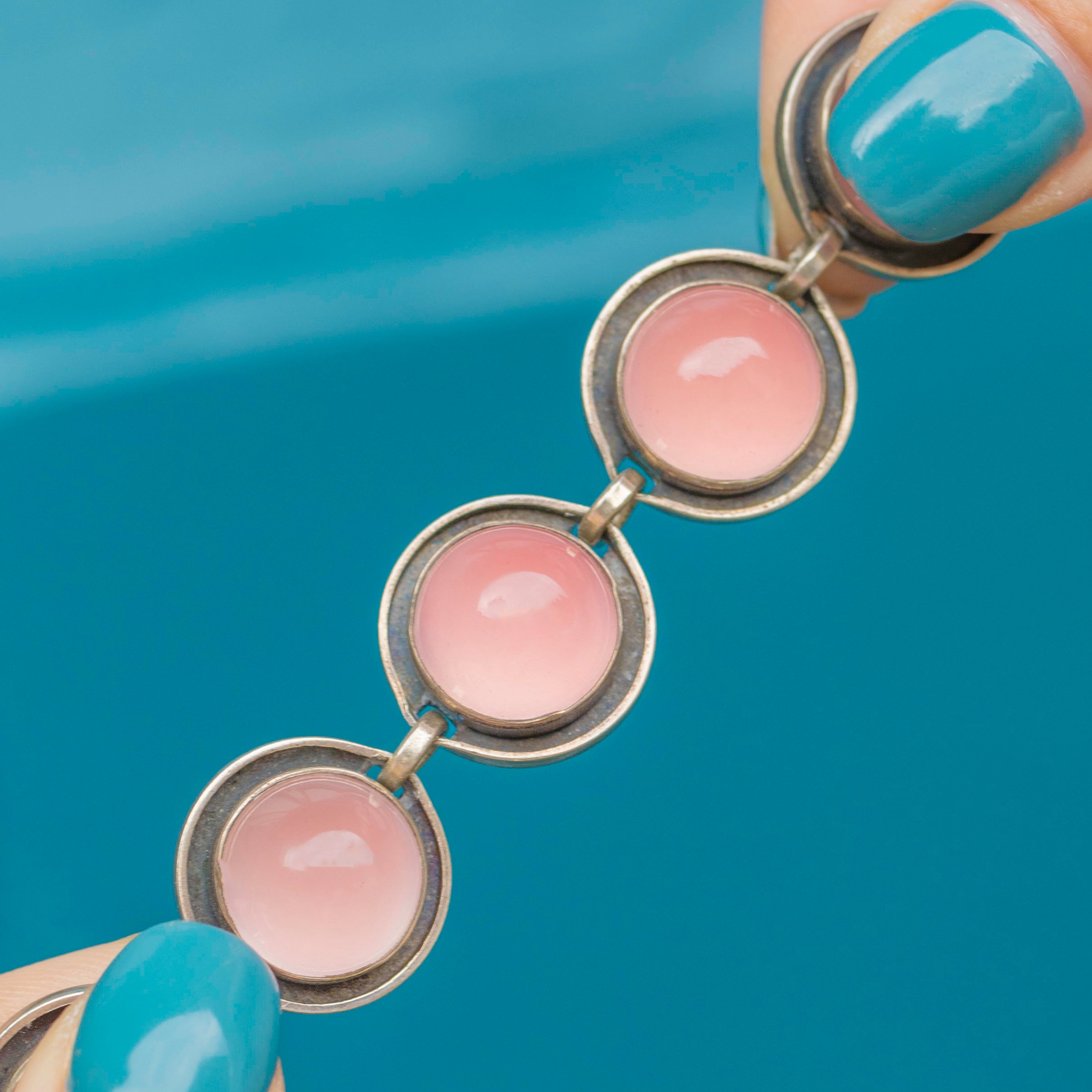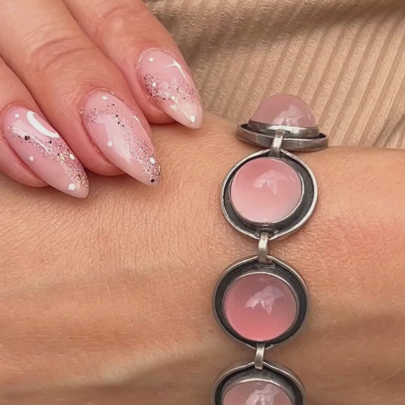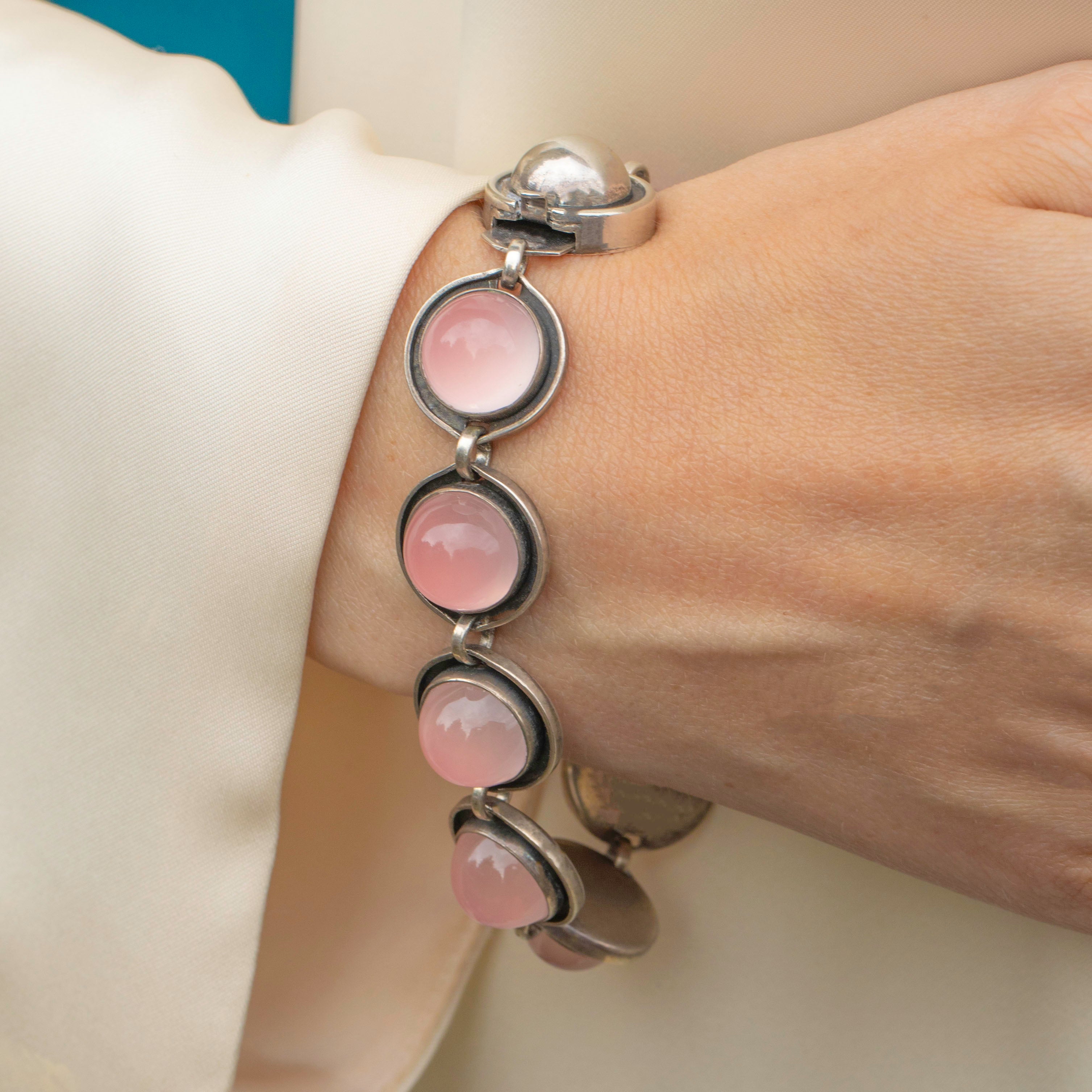 Scandinavian Silver Rose Quartz Cabochon Bracelet, 38.24ct