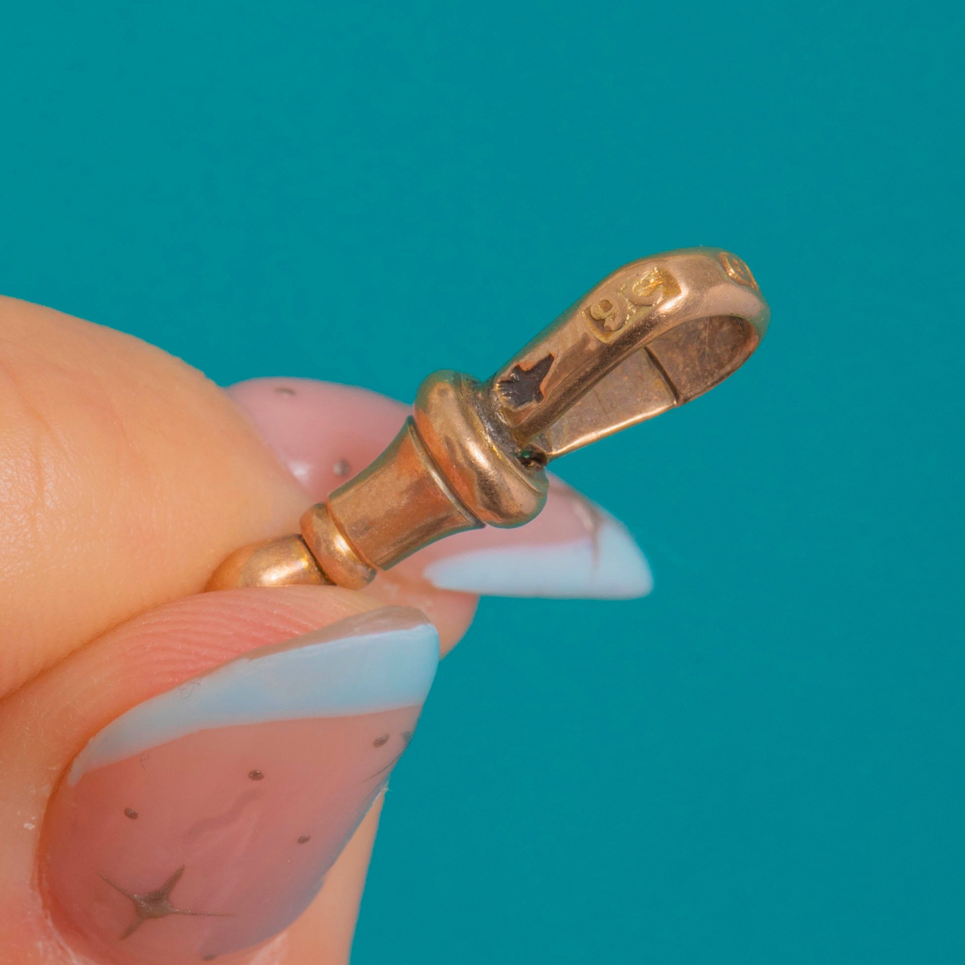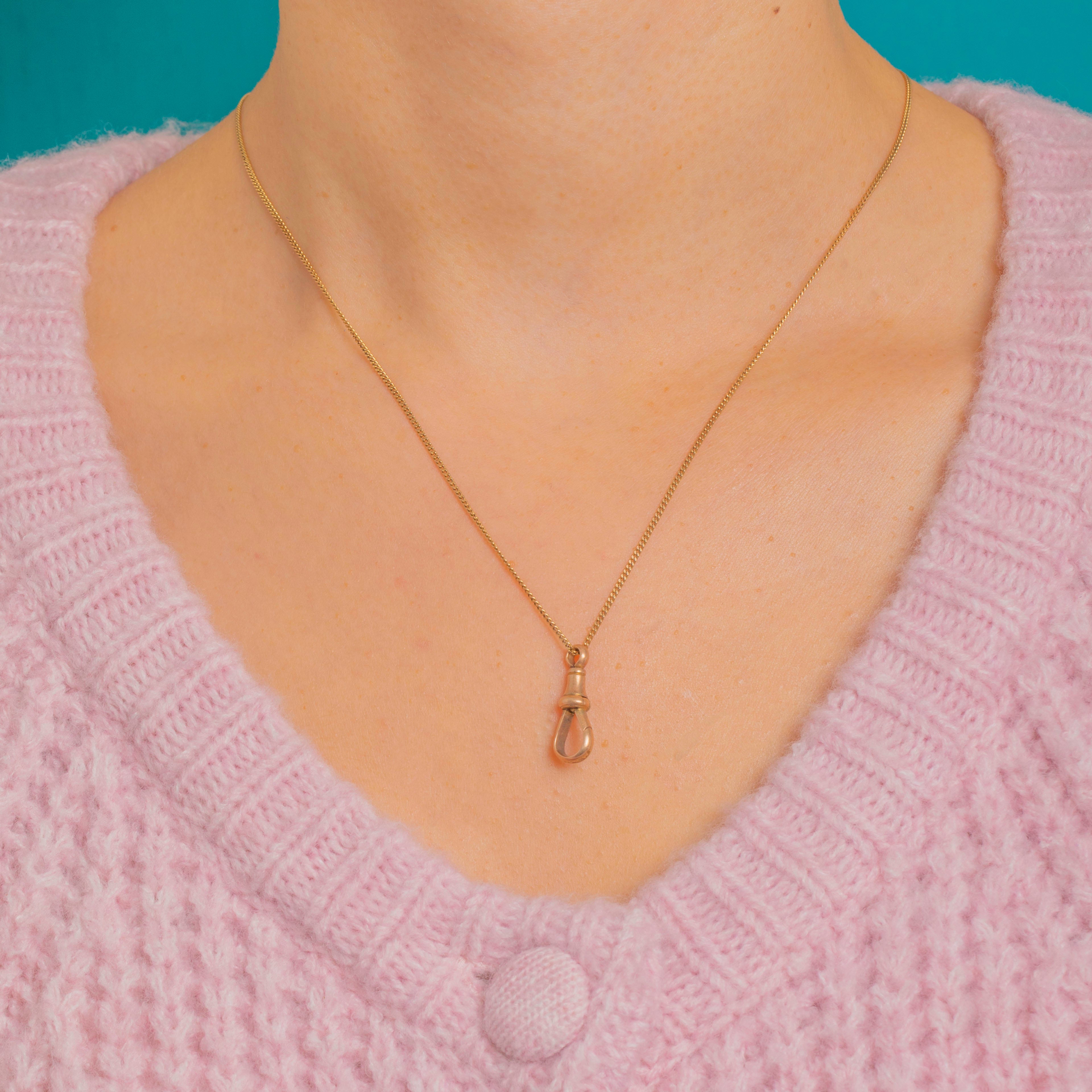 Understated and beautifully made, this antique Victorian dog clip is crafted in 9ct Gold. The baluster-turned barrel and teardrop gate create that classic watch-chain silhouette, its smooth contours and warm glow lending quiet elegance to everyday styling.