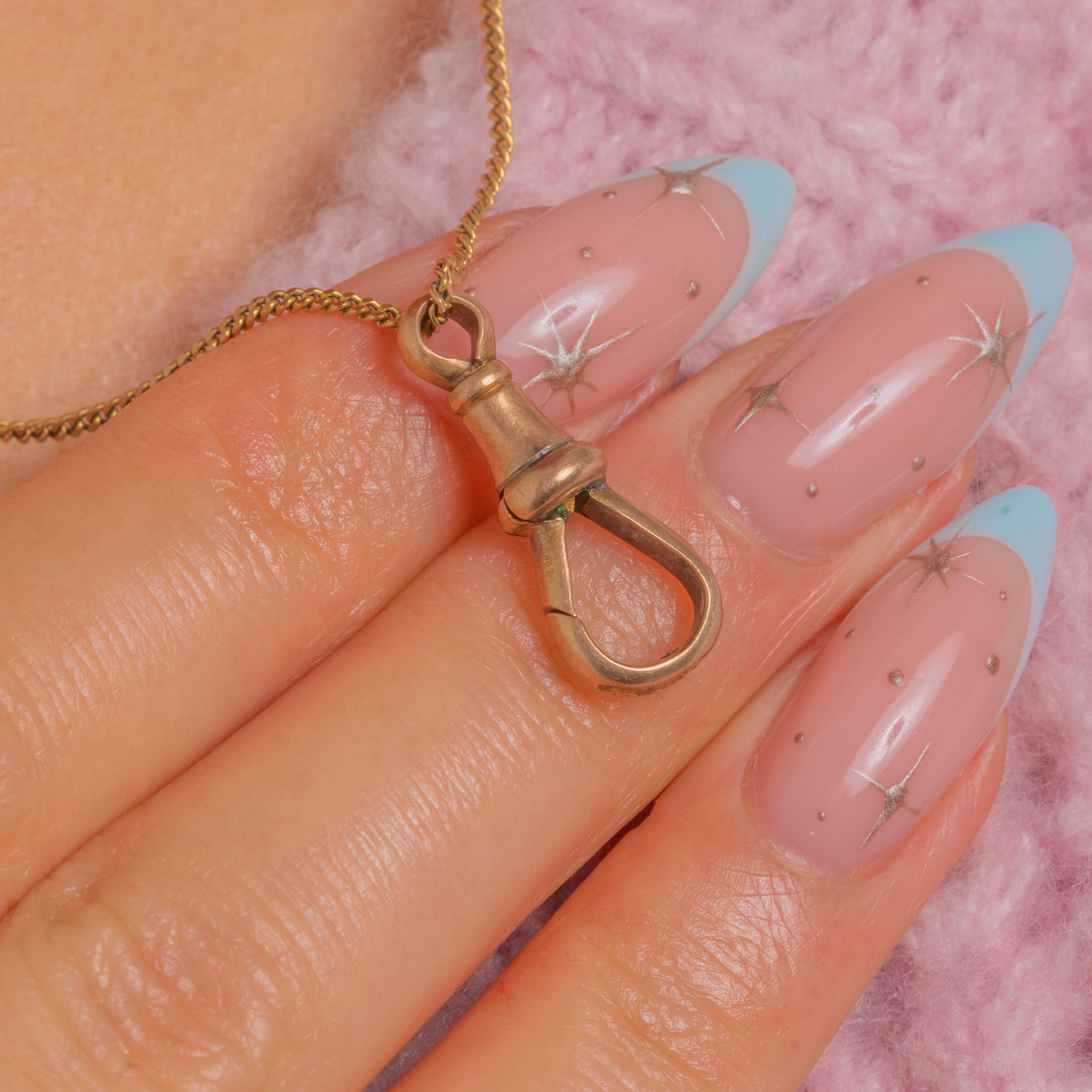 Stamped 9CT with maker’s mark GLW, it’s a versatile, wearable connector—perfect for suspending charms and pendants or finishing a favourite chain. The spring mechanism is neat and secure, offering a chic, functional accent you’ll reach for again and again.