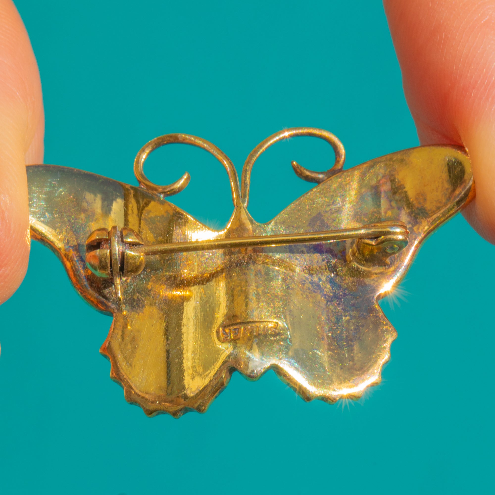 MEASUREMENTS: Brooch is 22.5mm tall x 38mm wide.