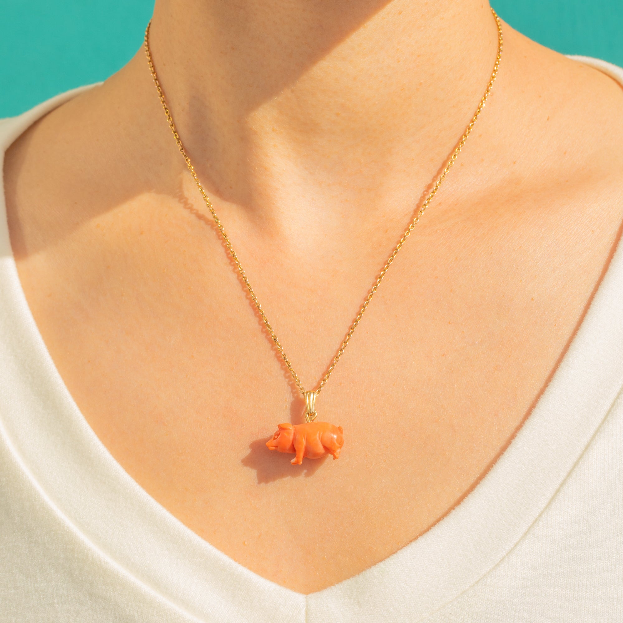 Victorian jewels with animal motifs are endlessly collectible, and this Coral pig is especially delightful in its warm, glowing hue against rich 15ct Gold. A whimsical yet luxurious accent, ready to adorn your favourite chain or sit proudly among other treasured charms.