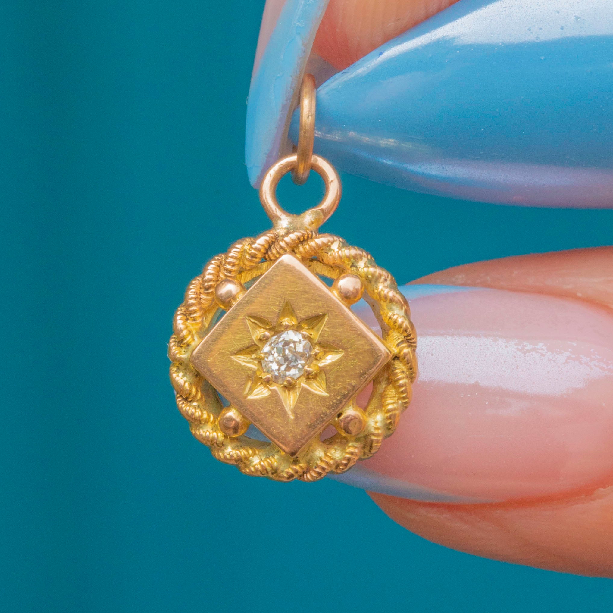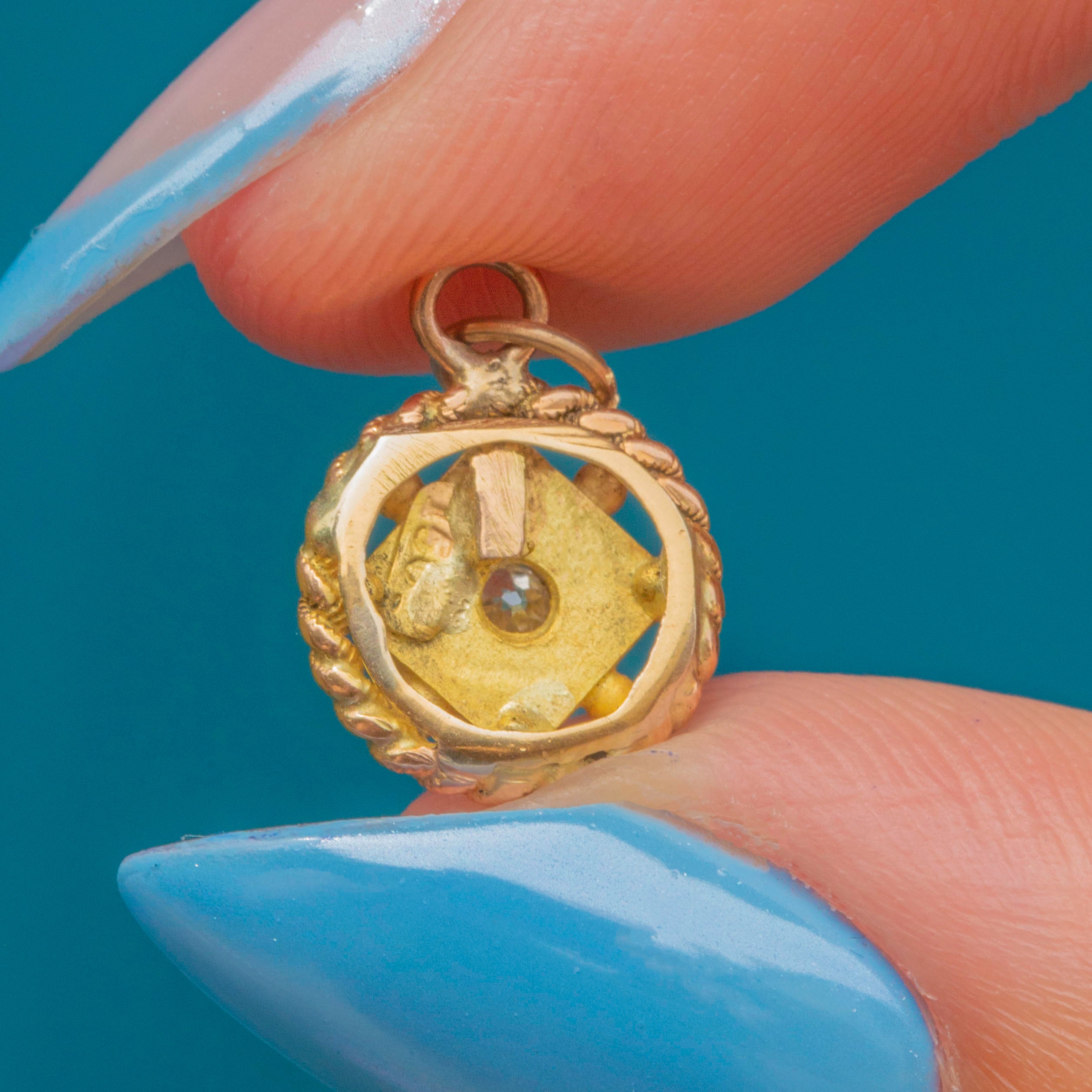 Victorian 15ct Gold Etruscan Diamond Charm