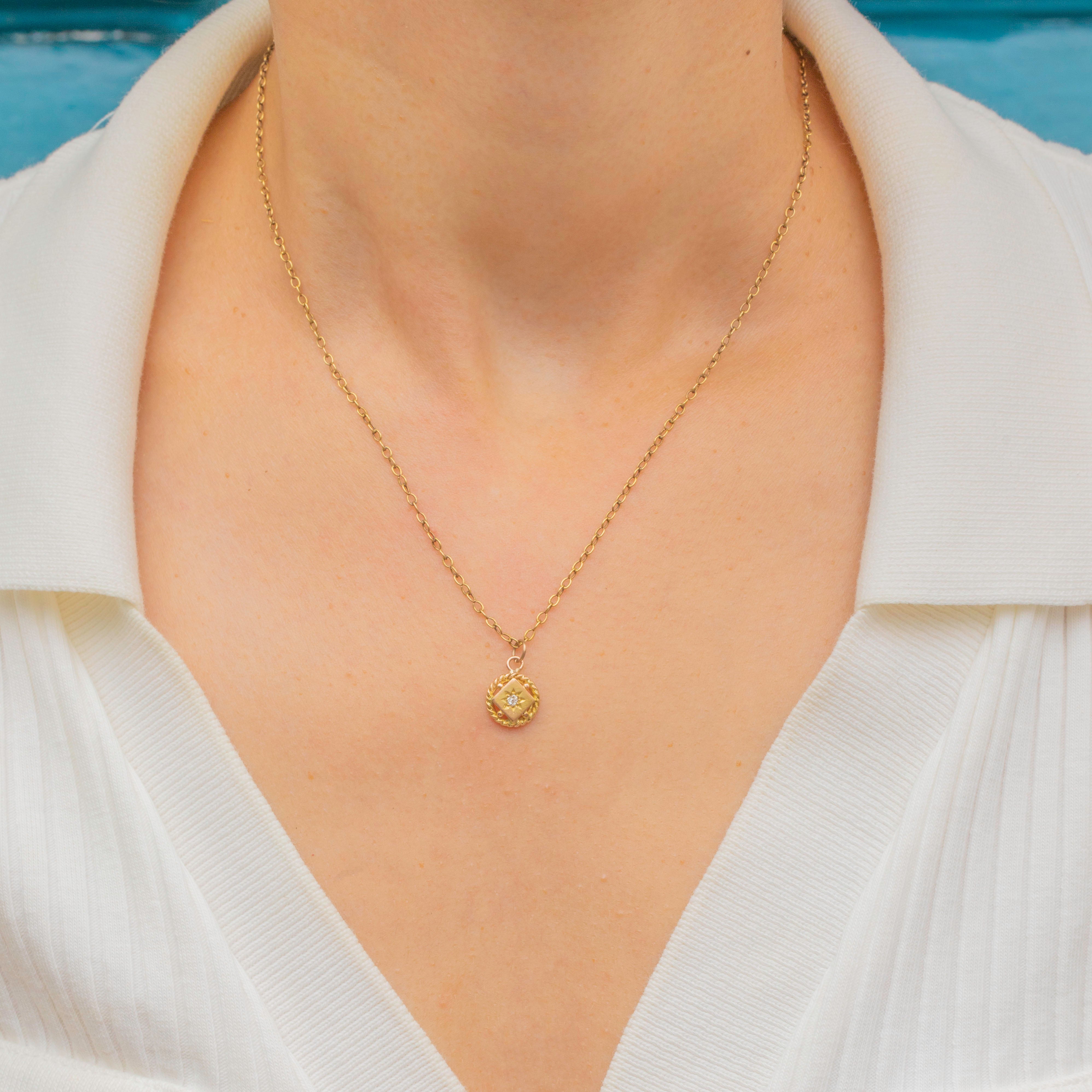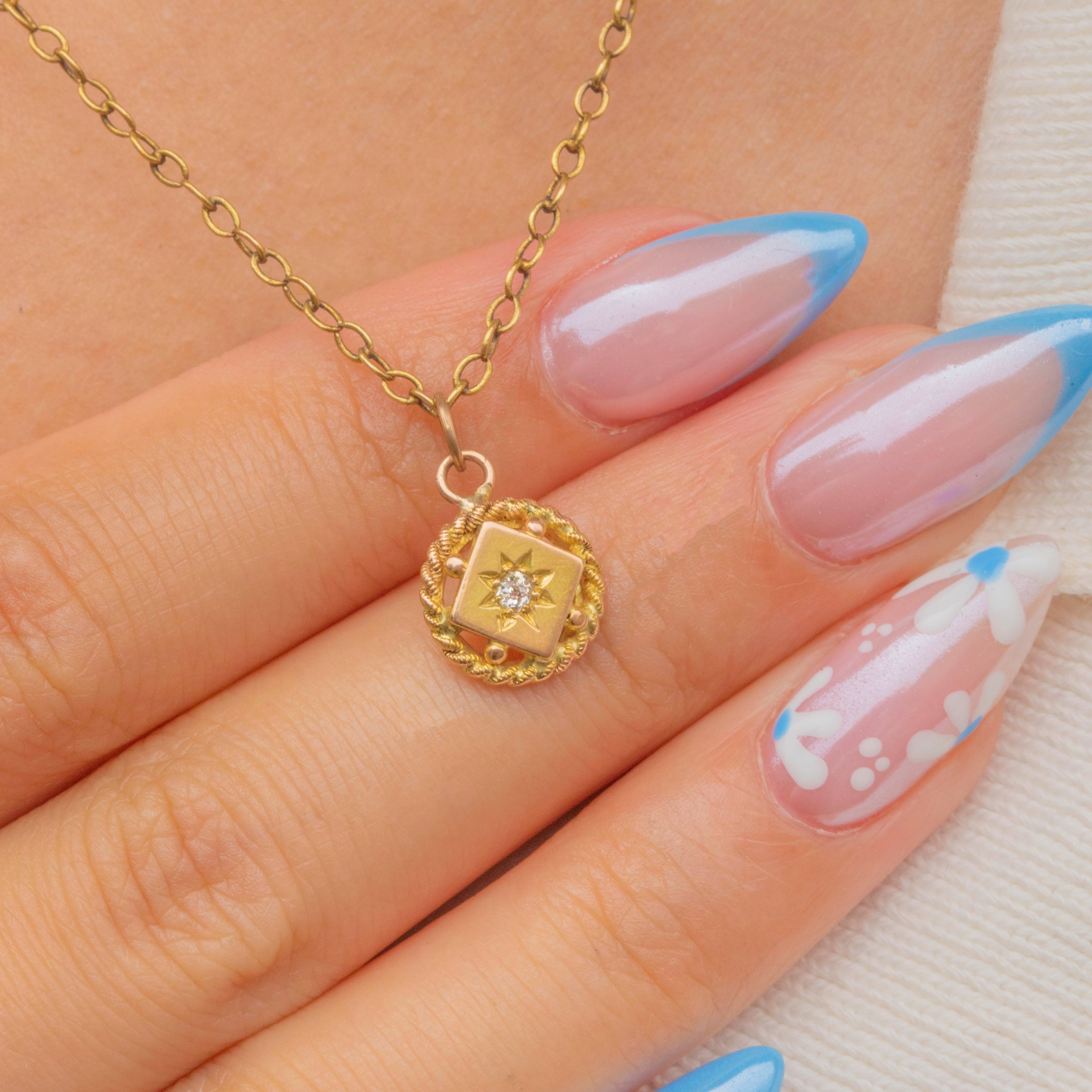 Nestled in its centre is a twinkling rose-cut Diamond set within celestial star settings. The Diamond is encircled by a gorgeous textured rope border with petite beaded details in quintessential Etruscan style - this petite Victorian piece will add ample charm to your collection!