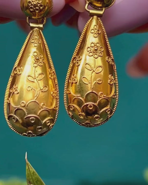 Victorian 15ct Gold Floral Torpedo Drop Earrings