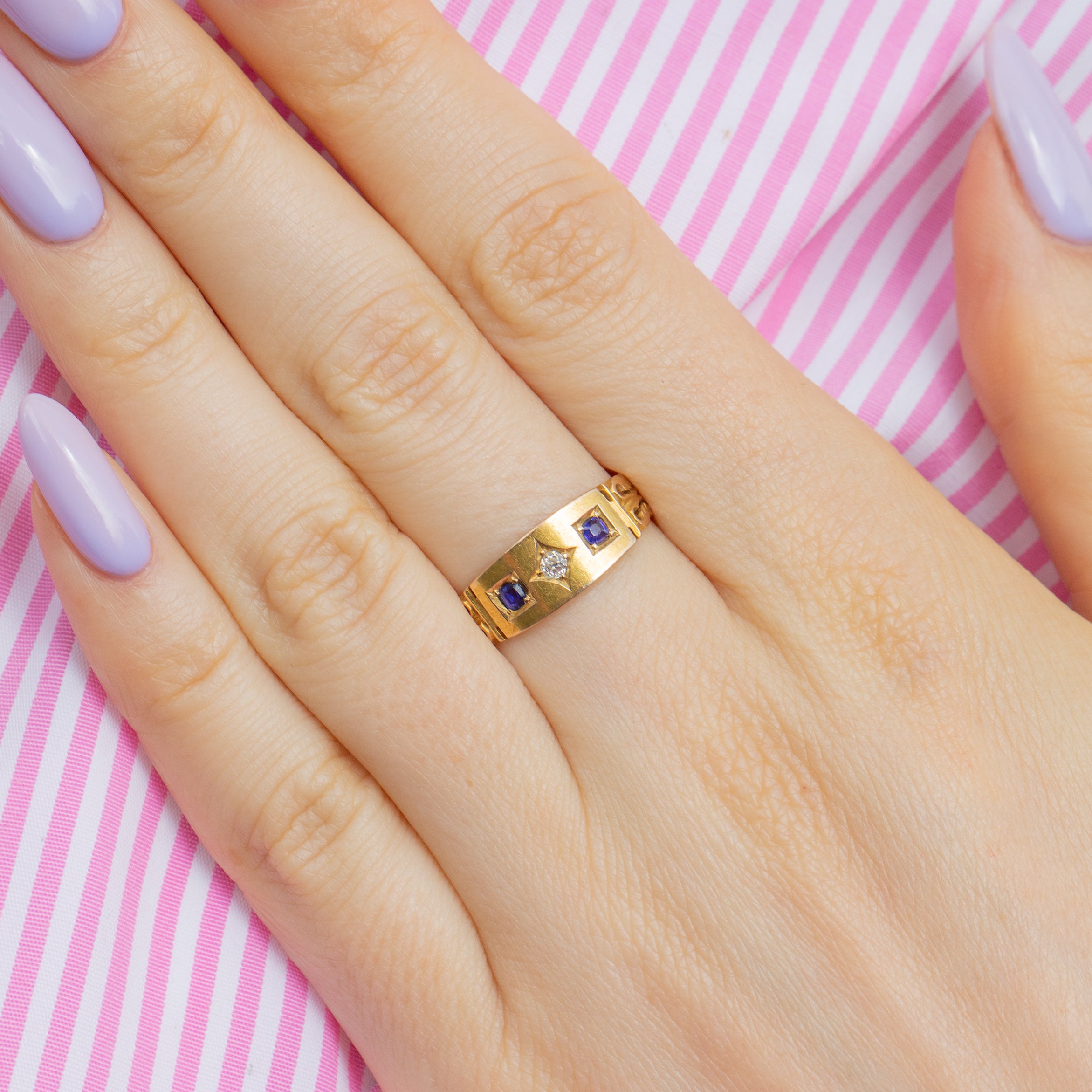 Victorian 15ct Gold Sapphire Diamond Gypsy Ring