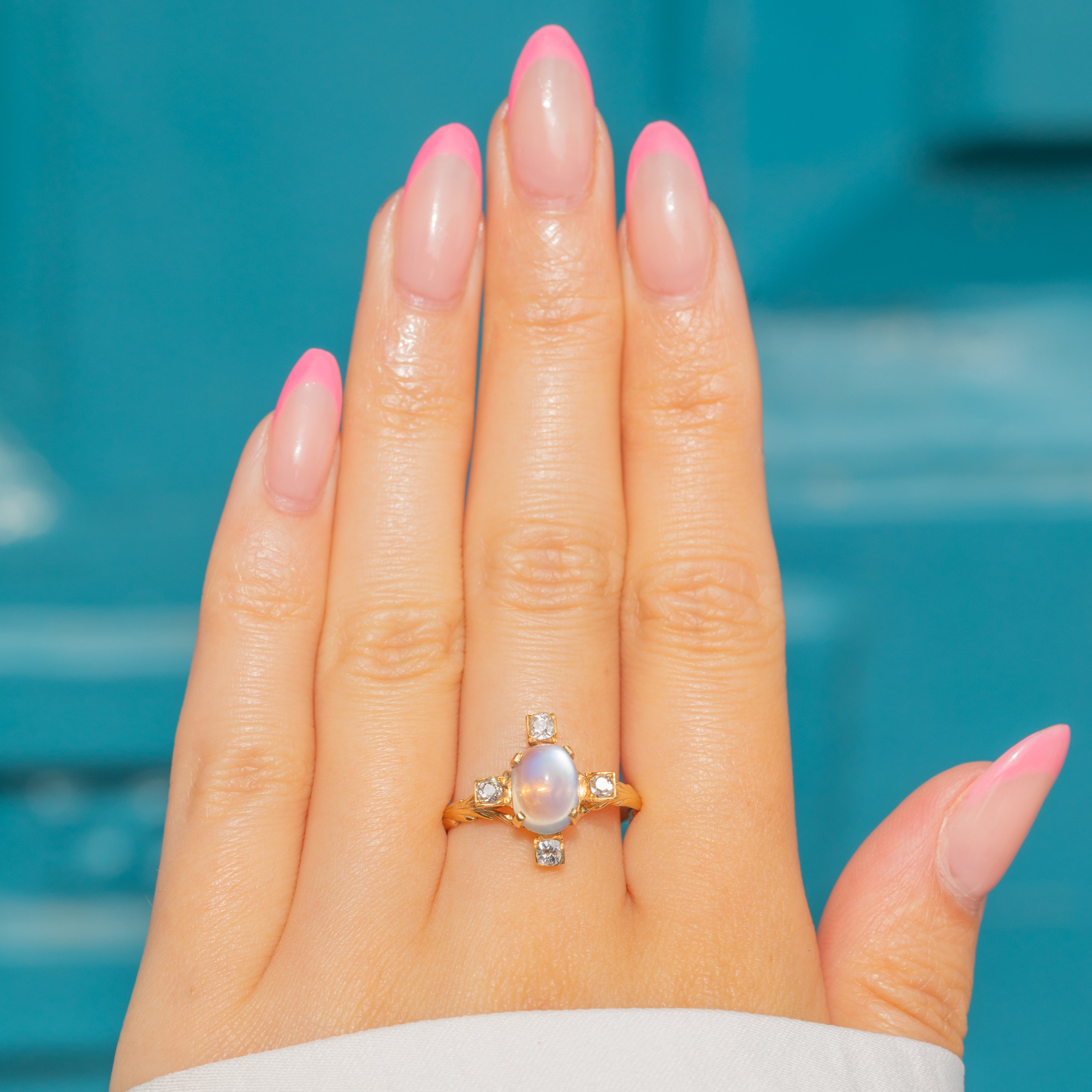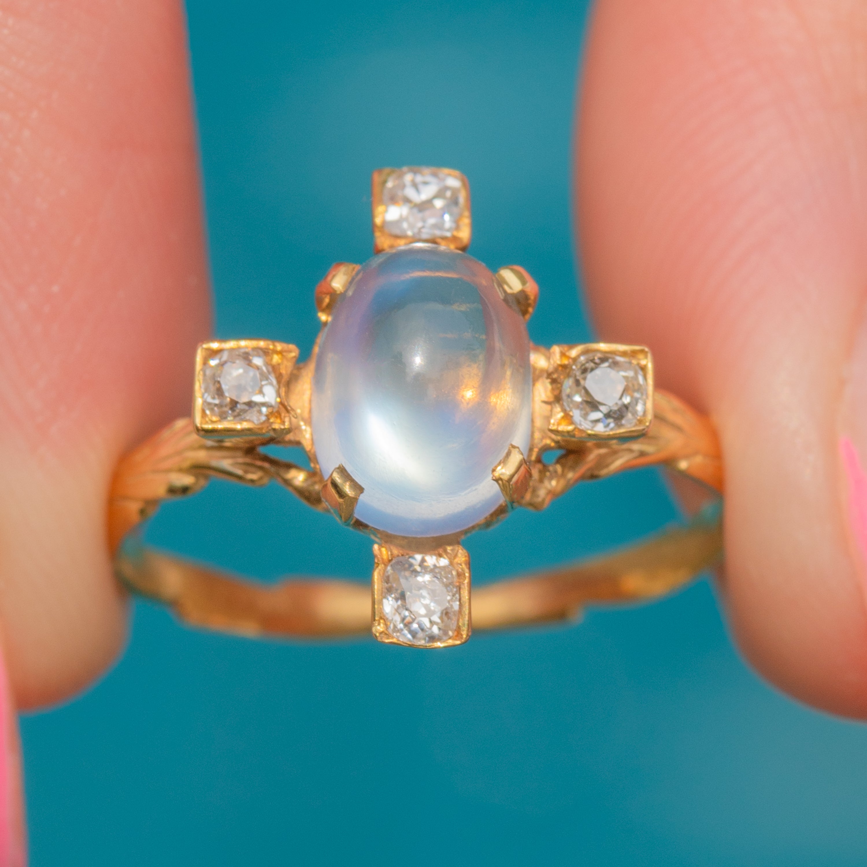Victorian 18ct Gold Ceylon Moonstone Diamond Ring, 1.92ct Moonstone