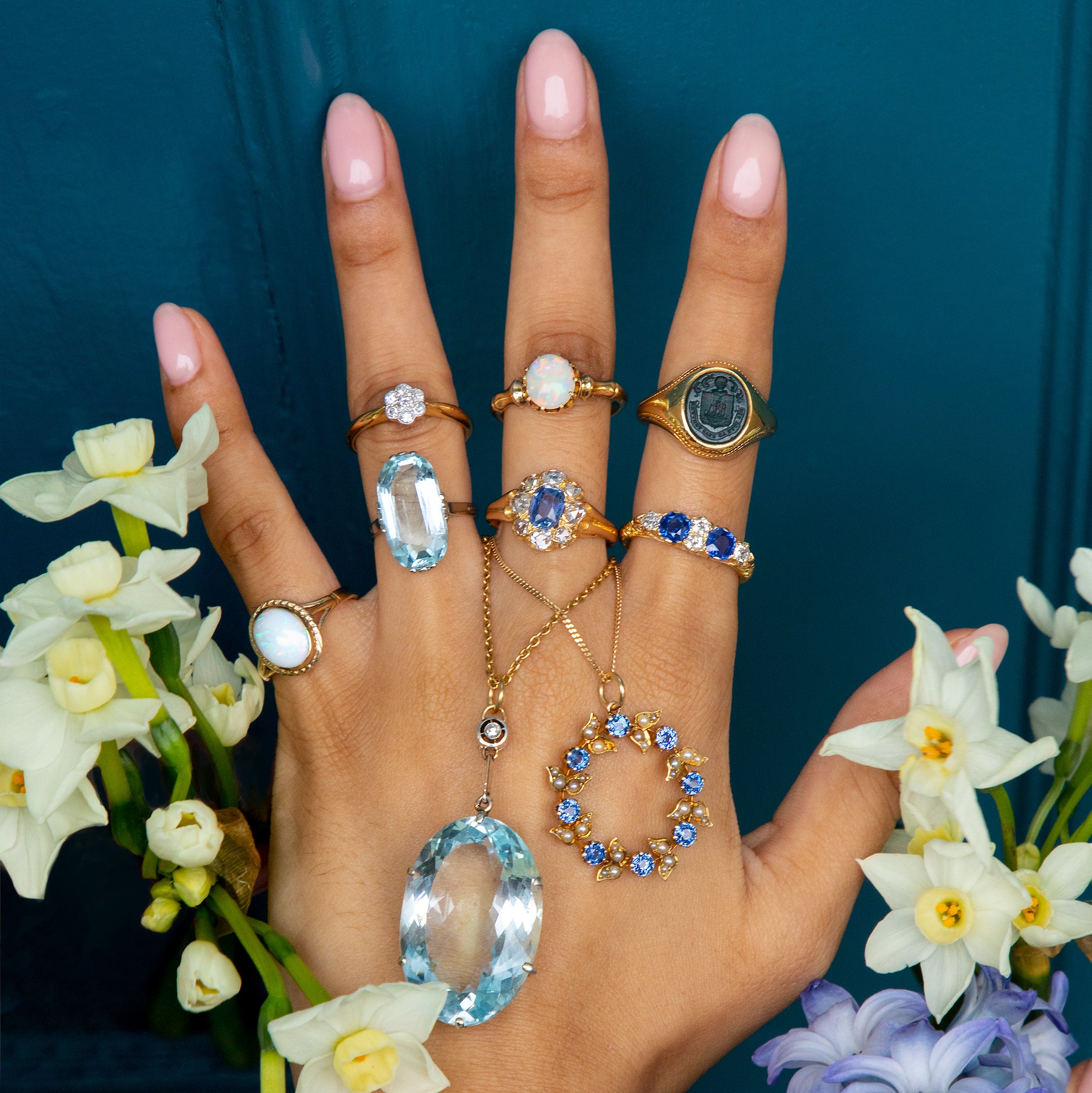 Side on, you will become enchanted by the exquisitely crafted gallery that showcases ornately engraved details in 18ct Gold. Whether you're looking for a unique engagement ring or to add a touch of luxury to your ring stack, this antique Sapphire Diamond ring would make the perfect choice!
