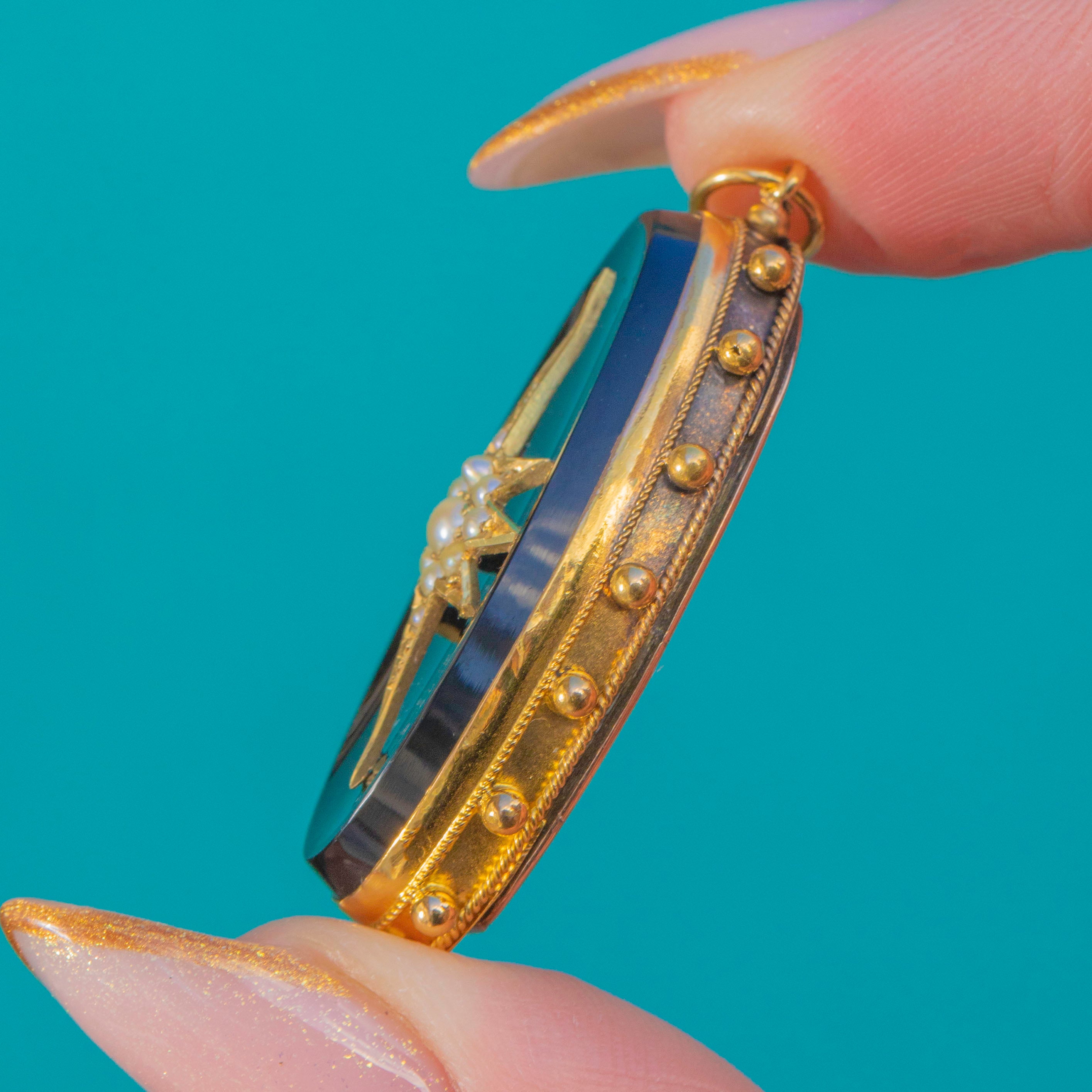 Victorian 18ct Gold Onyx Pearl Starburst Locket Pendant