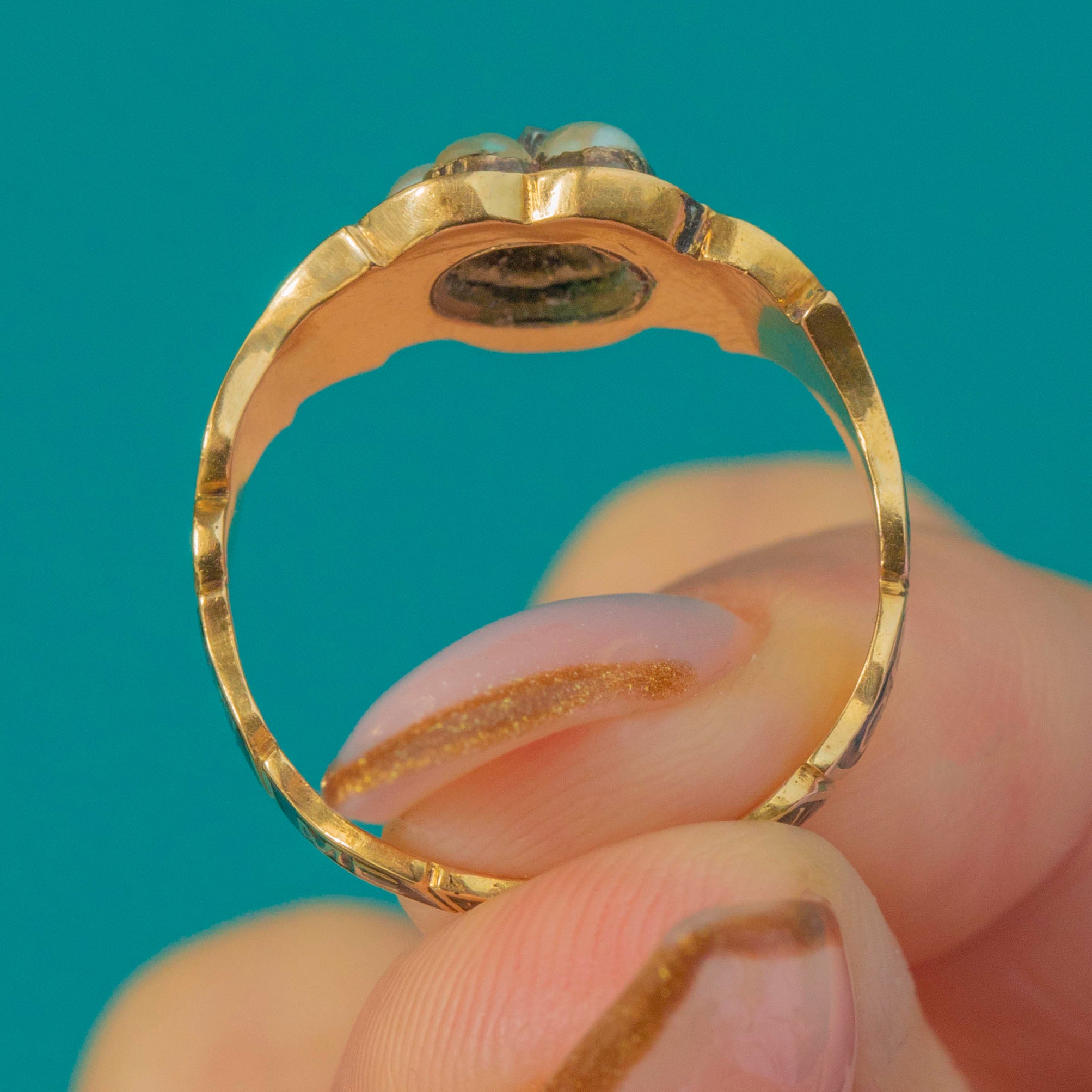 Victorian 18ct Gold Pearl Diamond Mourning Ring c.1846