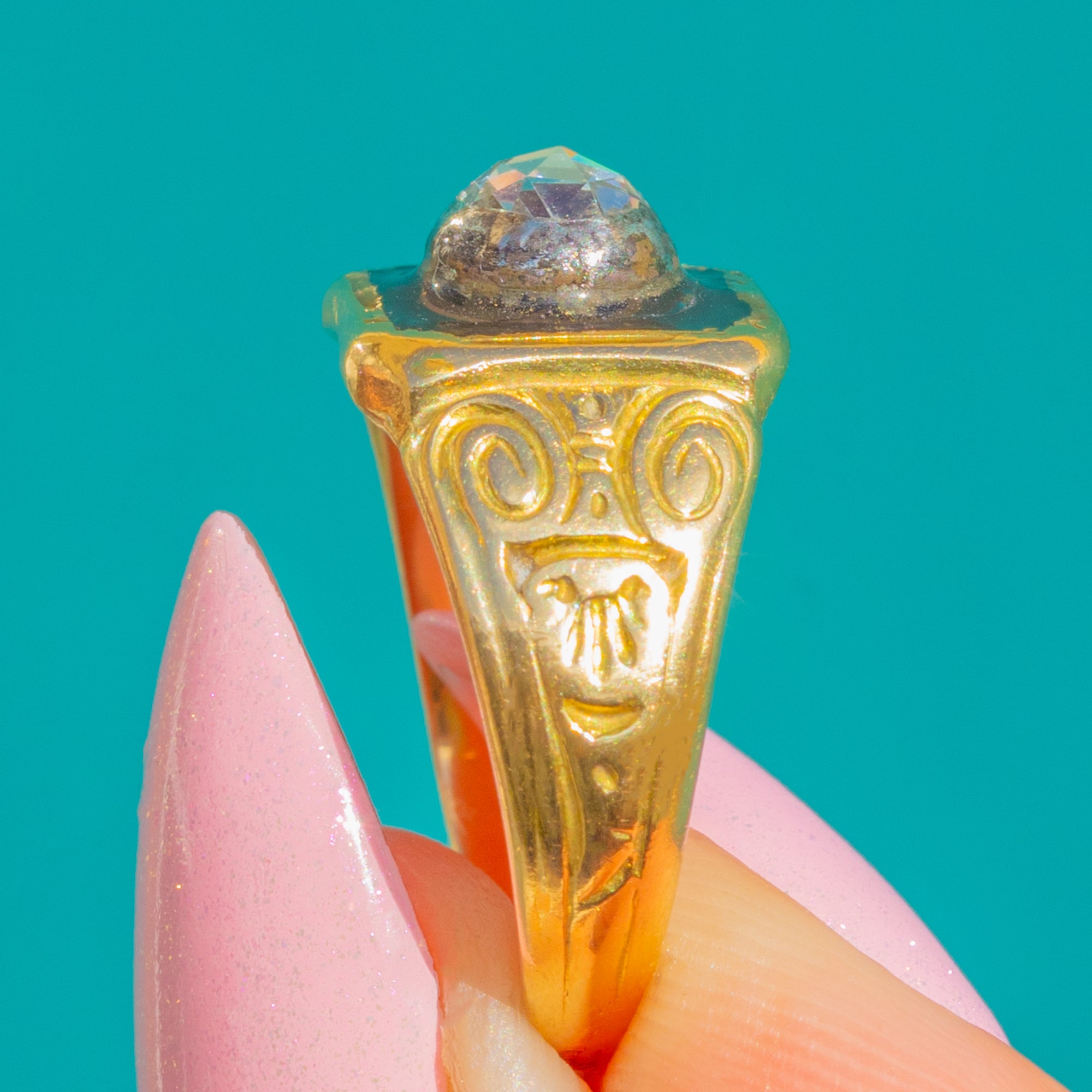 Compact yet ornate, this signet-style silhouette feels quietly luxurious and wonderfully wearable. The interplay of Gold, Silver and Black Enamel is quintessentially Victorian, making this ring a beautiful choice for stacking or as a characterful standalone treasure.