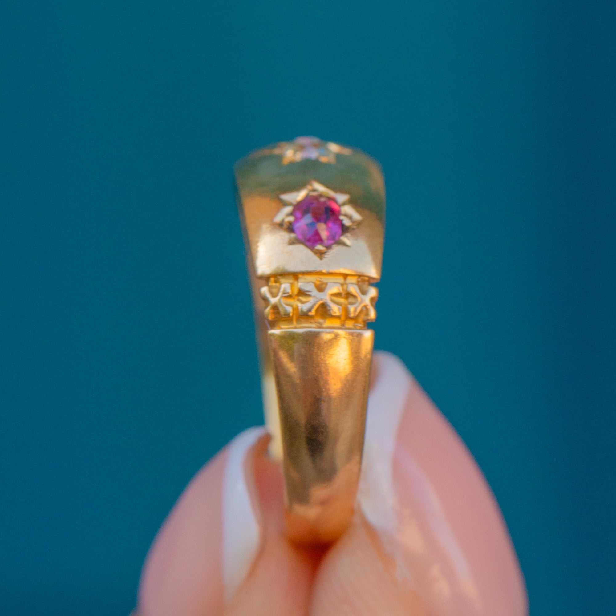 Victorian 18ct Gold Ruby Diamond Gypsy Ring, c.1876