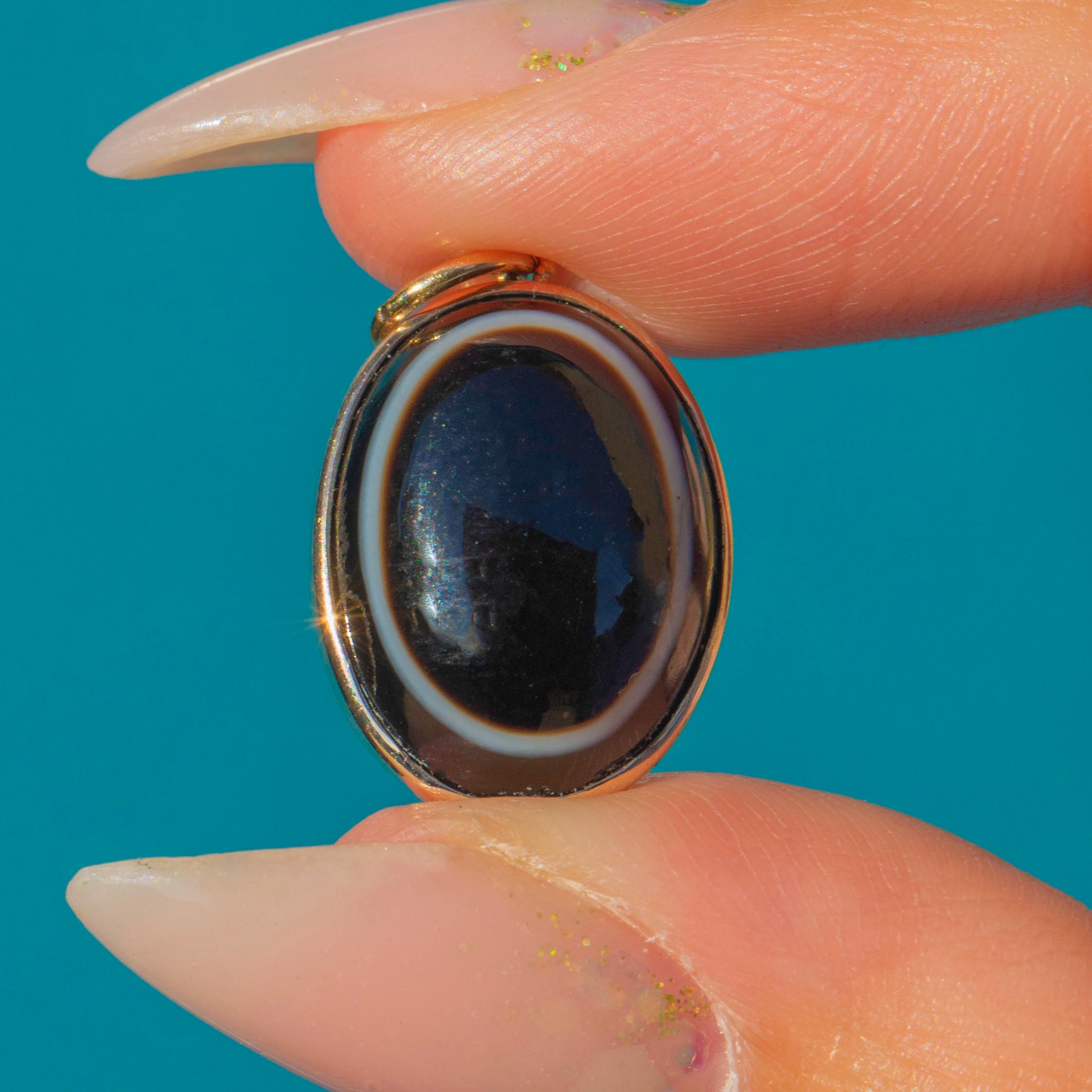 Victorian 9ct Gold Bulls Eye Banded Agate Pendant Item added