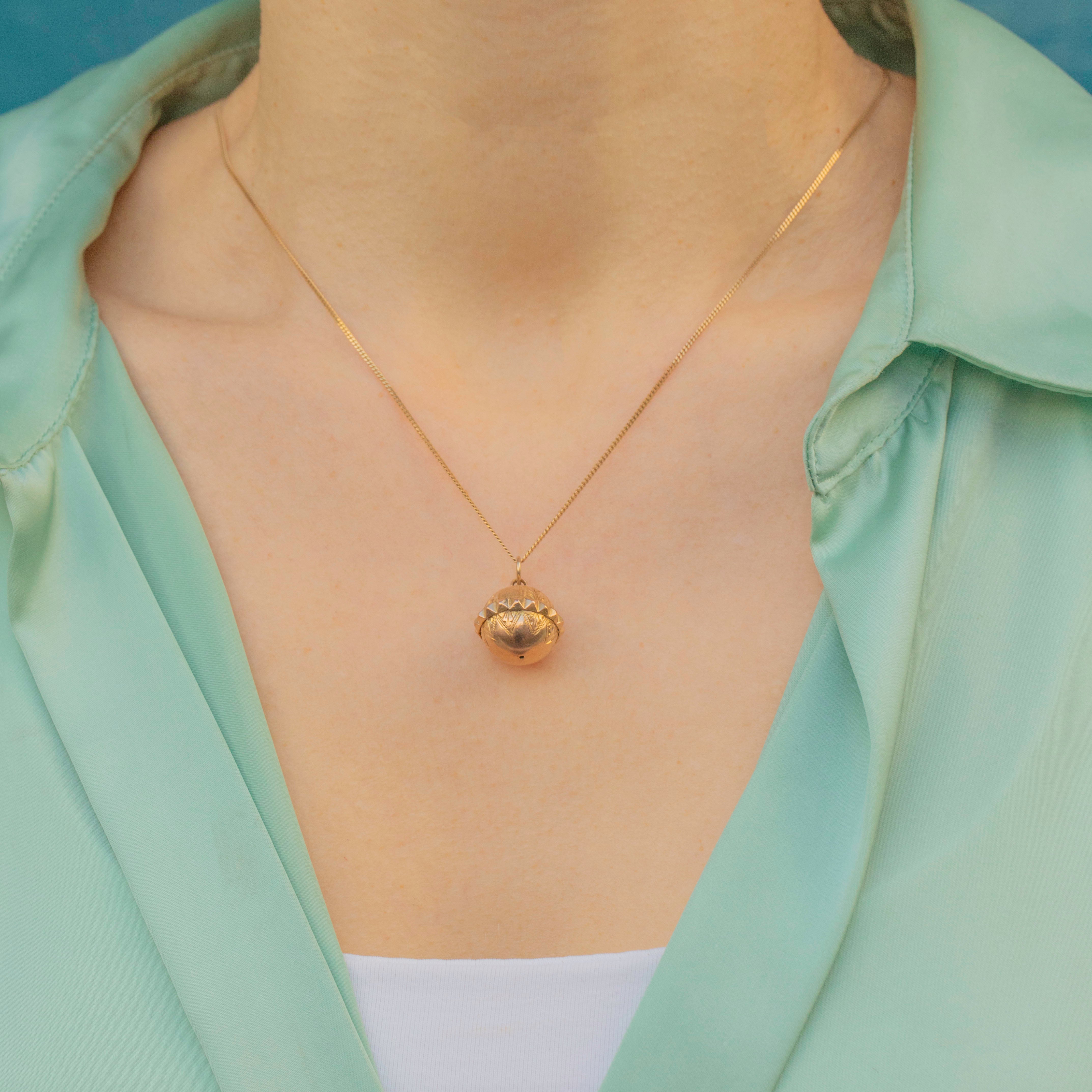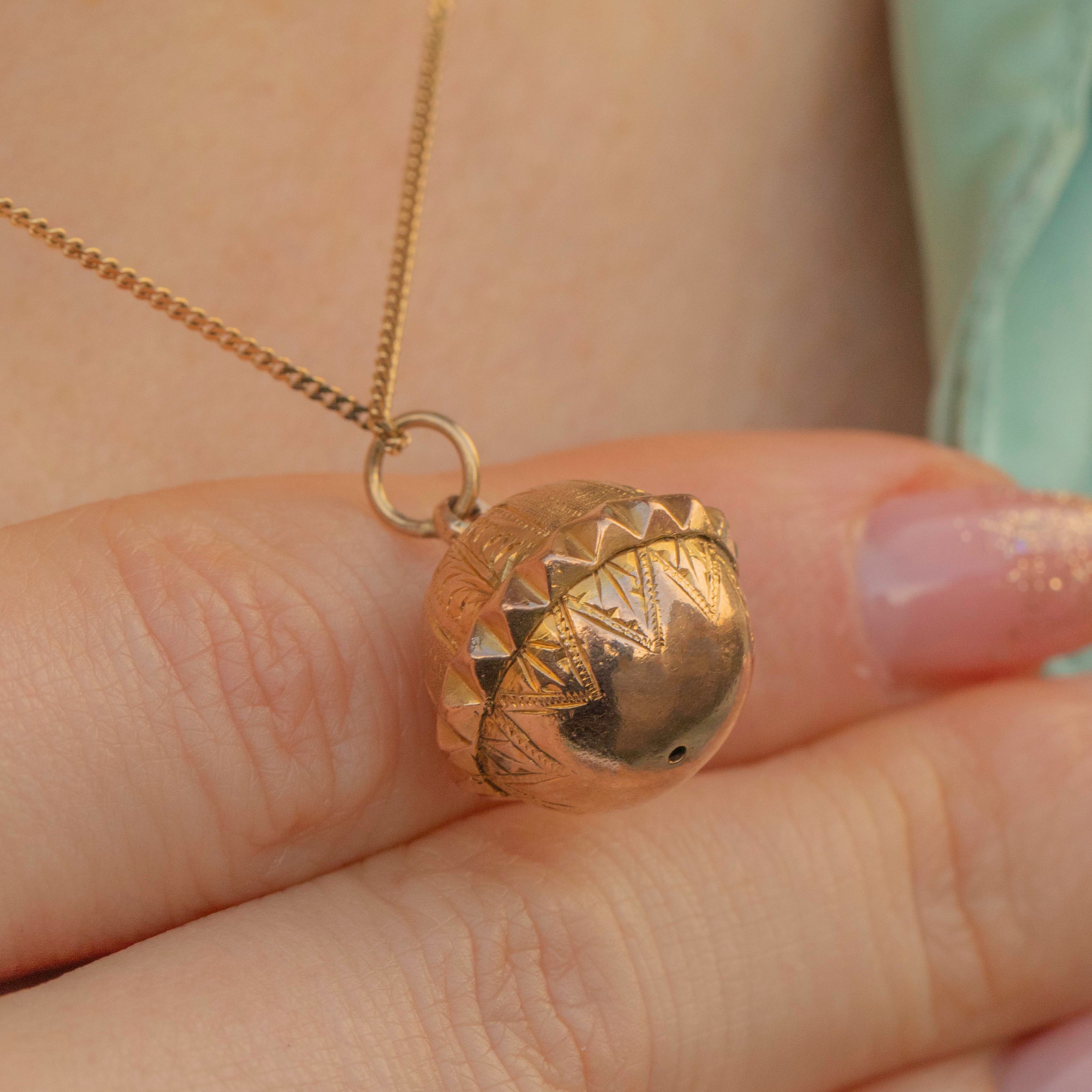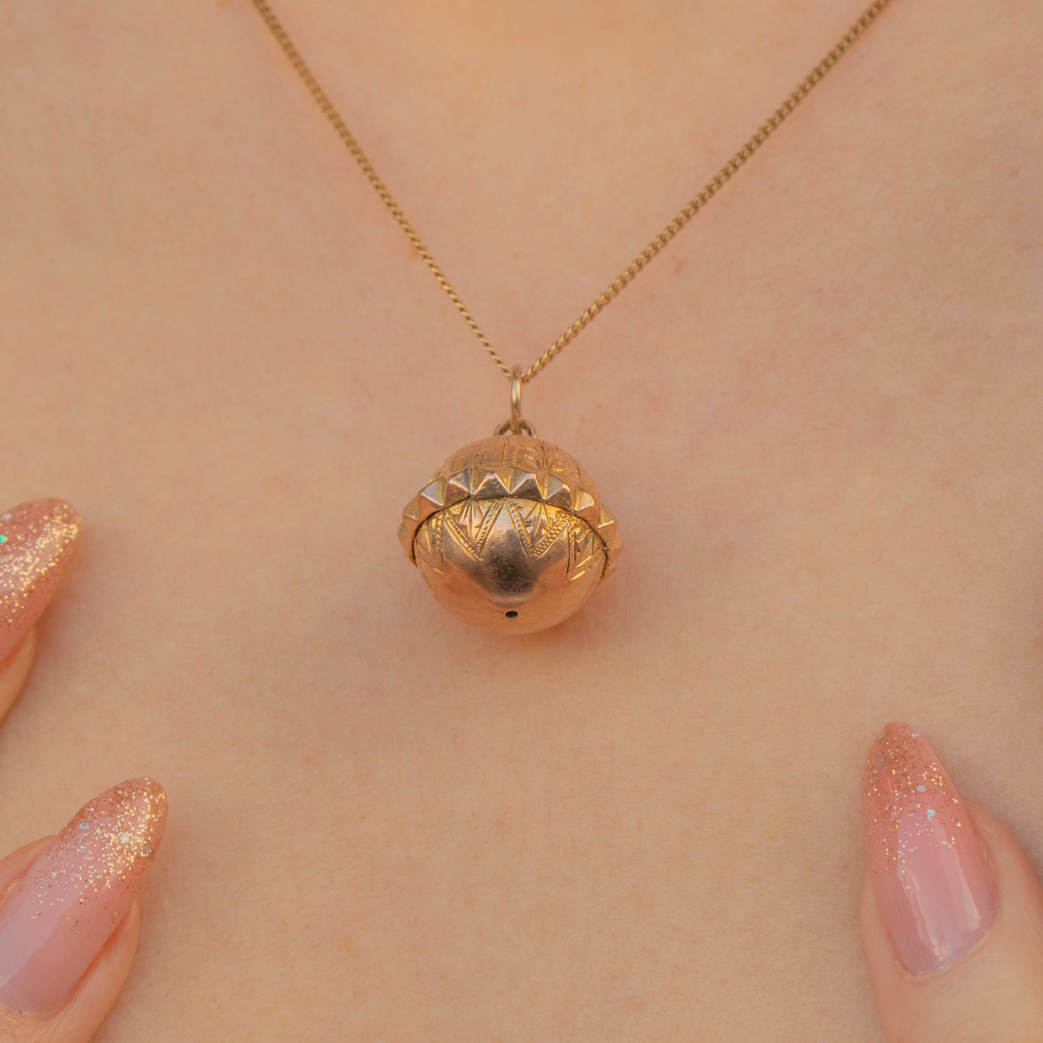 You will love how this Gold sphere pendant rolls across your chest as you move, and if she's layered with your other antique treasures then she'll make for an even more thrilling neck stack. The Gold is a gorgeous rosey tone, and we think she'll be a great addition to any growing antique jewellery collection!