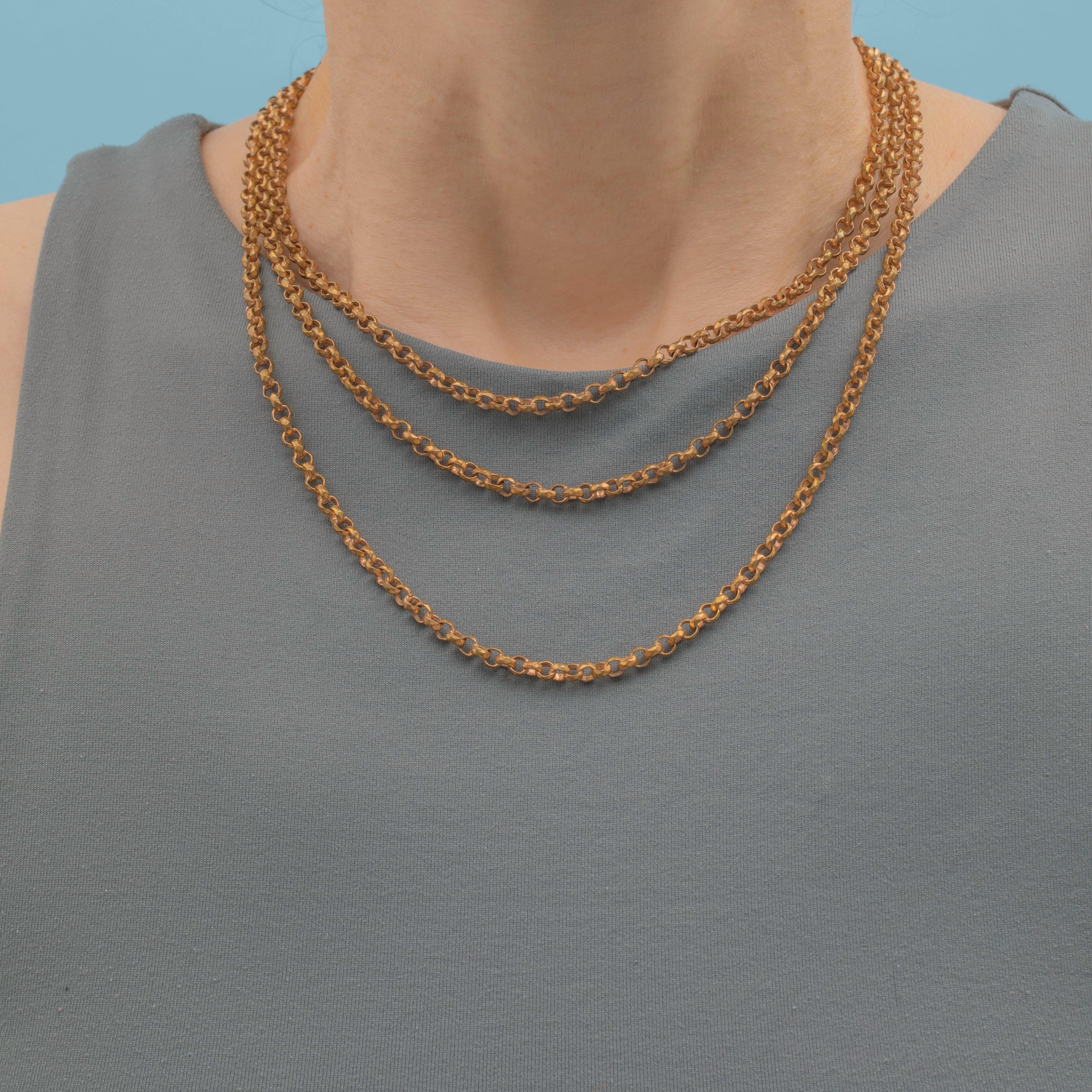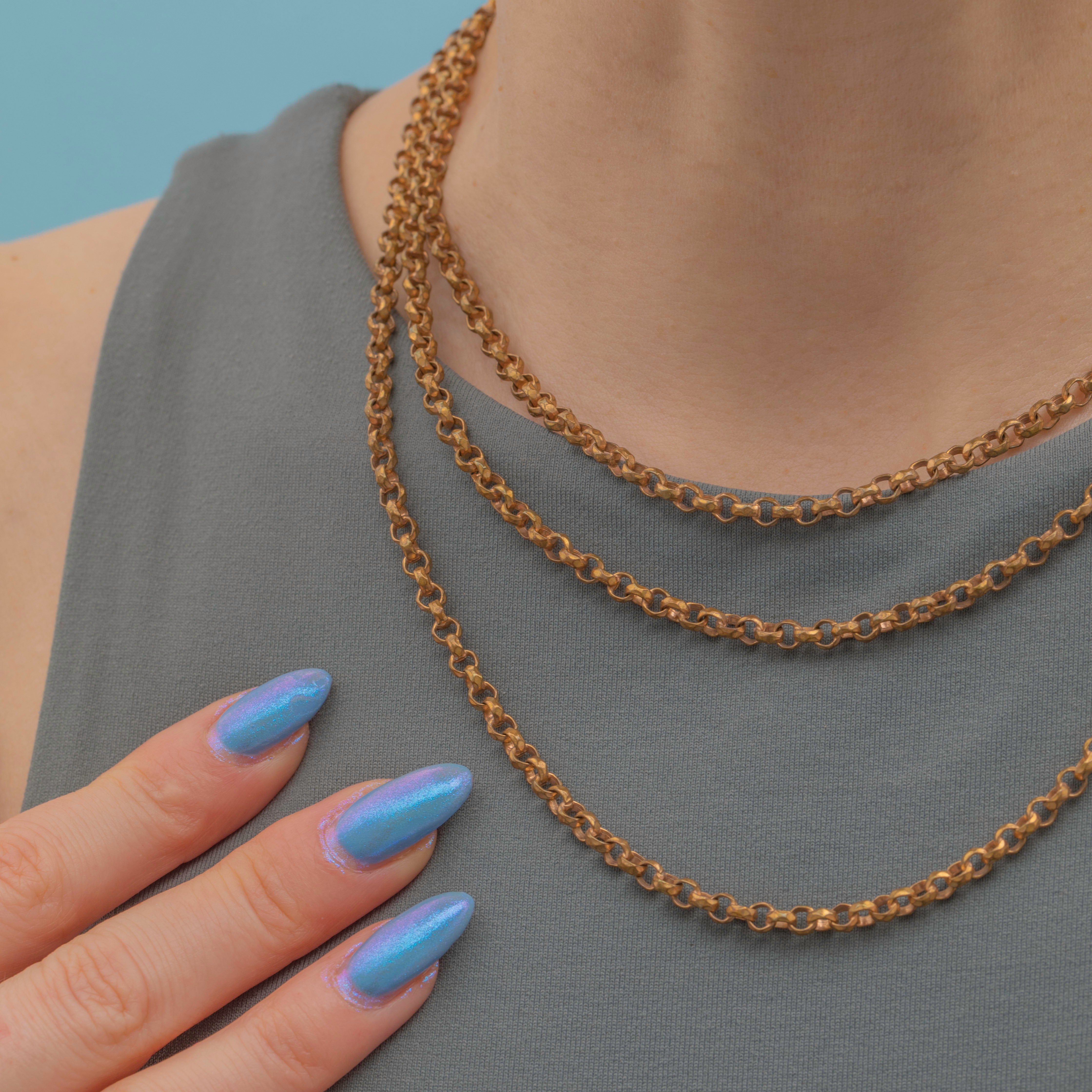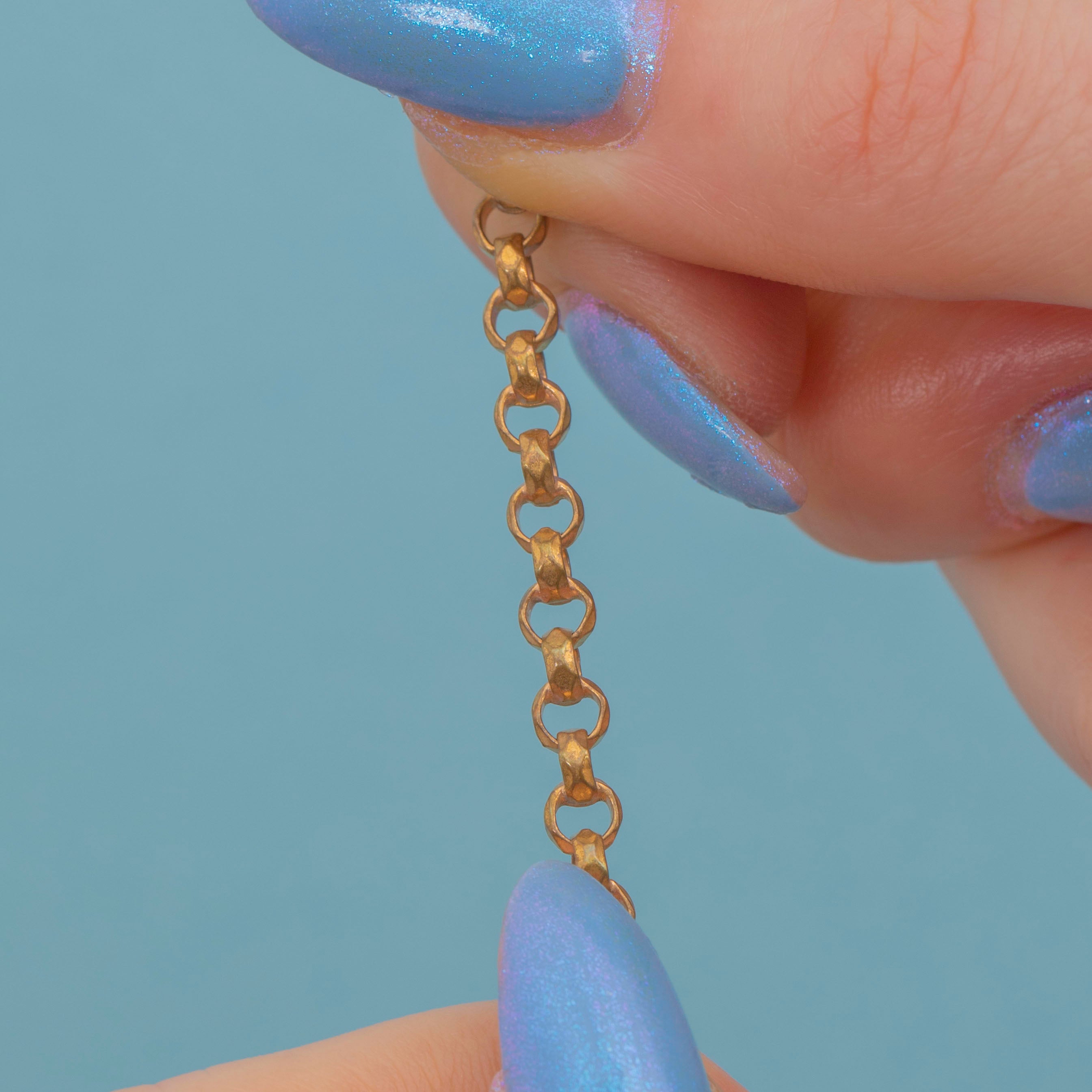 Measuring a generous 51" long, this treasure can be wrapped multiple times to create a chunky layered look. With a highly sought-after dog-clip to attach your treasured charms and pendants, she is the perfect affordable antique chain to add a flash of Gold to your collection.