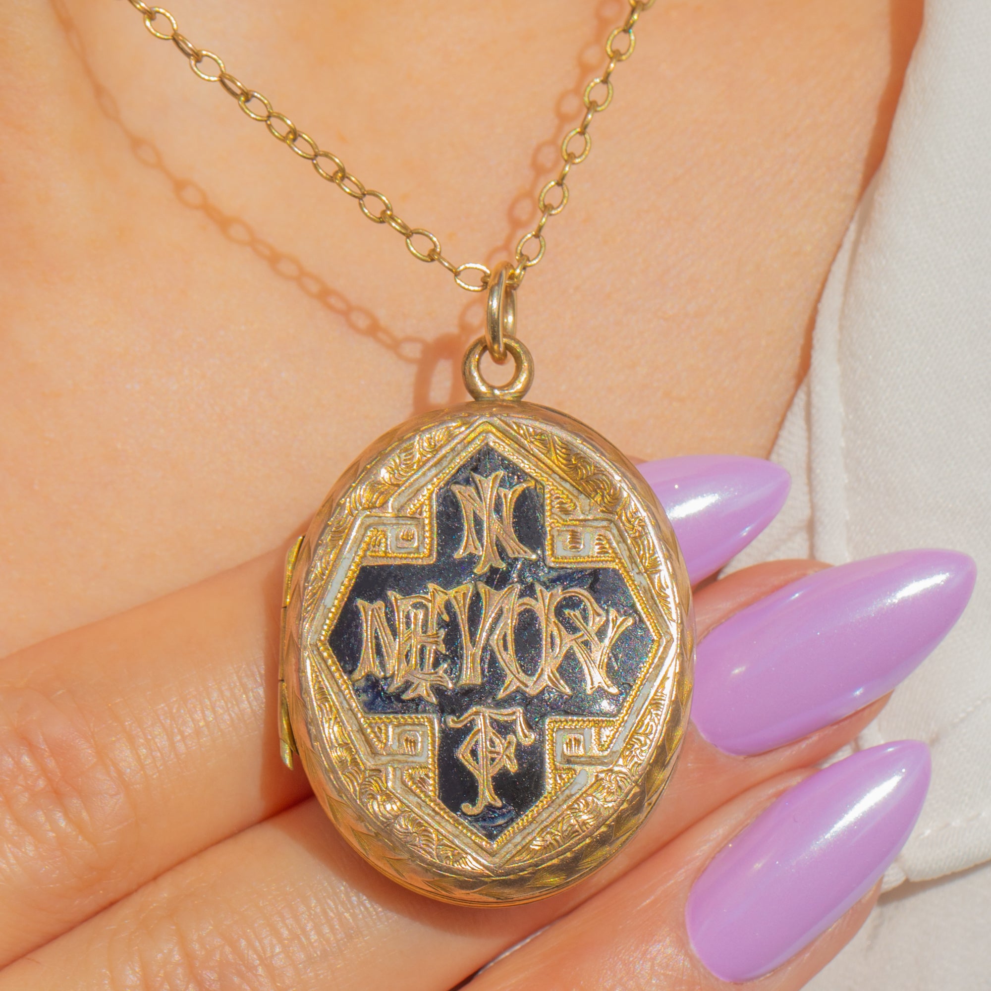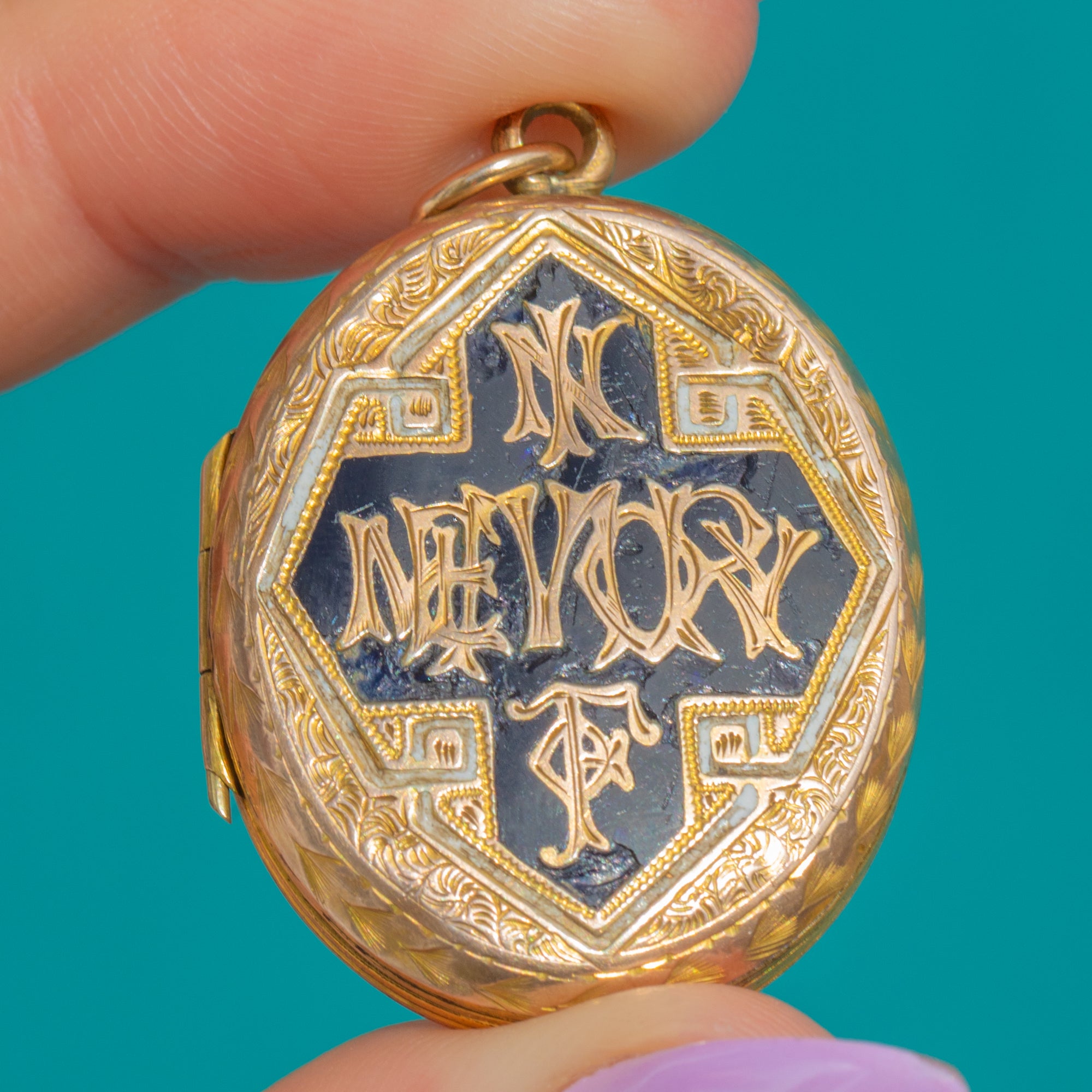 Victorian 9ct Gold "In Memory Of" Black Enamel Locket