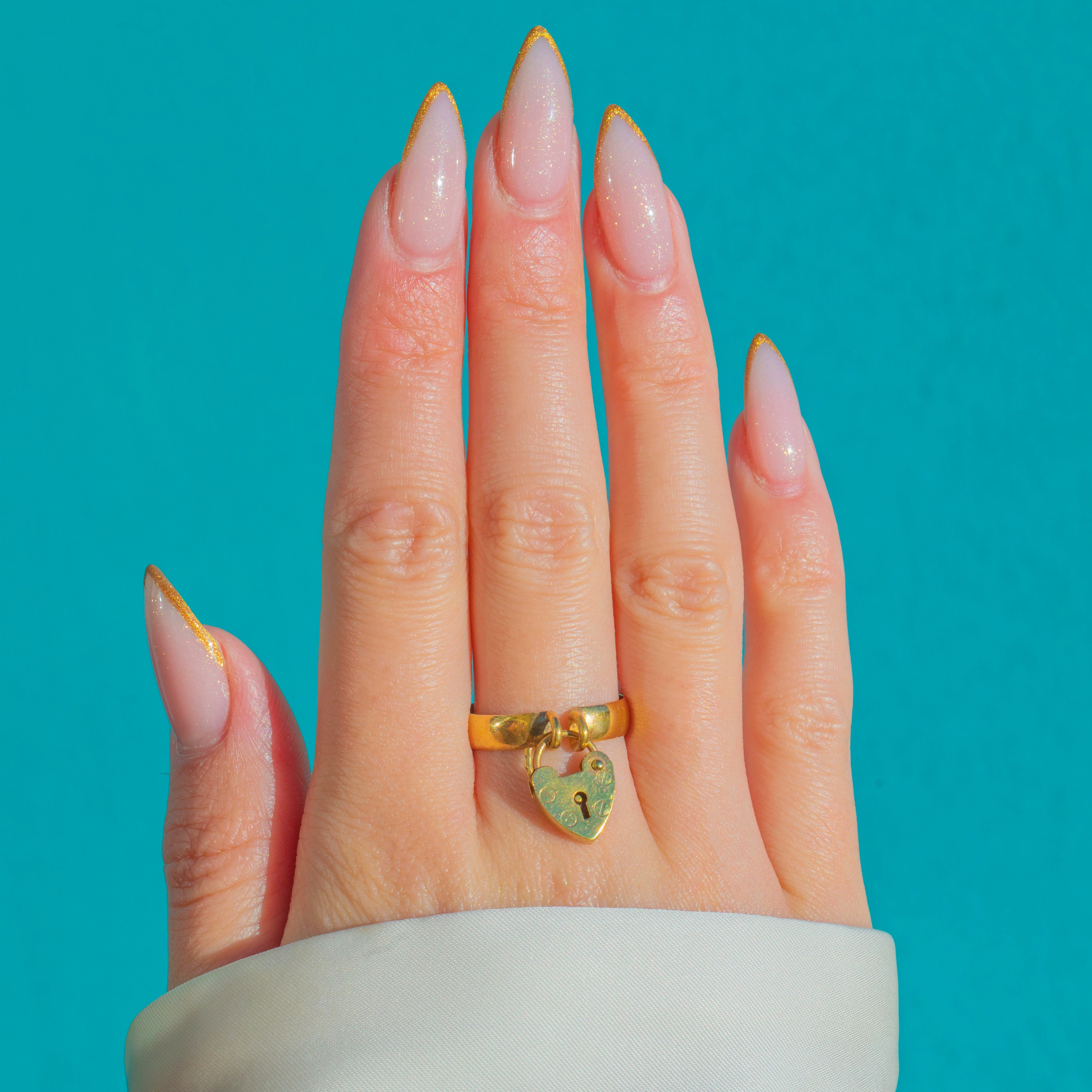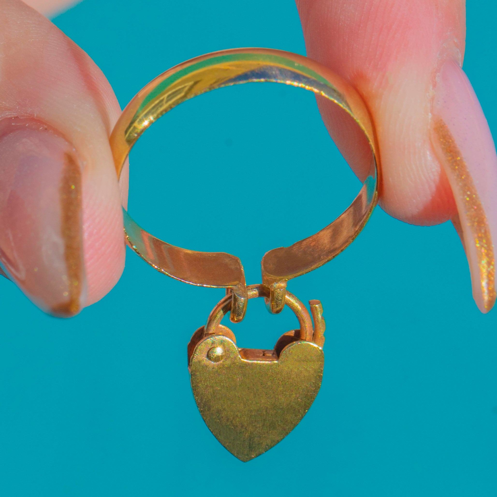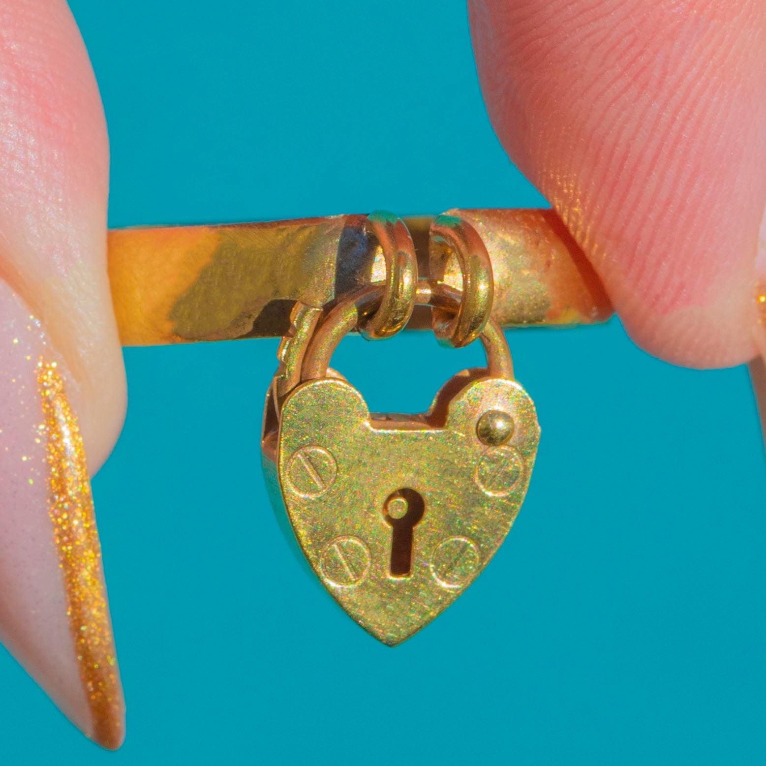 Beautifully made with a smooth 4mm band and a sweet miniature padlock front, this piece is wonderfully wearable as a ring or keepsake jewel. An ideal treasure for collectors of antique symbolism.