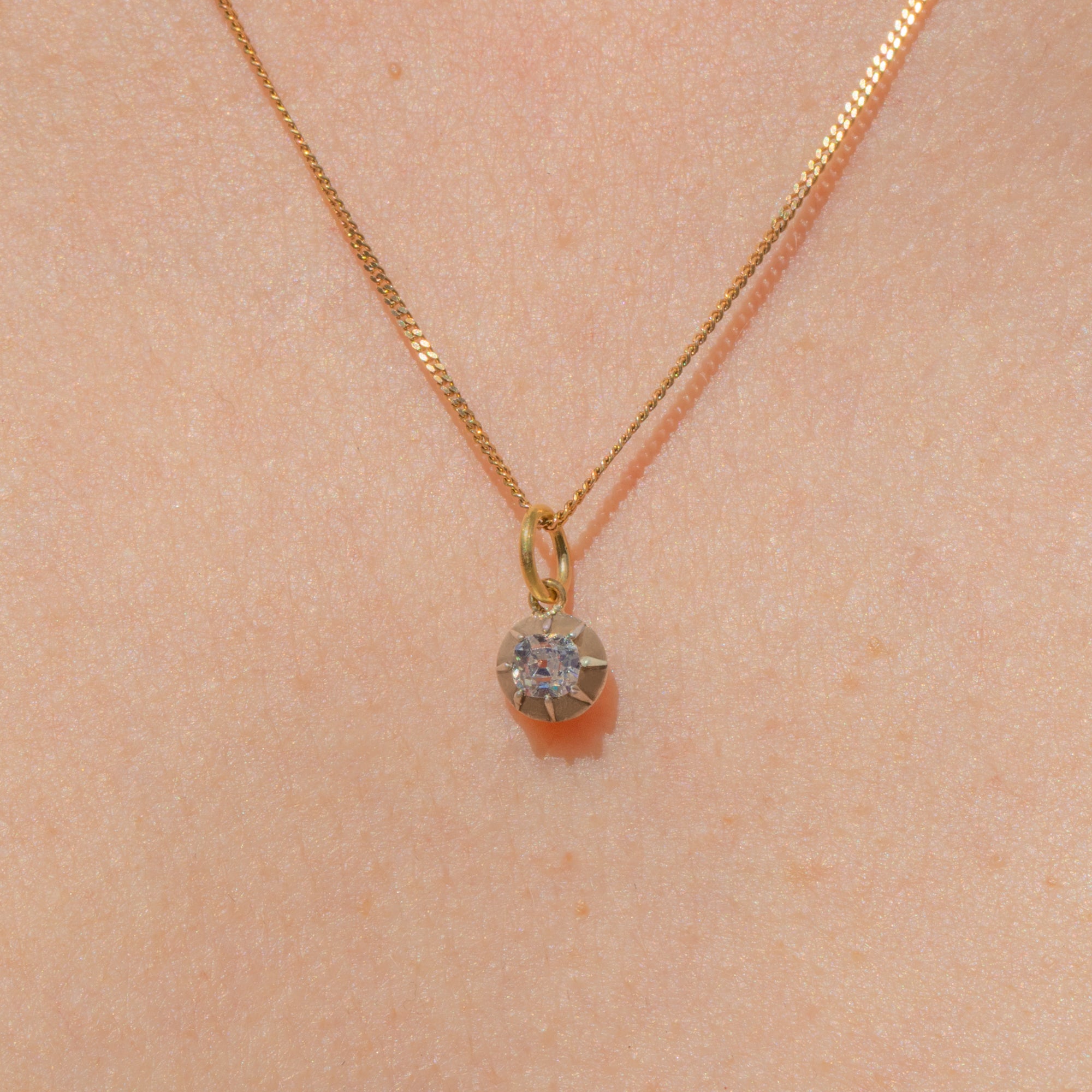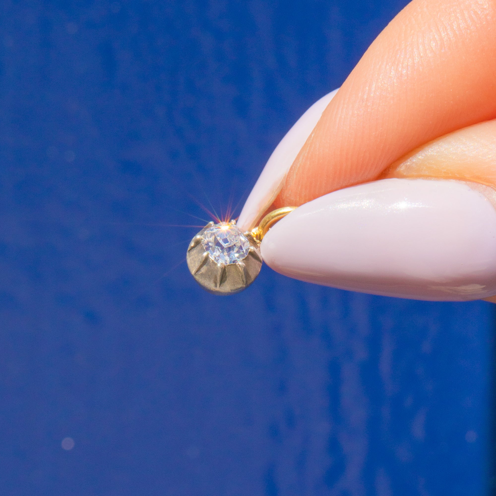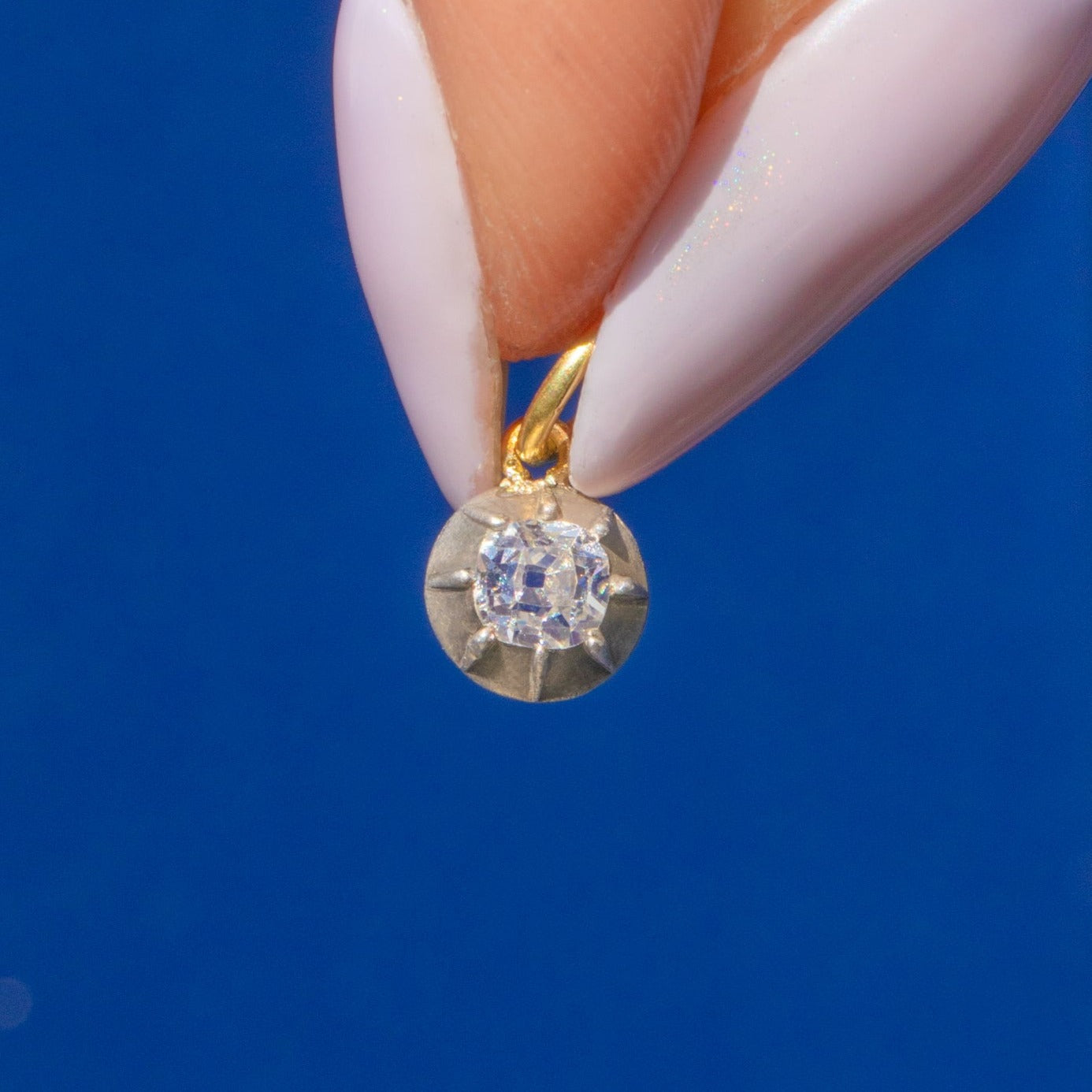 EXCELLENT. This Victorian Old-mine Cut Diamond charm is in excellent condition, with no chips or fleabites to note. She is securely held within her collet setting and is guaranteed to last a lifetime. The Diamond is radiant as ever, which is incredible considering her age. Need we say more?!