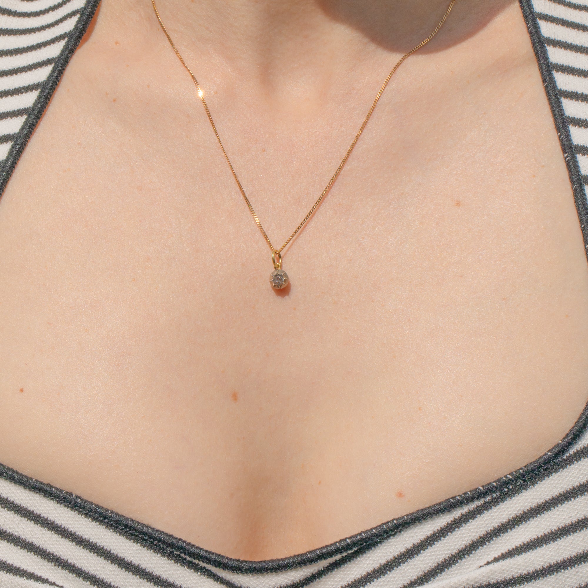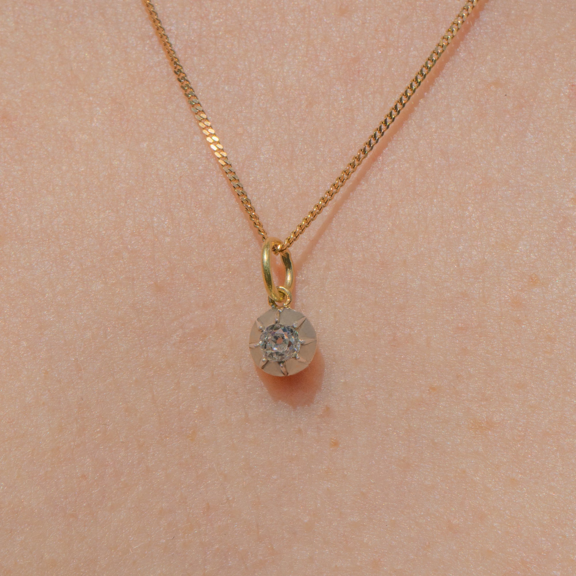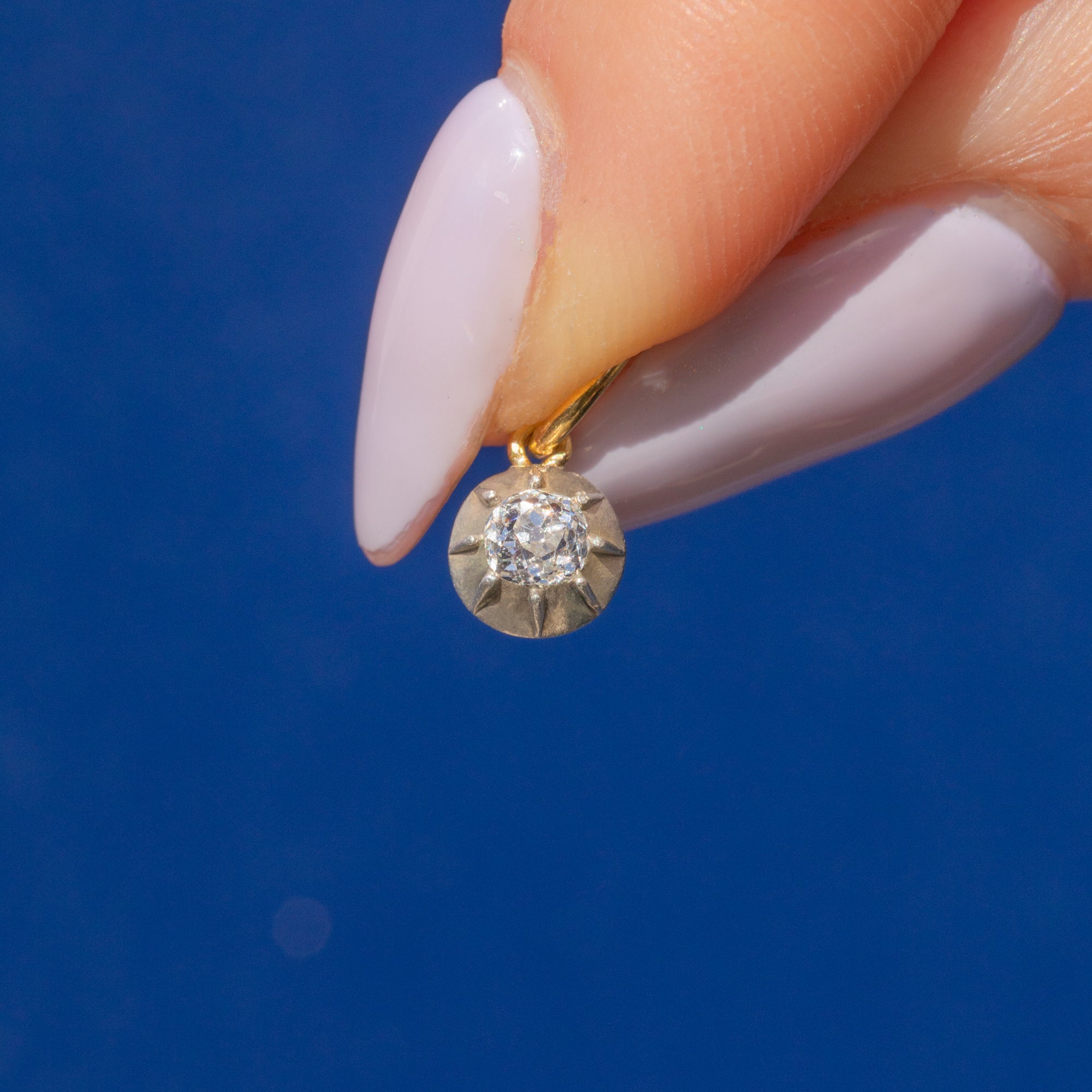 EXCELLENT. This Victorian old-mine cut Diamond charm is in excellent condition, with no chips or fleabites to note! She is securely set and guaranteed to last a lifetime. The Diamond is radiant as ever, which is incredible considering her age. Need we say more?!