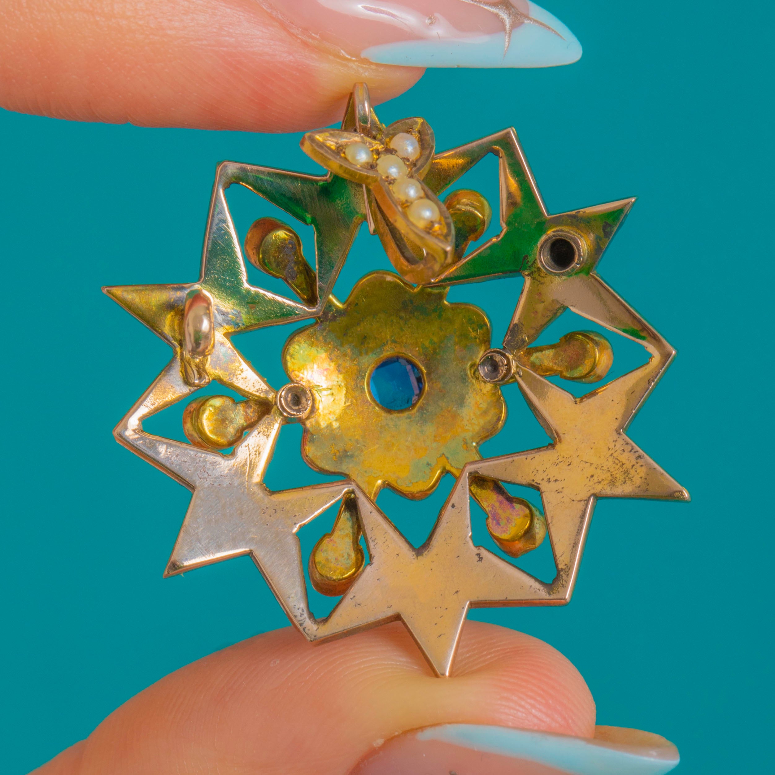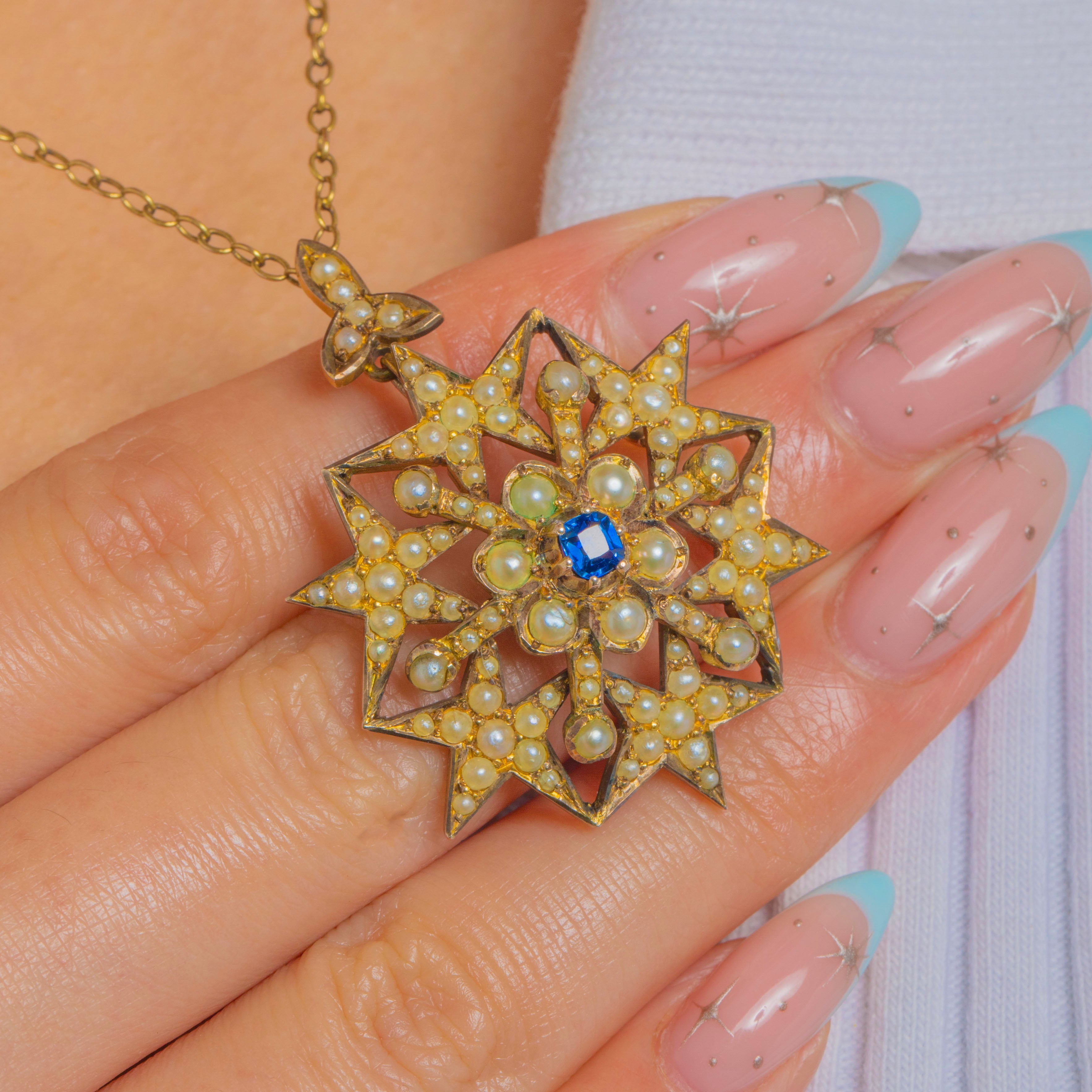 Victorian Sapphire Pearl Starburst Pendant