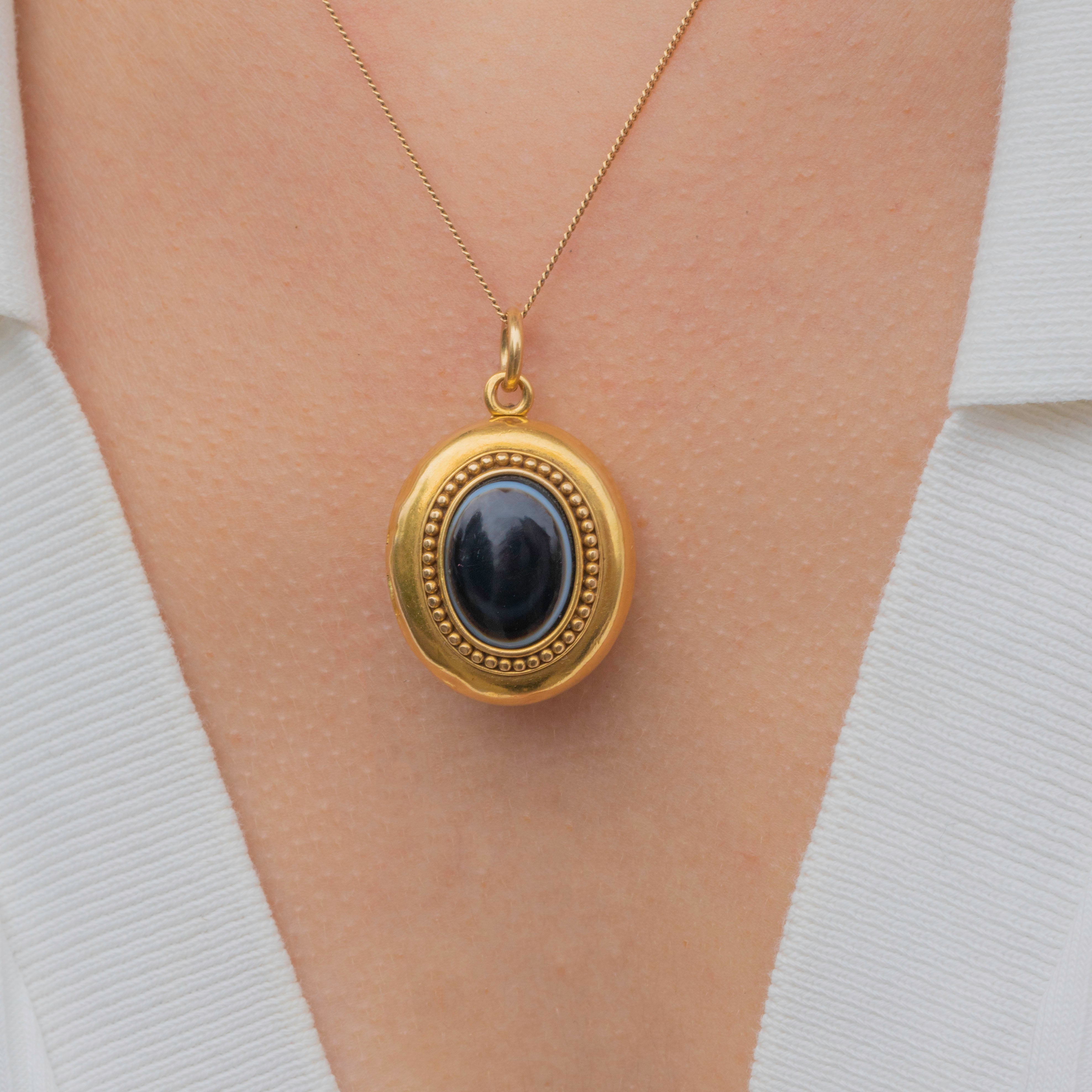 This sumptuous Victorian solid 18ct Gold Banded Agate anchor locket will make the perfect abode for your most cherished photograph! Crafted from richly saturated, solid 18ct Gold with a decadent satin finish, this antique locket is a chubby delight and feels satisfying resting against the chest.