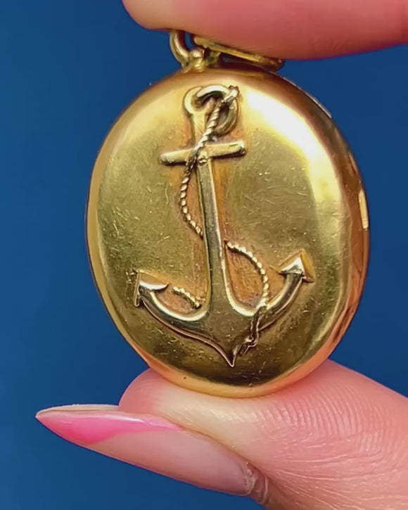 VERY GOOD: This Victorian solid 18ct Gold Banded Agate anchor locket is in very good condition. The Gold is brightly saturated throughout and all the details have remained defined. There are some mild dings around the outside of the locket, commensurate with age, but these aren't particularly noticeable when looking front on. The Banded Agate is smooth and securely set, free from chips or scuffs. Closing securely and with the original picture frame intact, you can use and wear this antique anchor locket with utmost confidence!