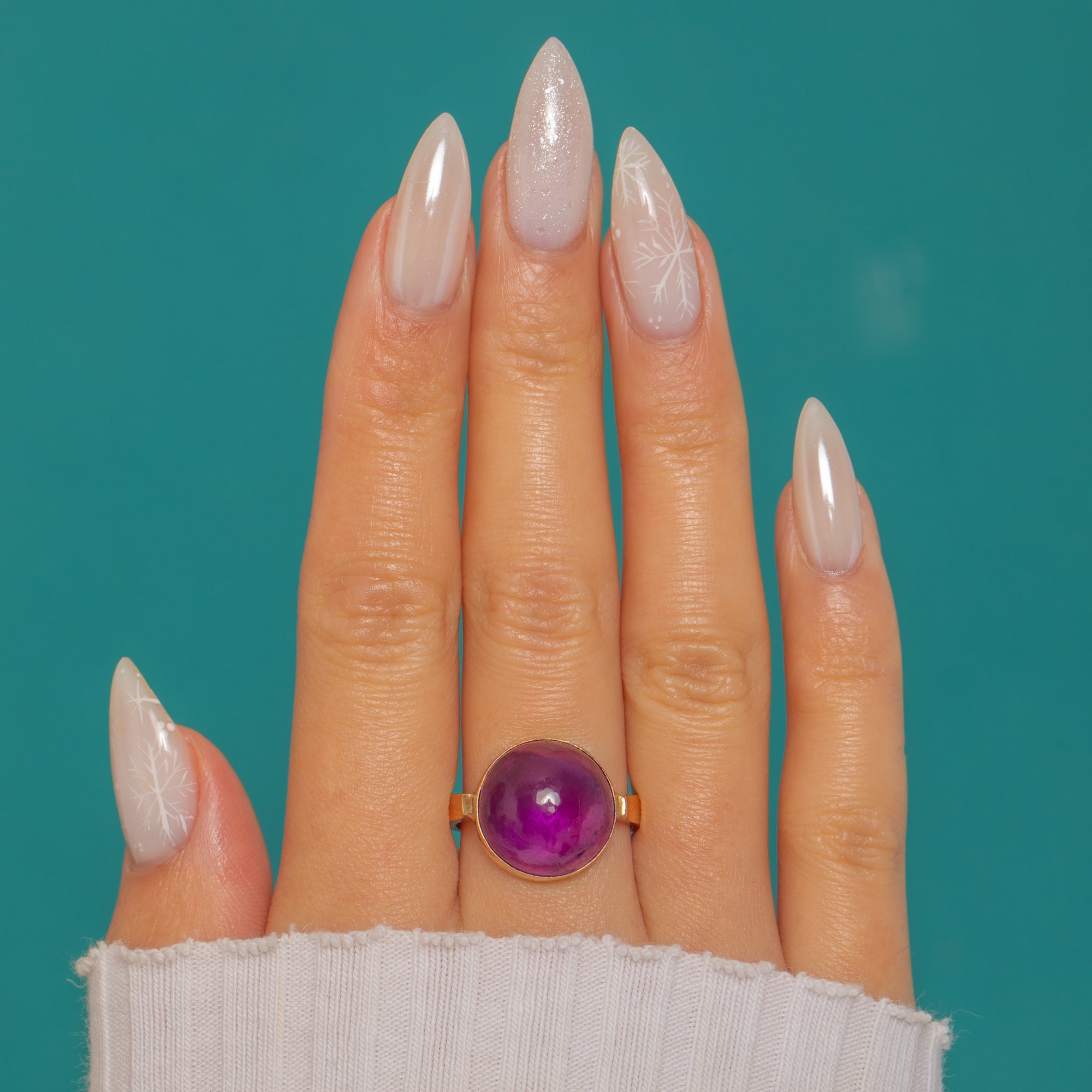 Vintage 9ct Gold Amethyst 'Crystal Ball' Cabochon Solitaire Ring