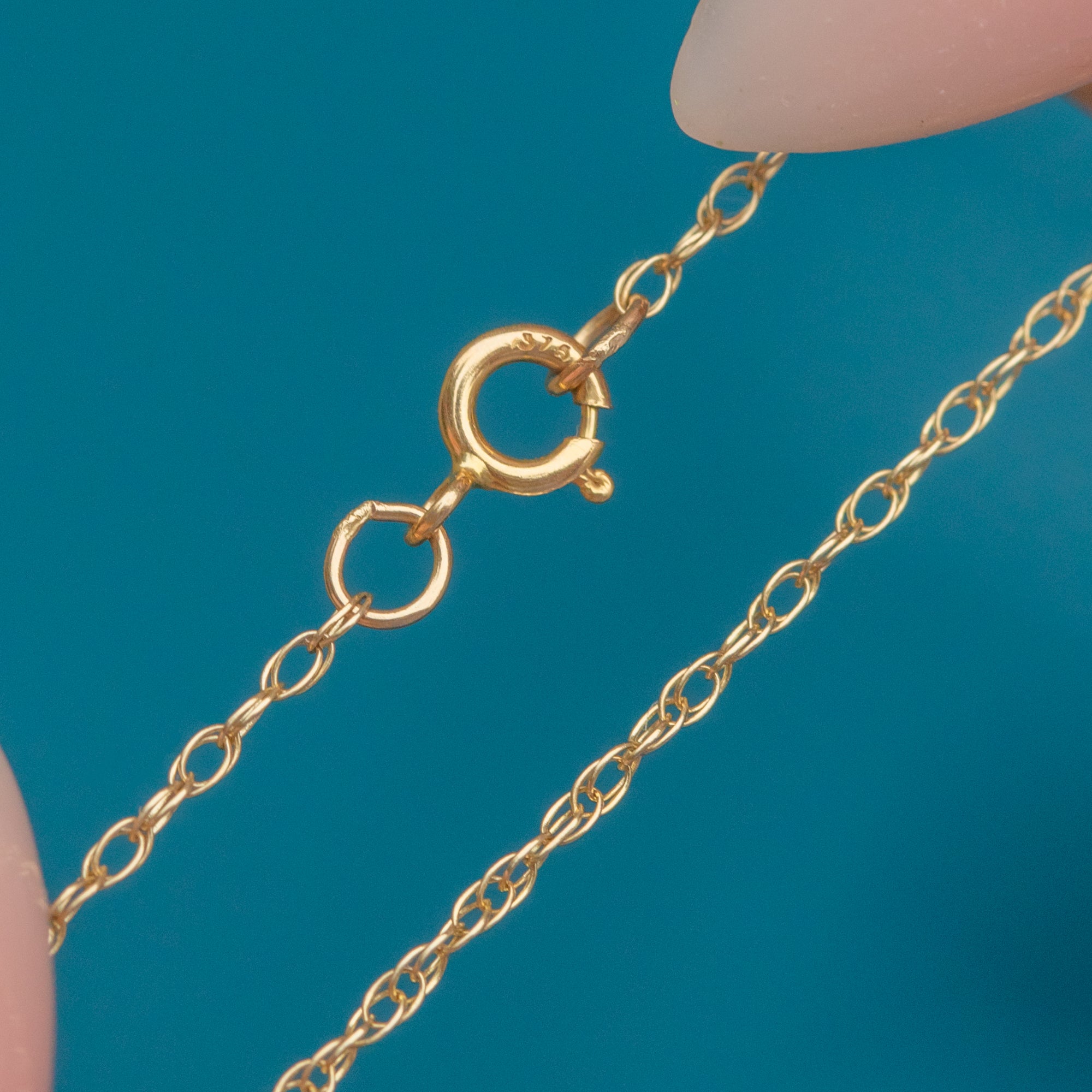 This sweet Vintage necklace features a double-sided 9ct Gold charm of an owl perched on a crescent moon, suspended from a fine 18" trace chain. The owl is beautifully textured and detailed, with both sides of the charm fully worked for a complete and wearable finish.