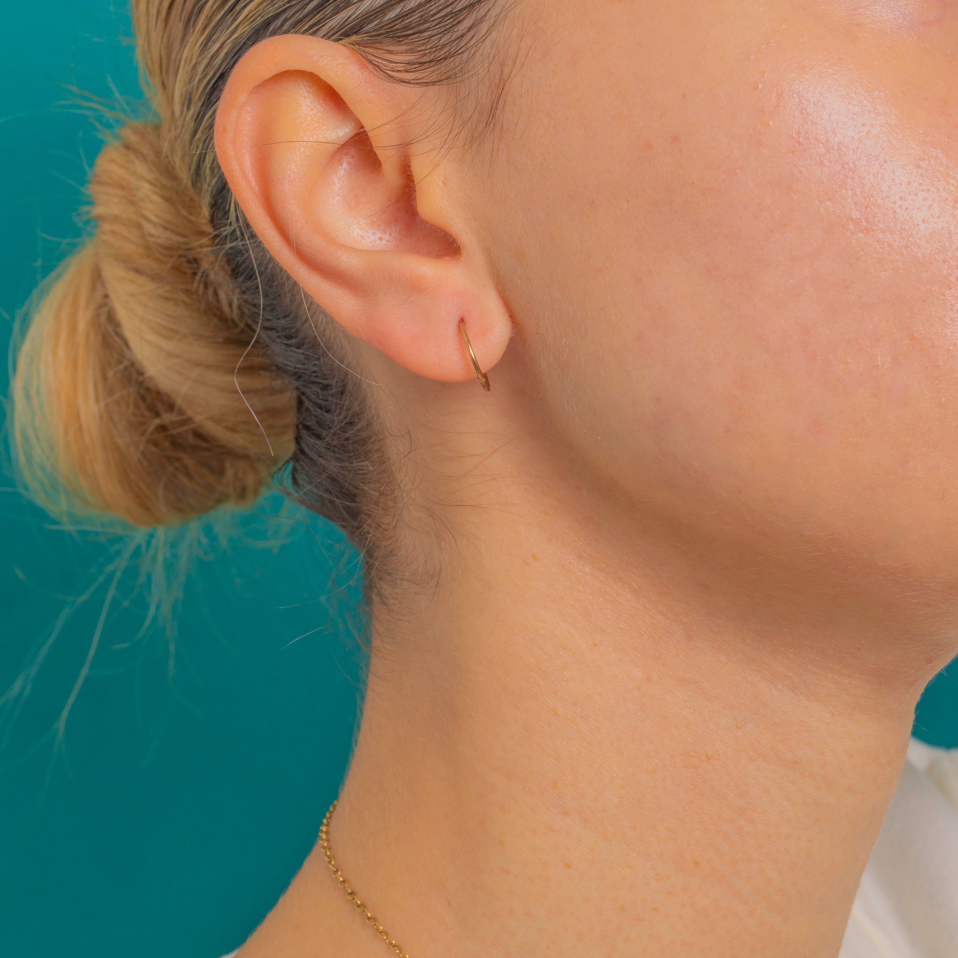 Finished with the classic endless post‑in‑tube closure, they feel timeless and understated—perfect worn solo or stacked for subtle sparkle.