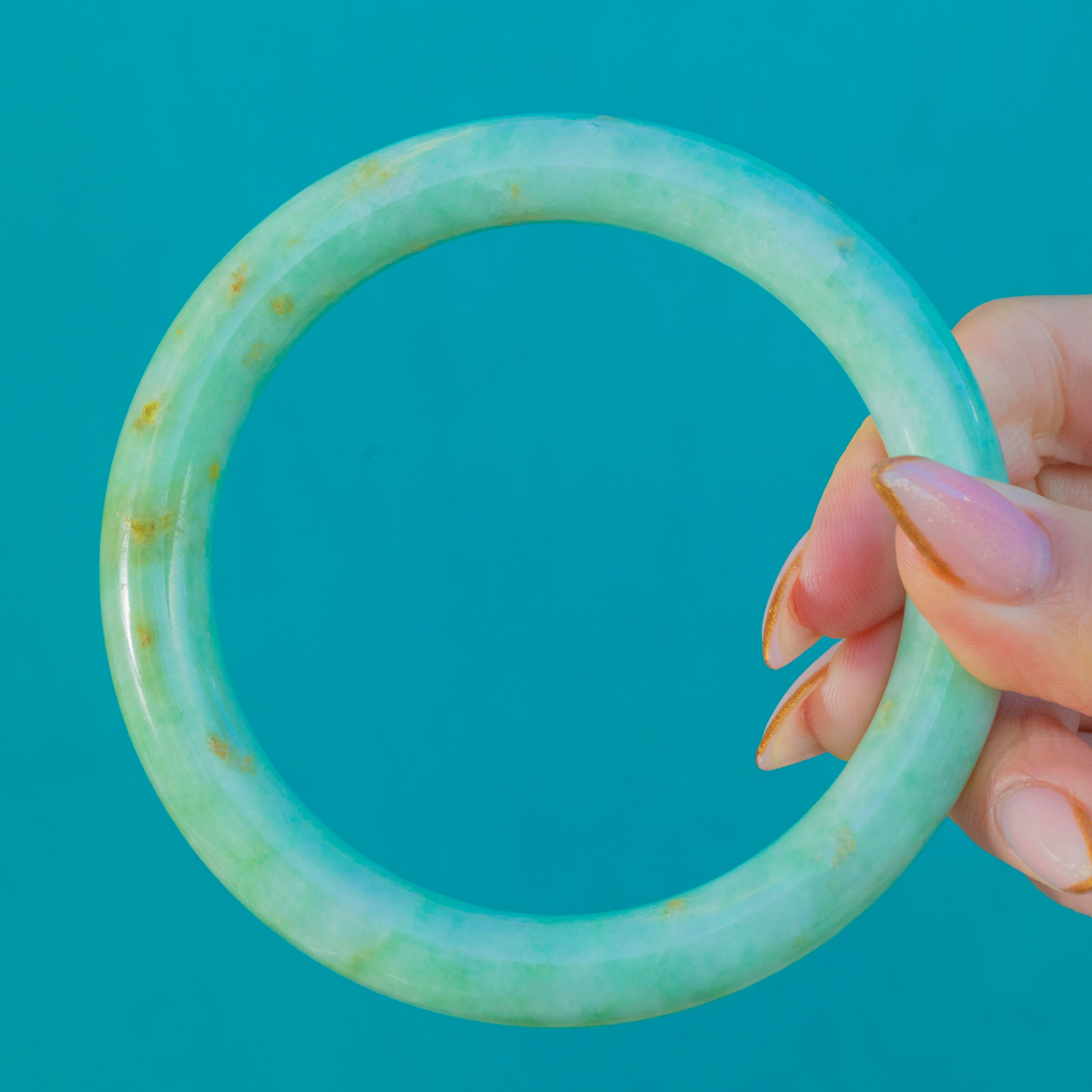 Timeless, calming and symbolic of protection and harmony, this is a gorgeous example of a traditional Jade bangle with excellent presence and wearability.