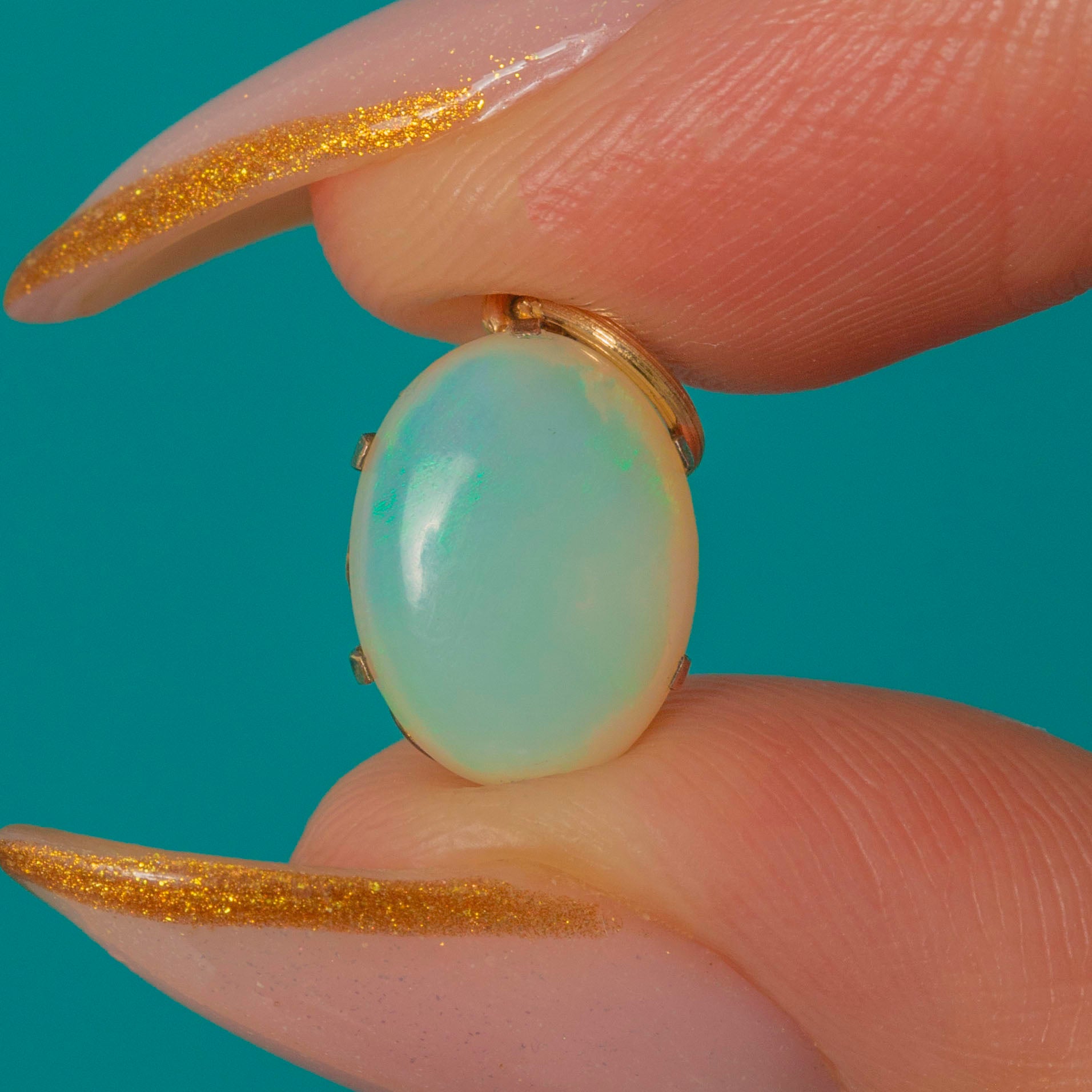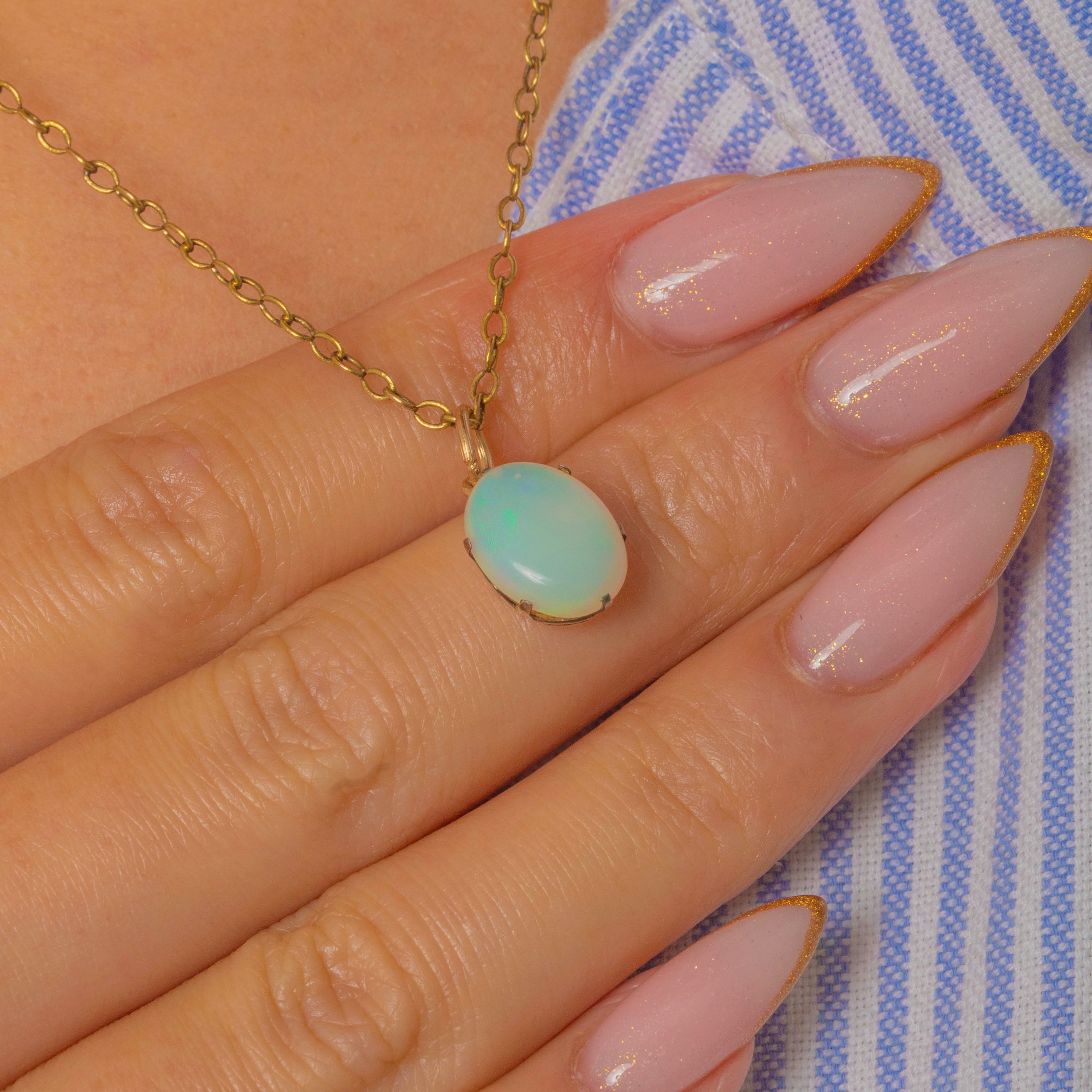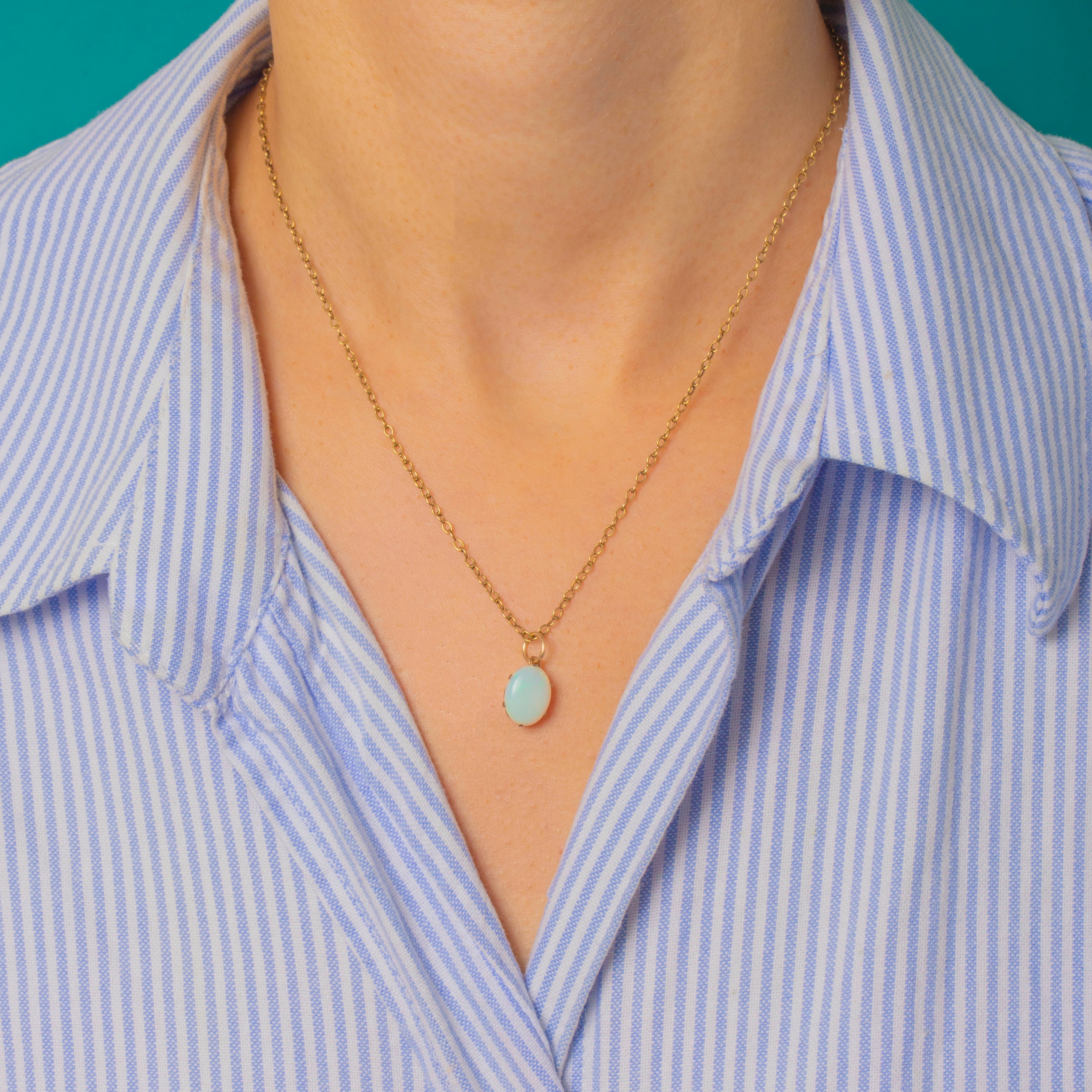EXCELLENT: The Opal is bright and lively with strong play-of-colour and no chips or cracks. The Gold bezel and jump ring are smooth, secure, and in superb condition for age.